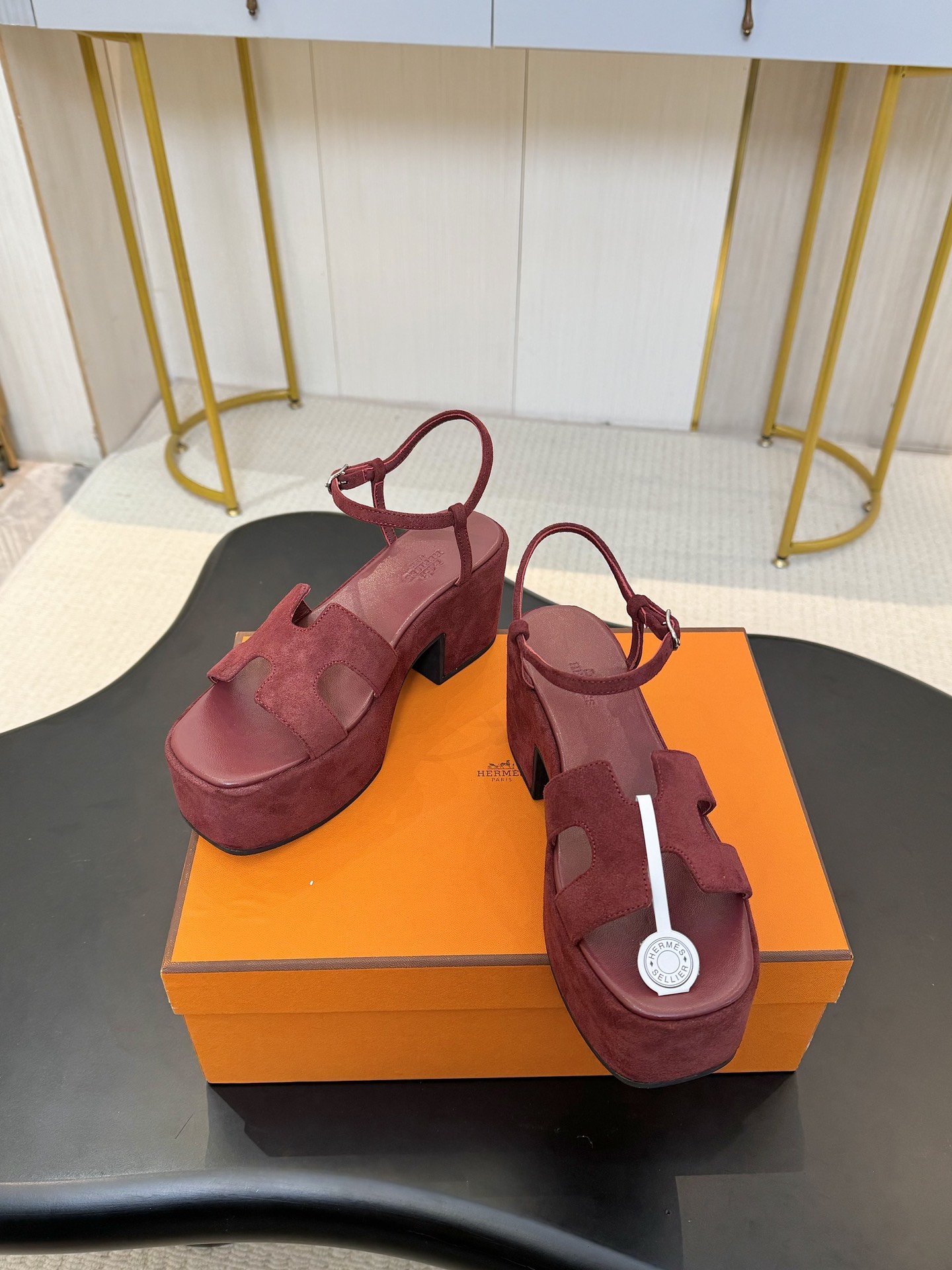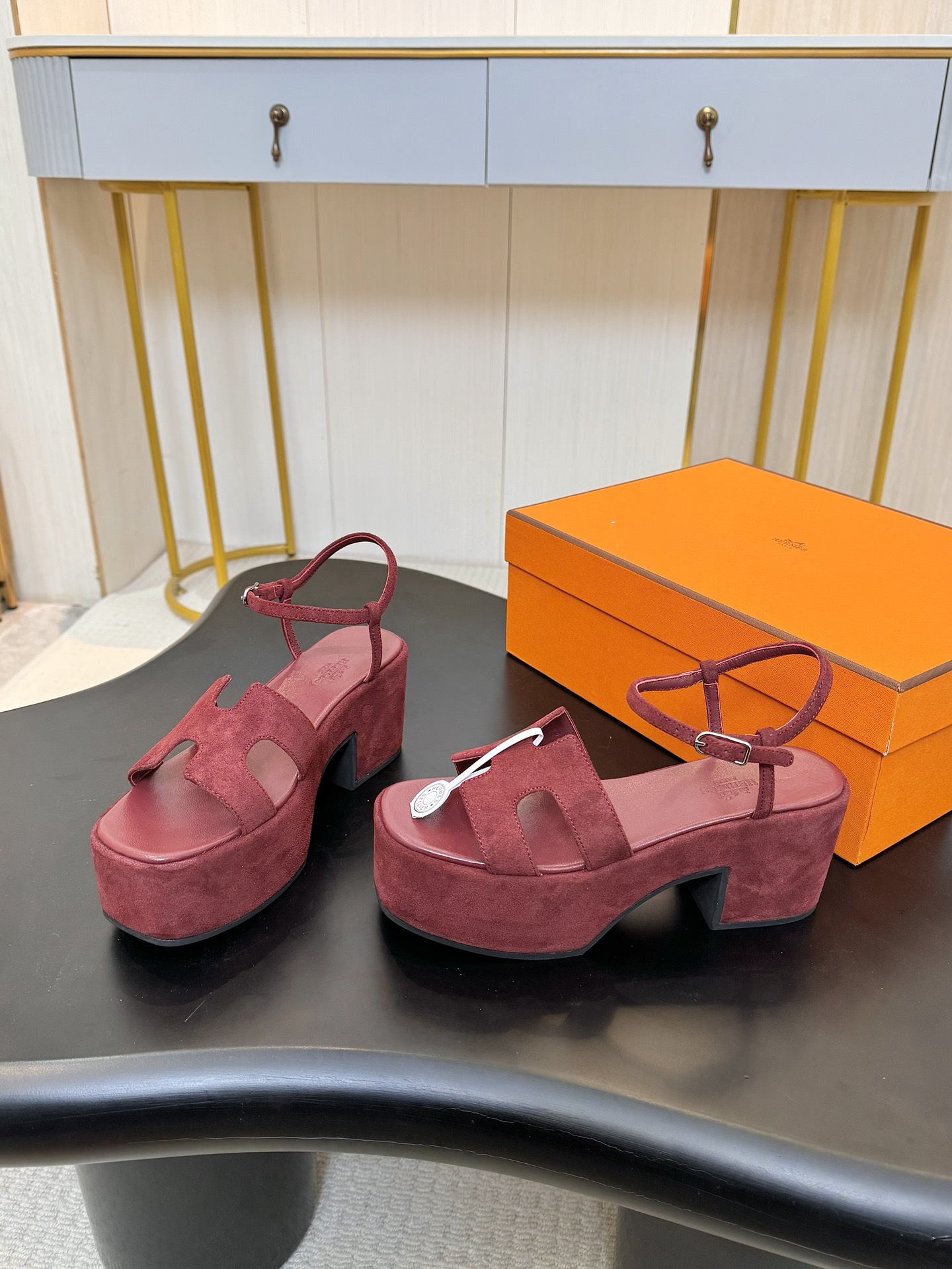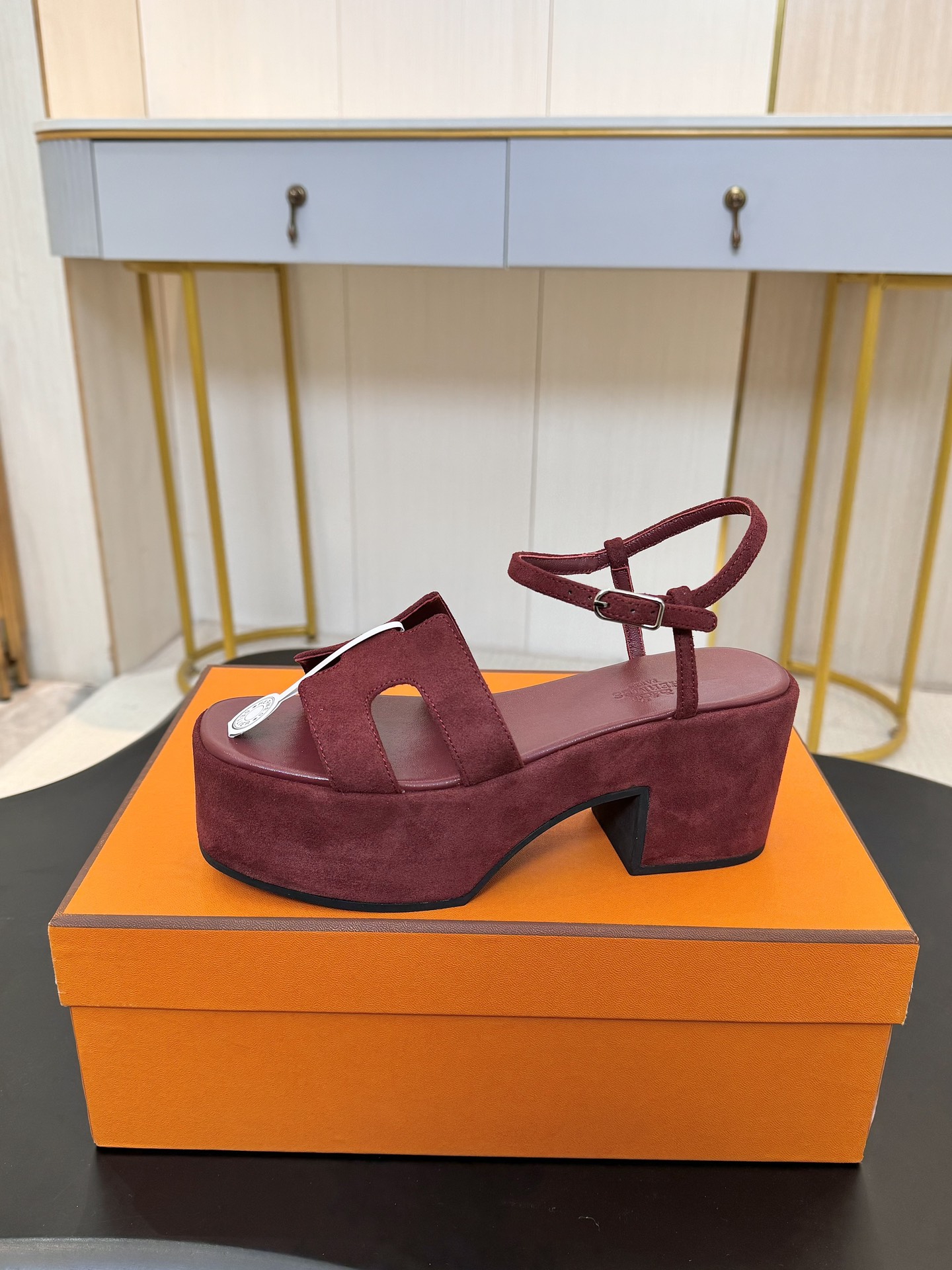 Hermes classic wedge sandals, black H design, comfortable and versatile. Sizes 35-40.