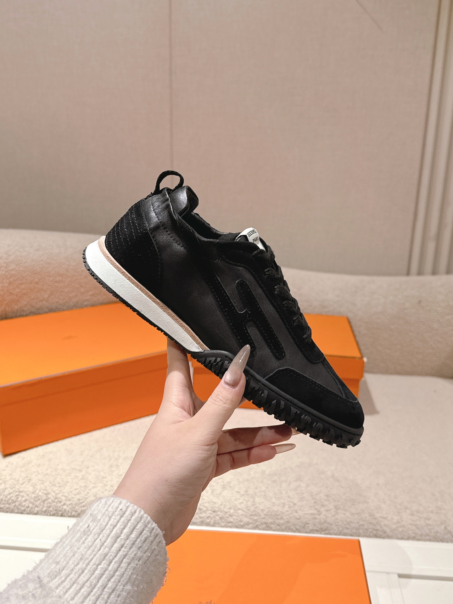 Hermes top edition 24ss sneakers, suede and goat leather with contrasting patterns and iconic "H" details. Includes boutique packaging.