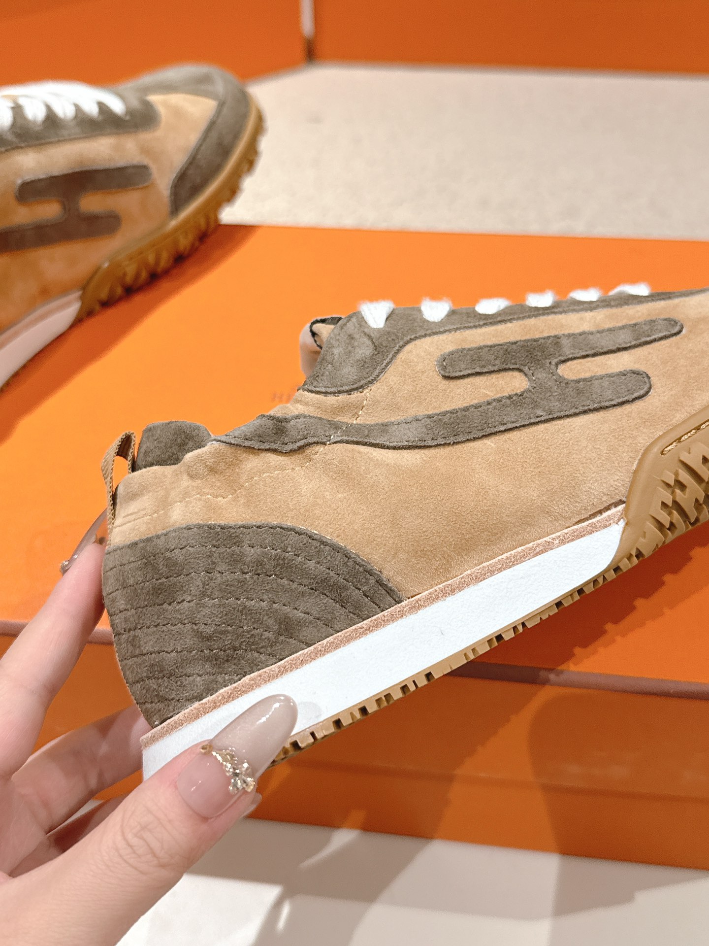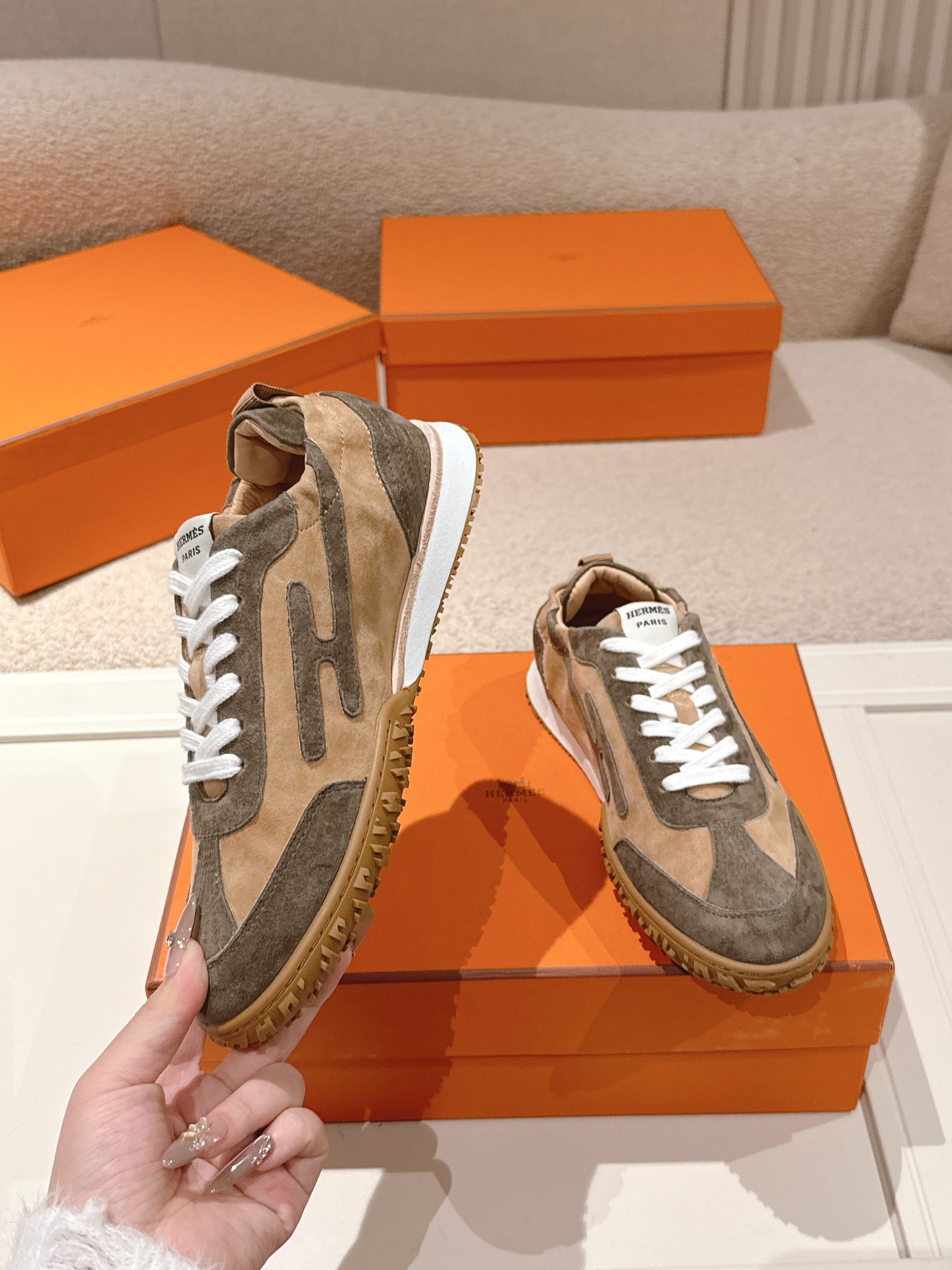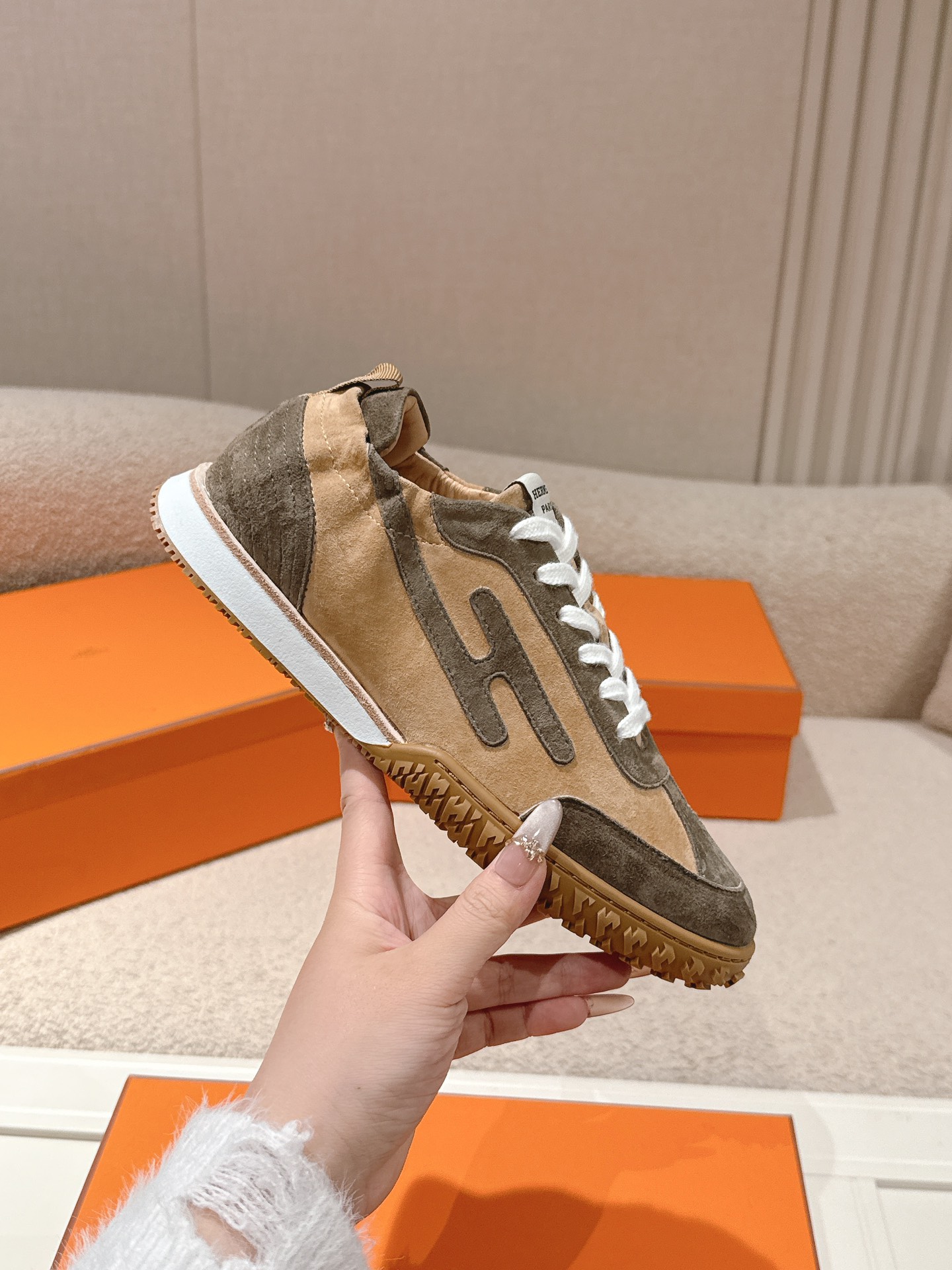 Hermes top version sneakers, suede and calfskin, mixed sheepskin lining, original TPU sole, 2cm thickness, sizes 35-45.
