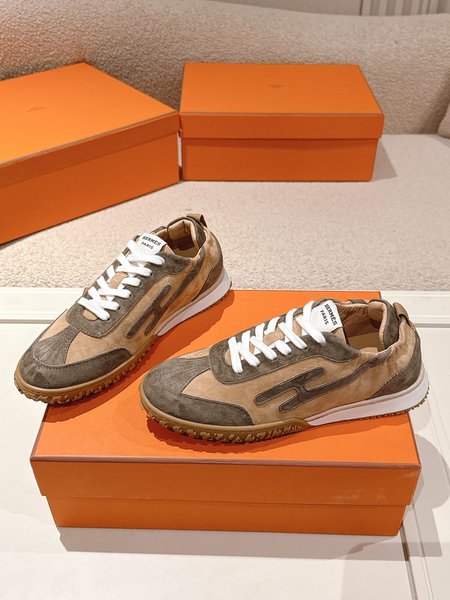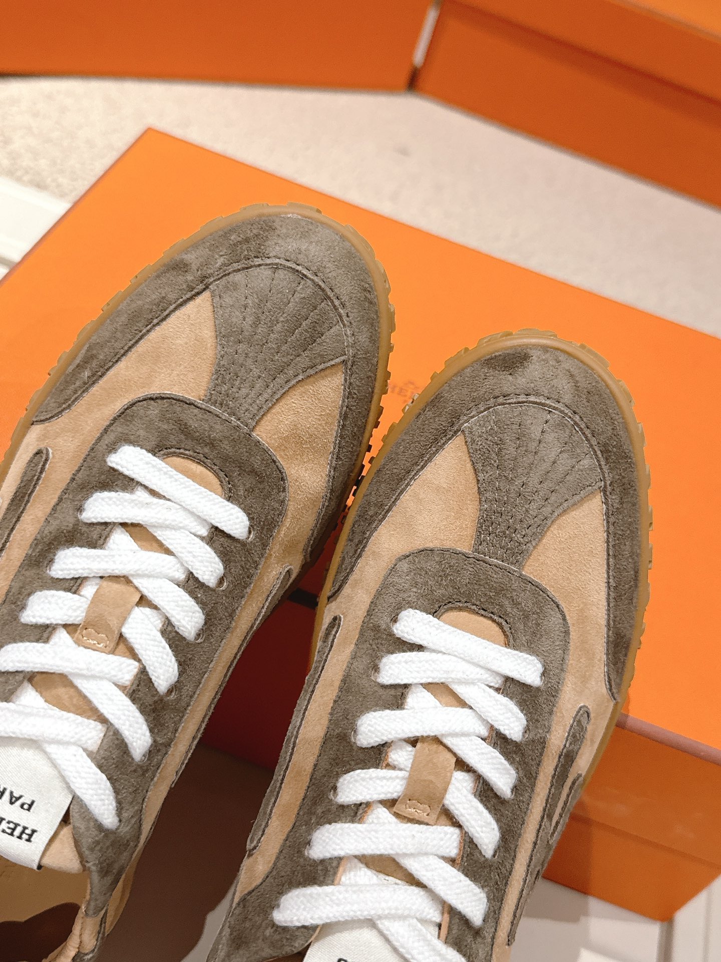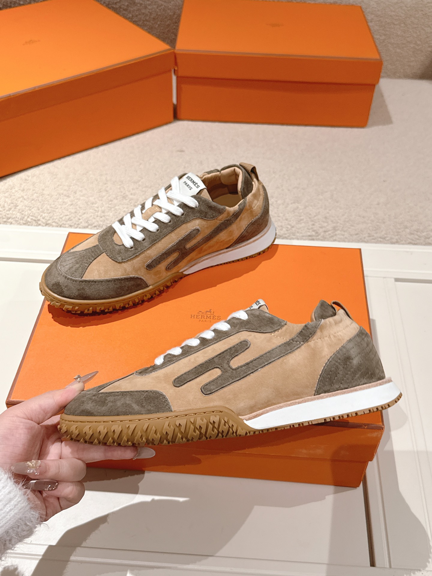 Hermes top version sneakers, suede and calfskin, mixed sheepskin lining, original TPU sole, 2cm thickness, sizes 35-45.