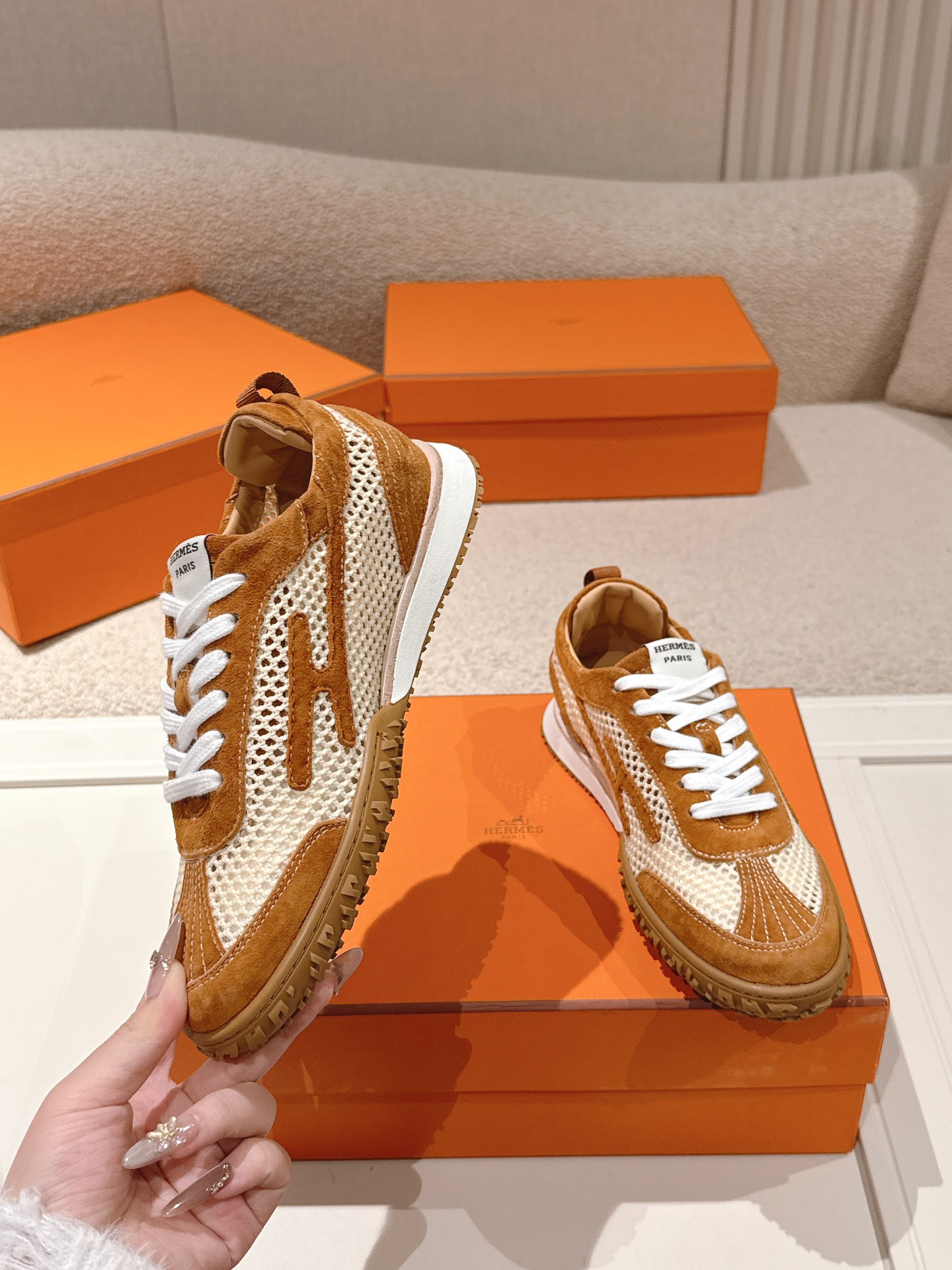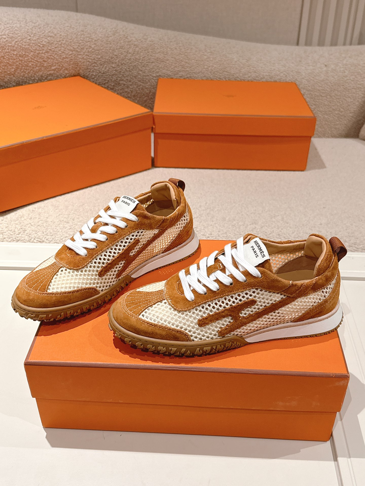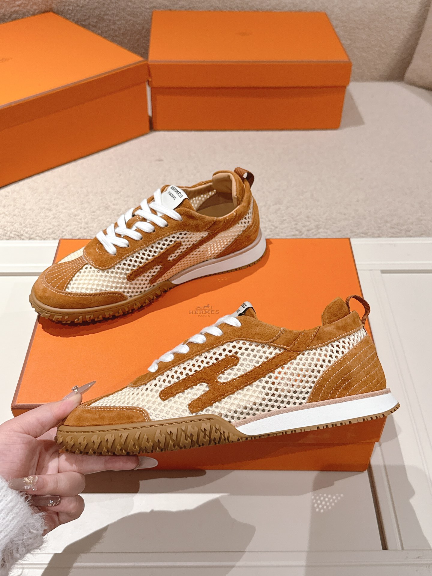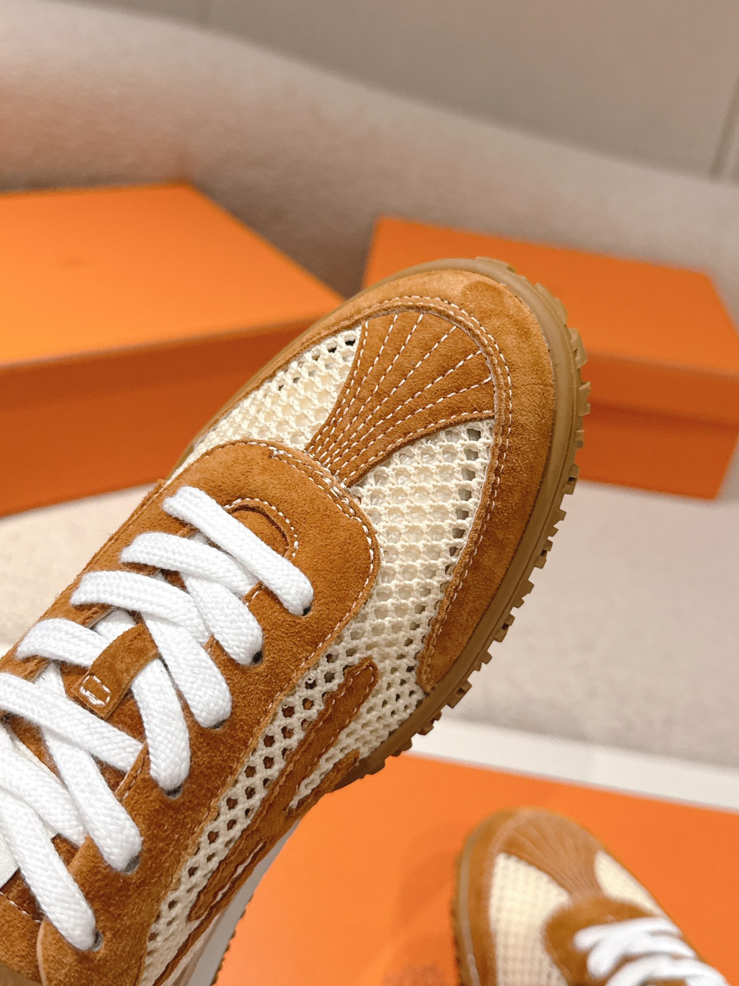 24ss Casual Sneakers Suede Goatskin Sneakers Decorated with Color-Blocking Patterns and Iconic "H" Details, Comes with Boutique Elegant Packaging