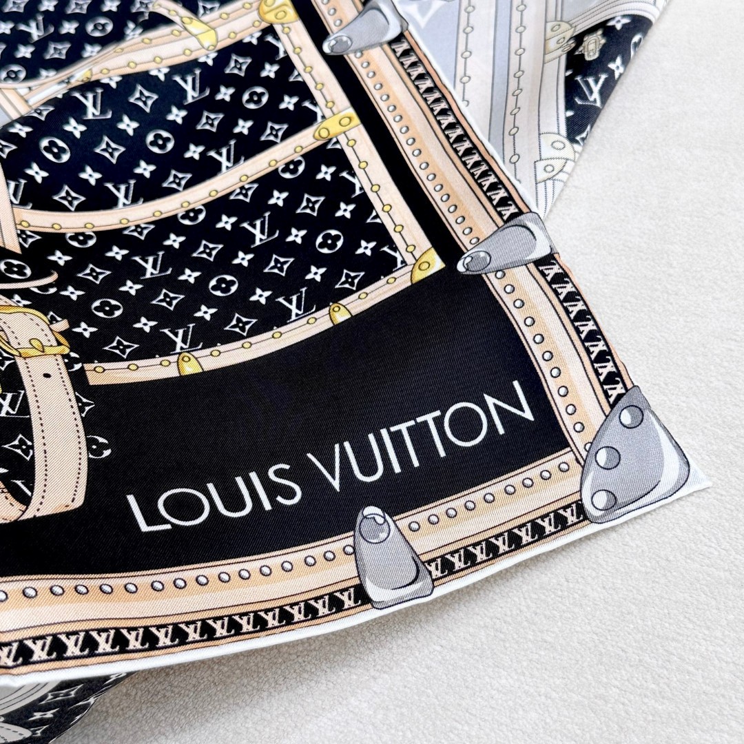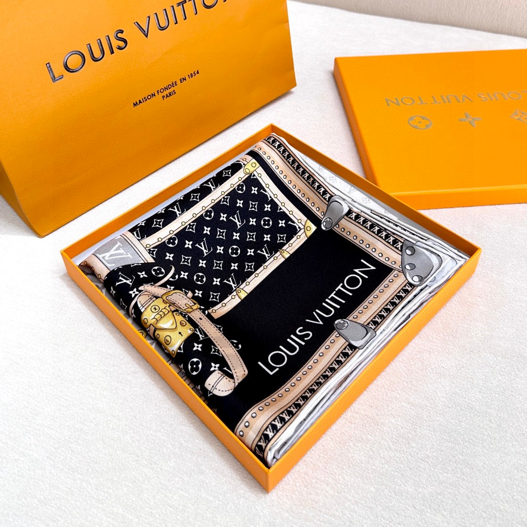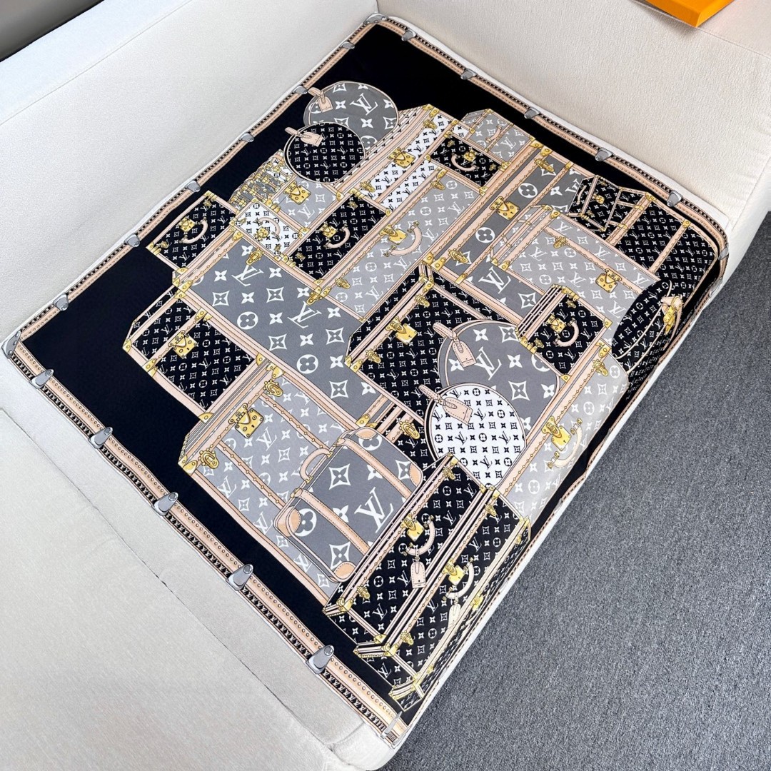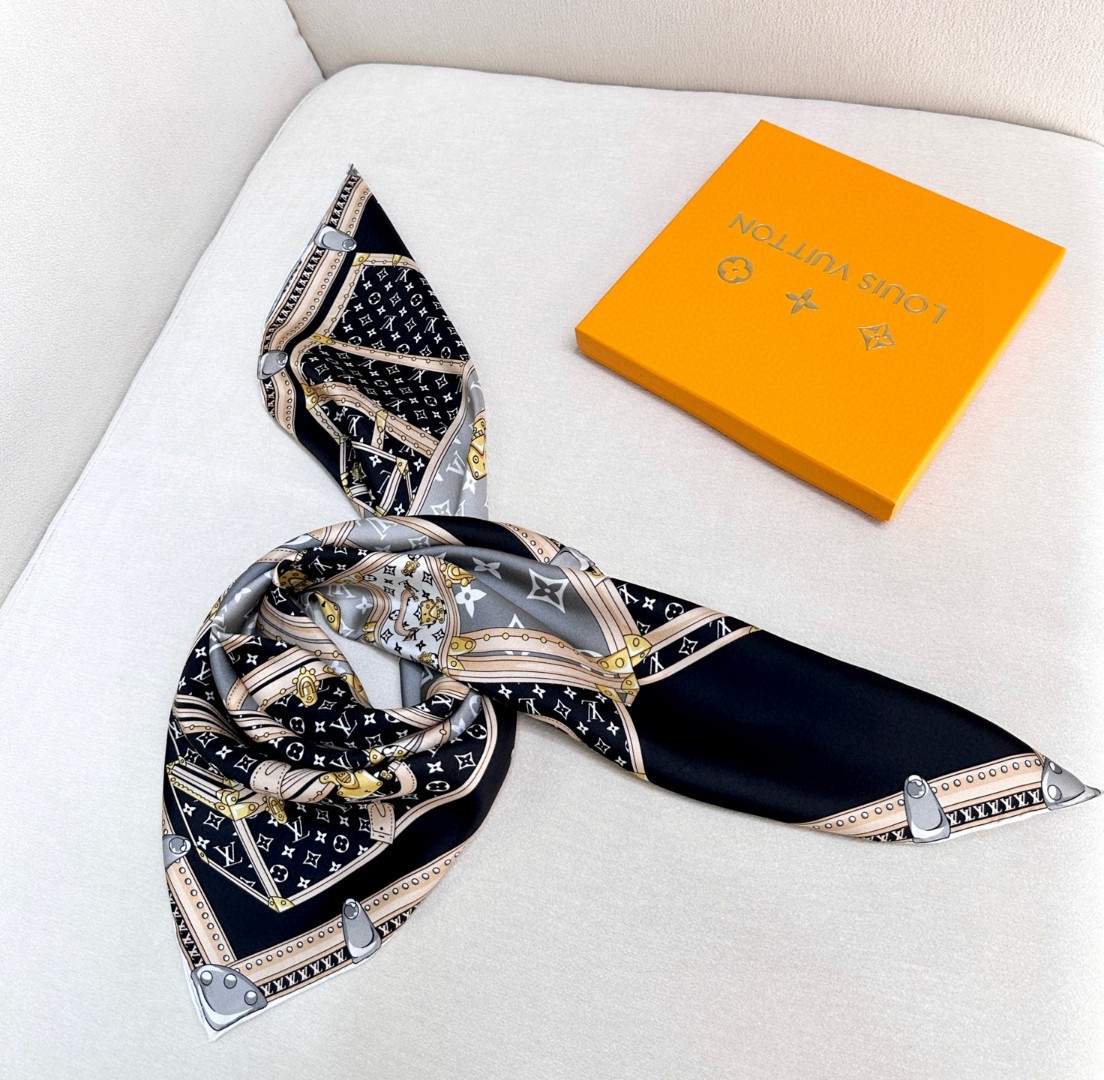 【L Bag Family Jacquard 90】Let's Go Monogram showcases the travel spirit and trunk-making heritage inherent in Louis Vuitton's DNA with striking elegance. A variety of brand trunk patterns, integrated with Monogram elements, converge at the center, making it an ideal choice for brand enthusiasts who love global travel. Jacquard plus printing craftsmanship, highly recommended—don’t miss out! The size is just right, neither too big nor too small, and it pairs exceptionally well. The quality is superb! You’ll understand the high-end quality and refined details as soon as you get your hands on it. A heavyweight masterpiece! A must-have recommendation for VIP clients! 100% top-grade shadow jacquard mulberry silk, dimensions: 90*90cm.