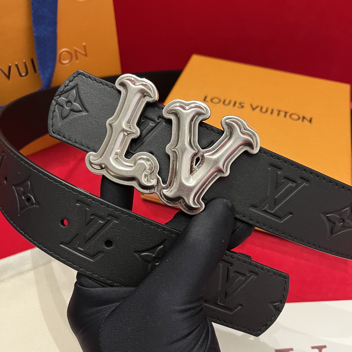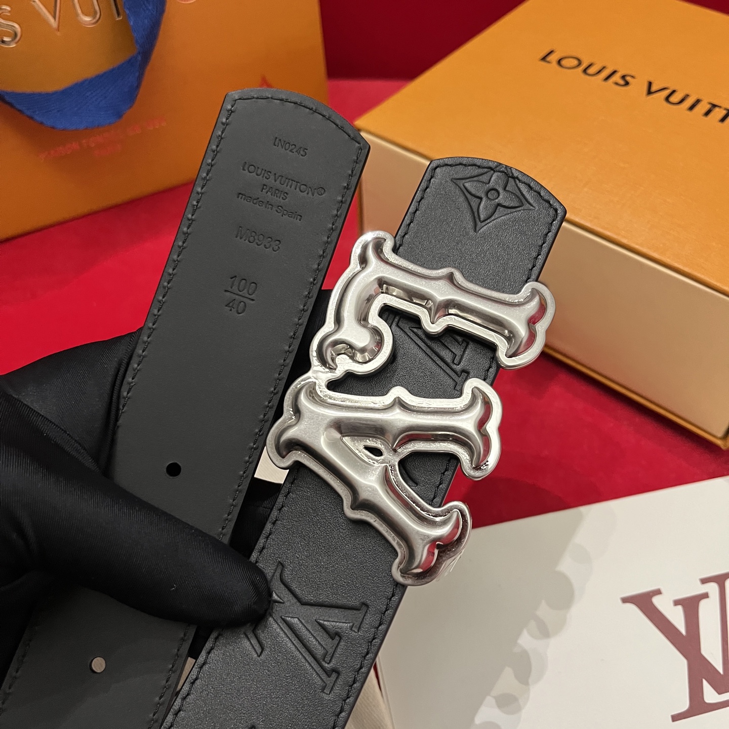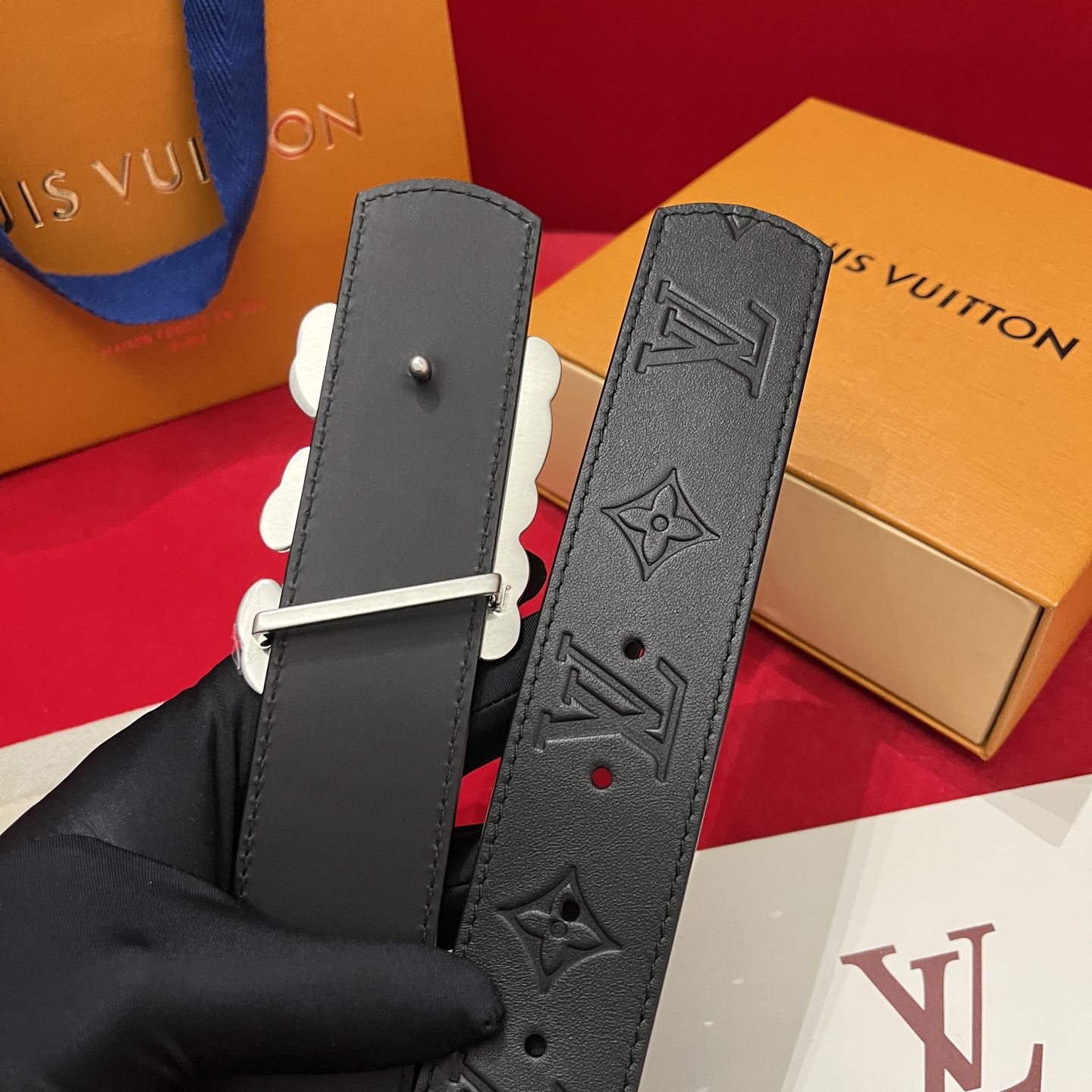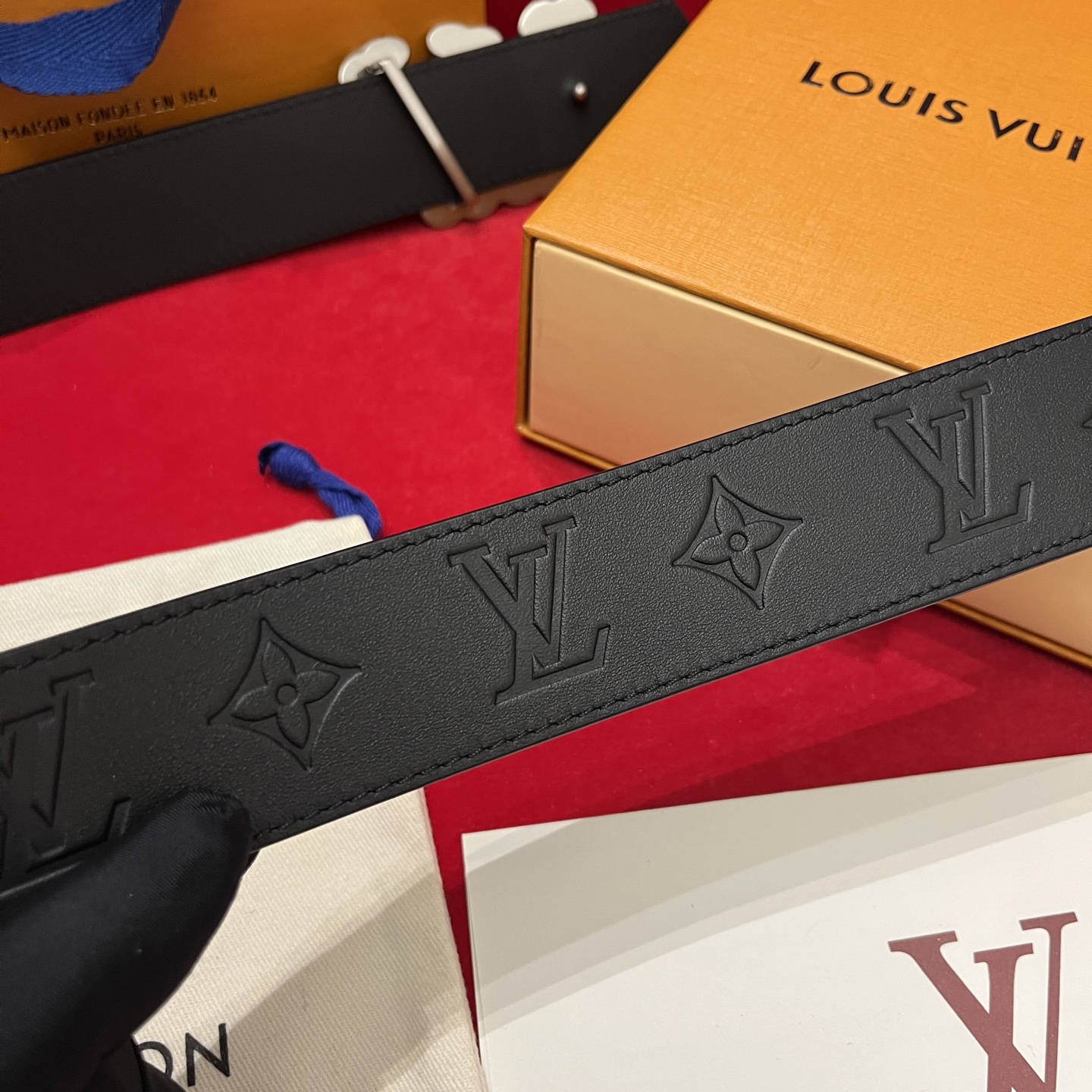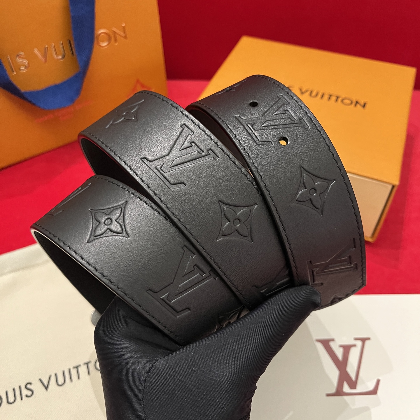 Louis Vuitton new belt selection. Top version, 4cm width, embossed floral pattern, soft calfskin, dual-sided buckle.