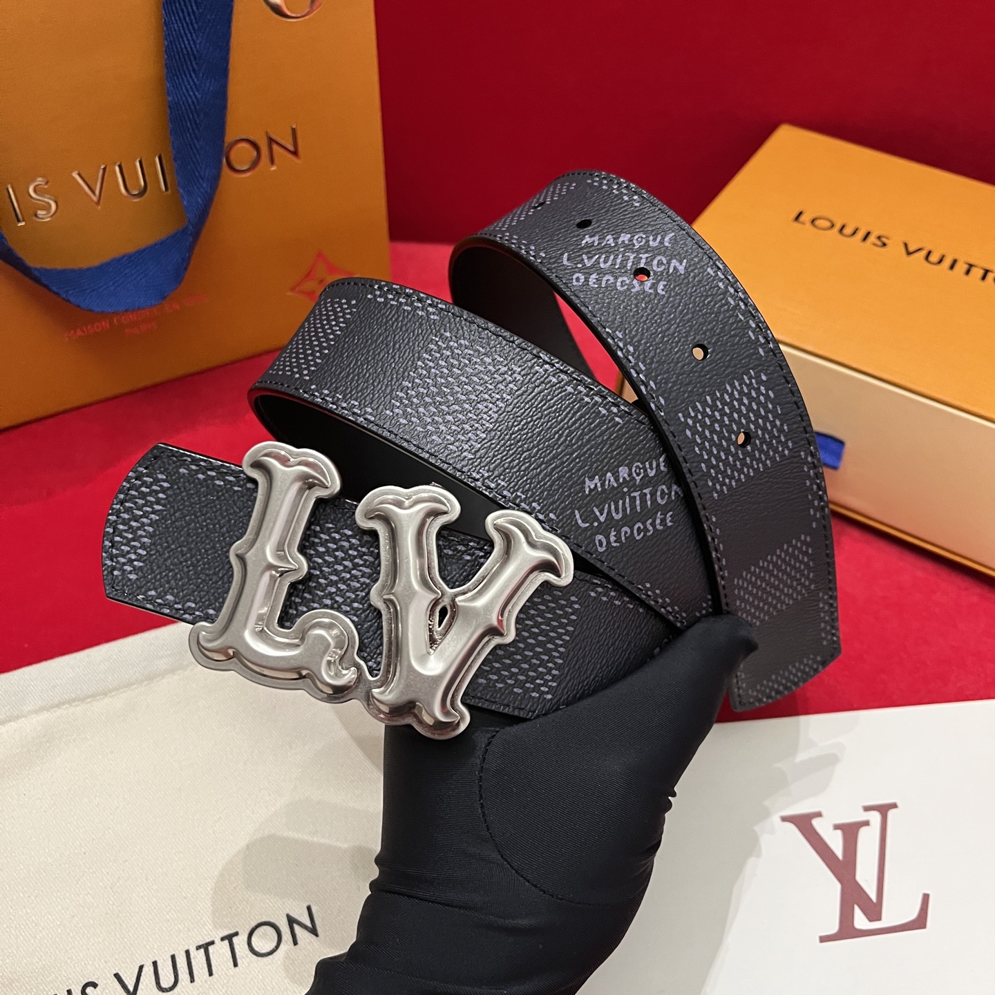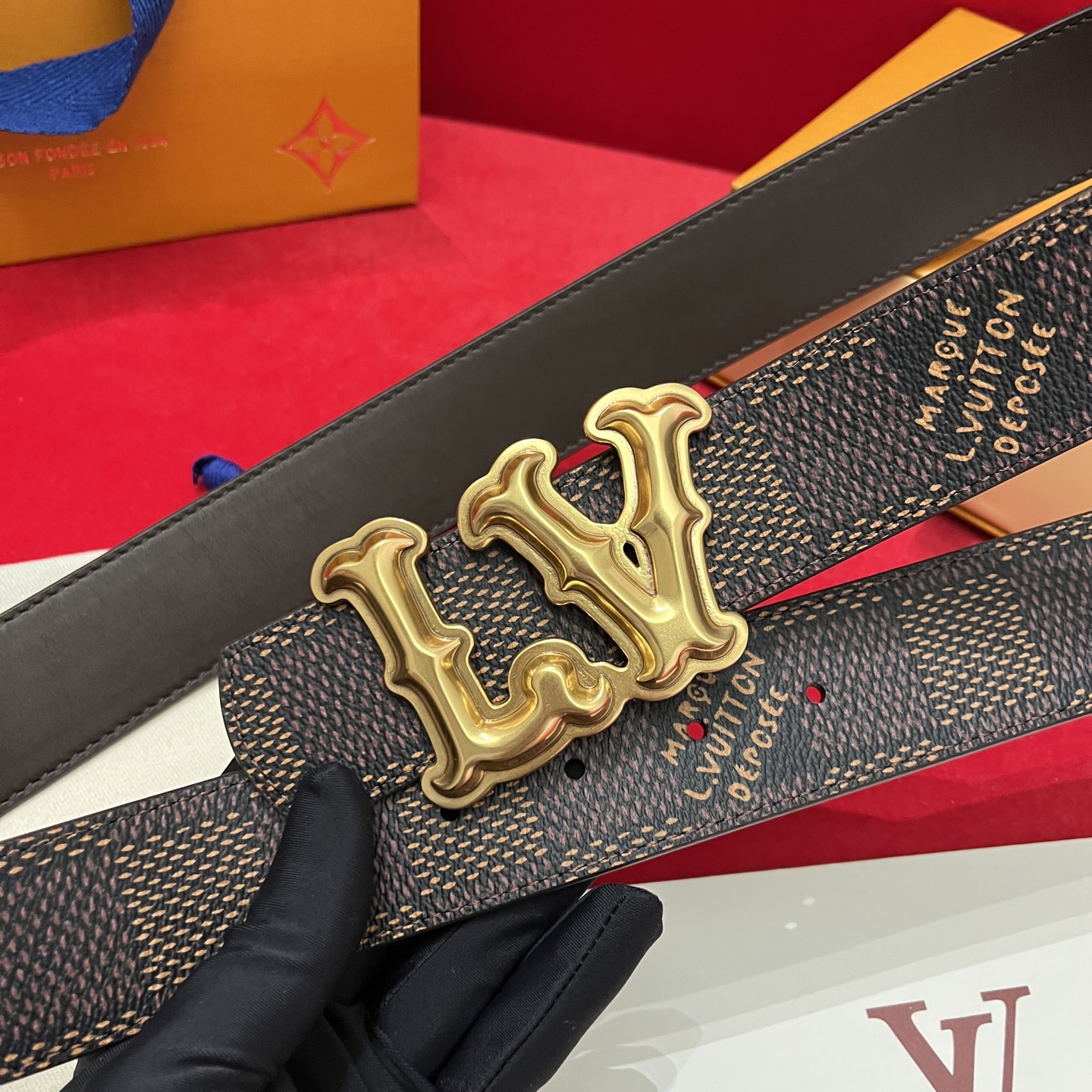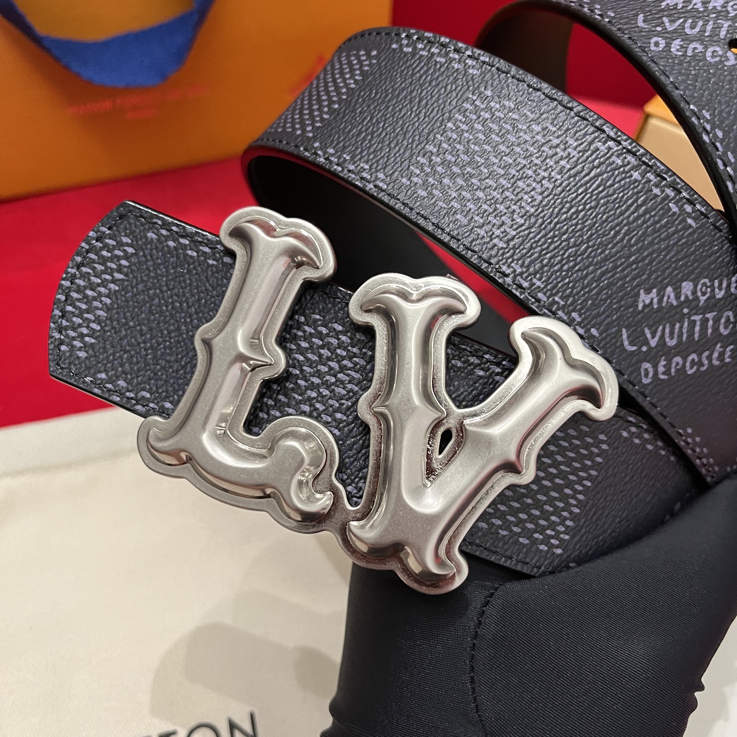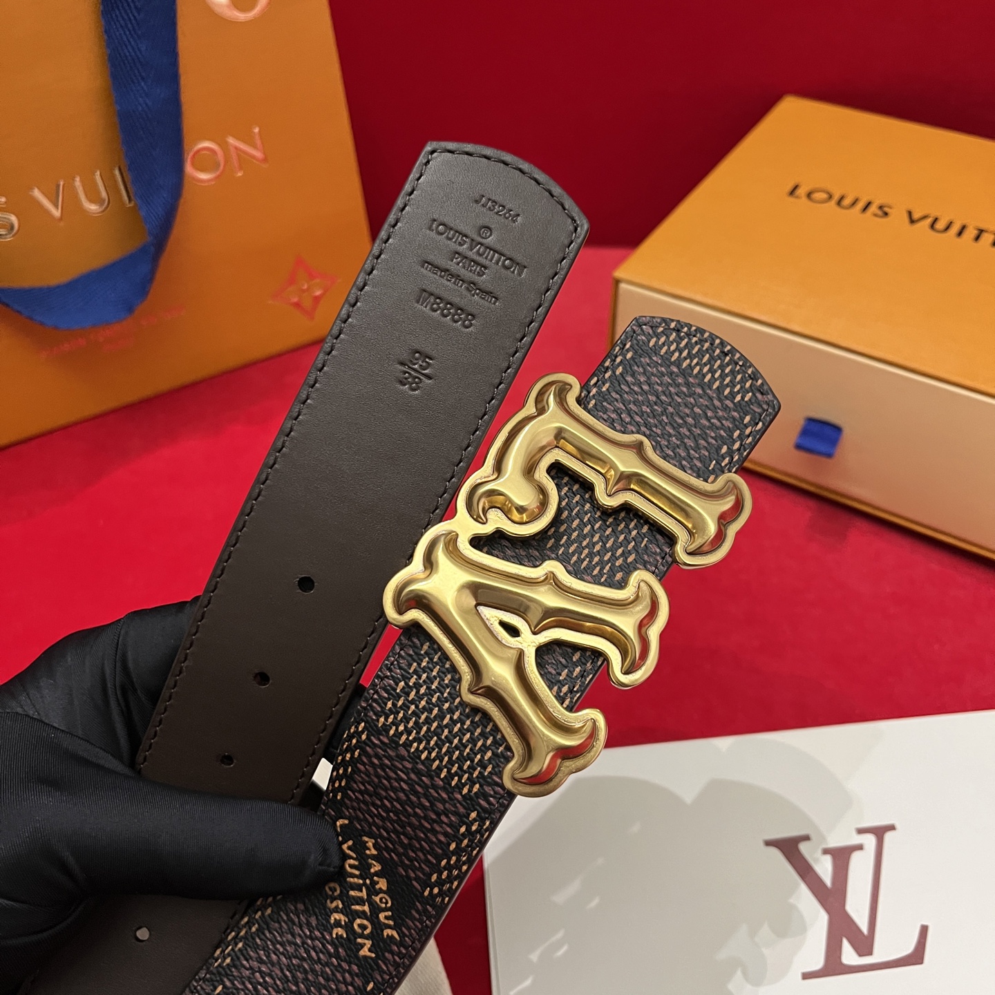 Loui* Vuitto*—New Selection Belt Top version, exquisite craftsmanship, width 4cm, original factory lychee grain surface embossed with floral pattern effect, imported soft calfskin base, paired with new stainless steel inter-color lettering effect buckle, double-sided usable, purchasing version, top