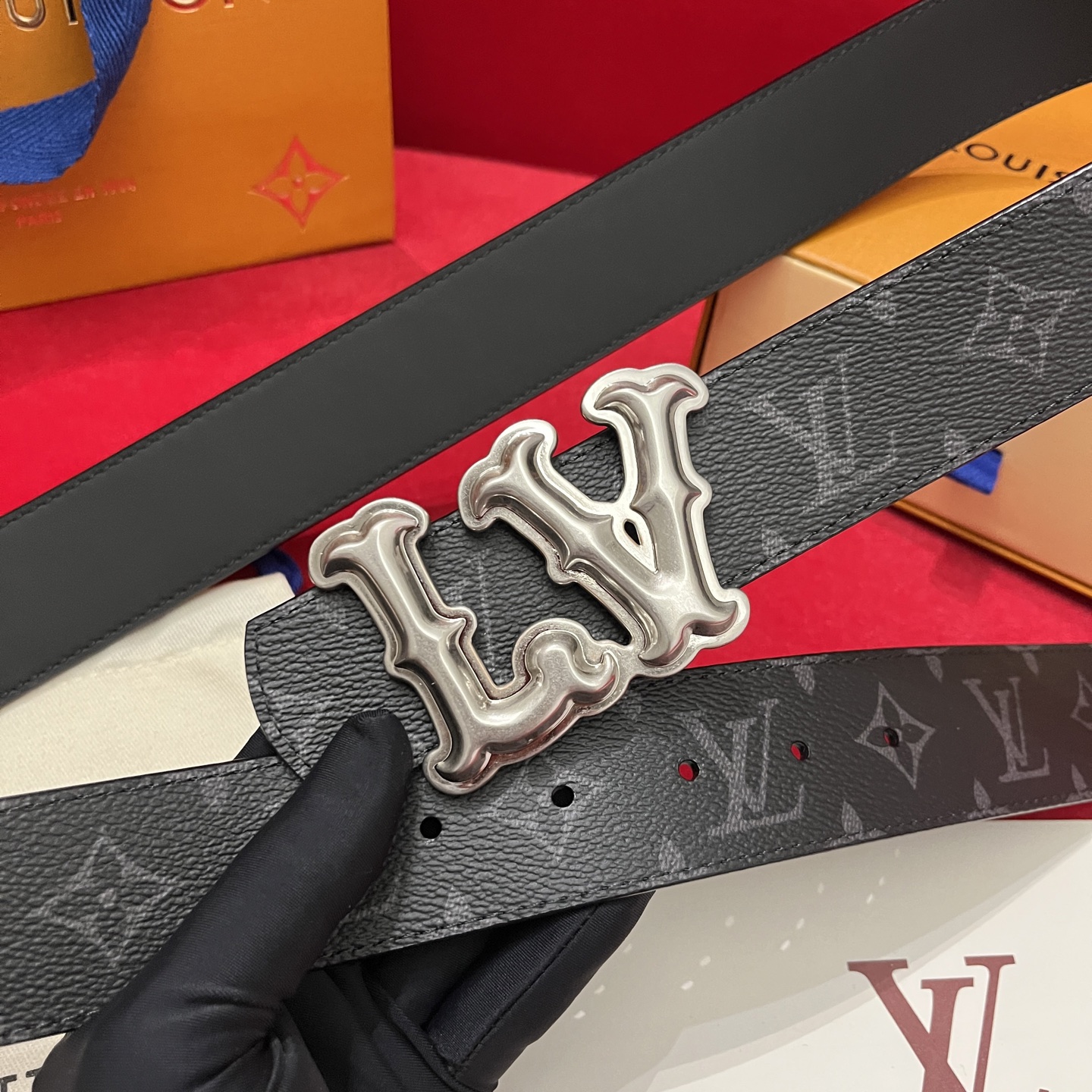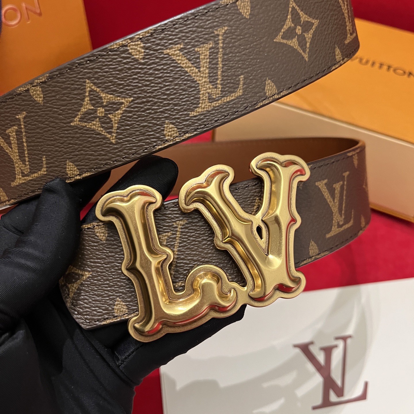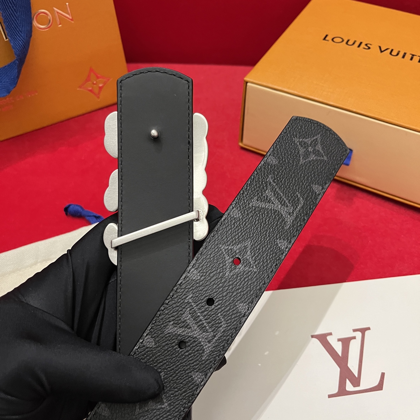 Louis Vuitton new belt selection. Top version, 4cm width, floral pattern, soft calfskin, dual-sided buckle.