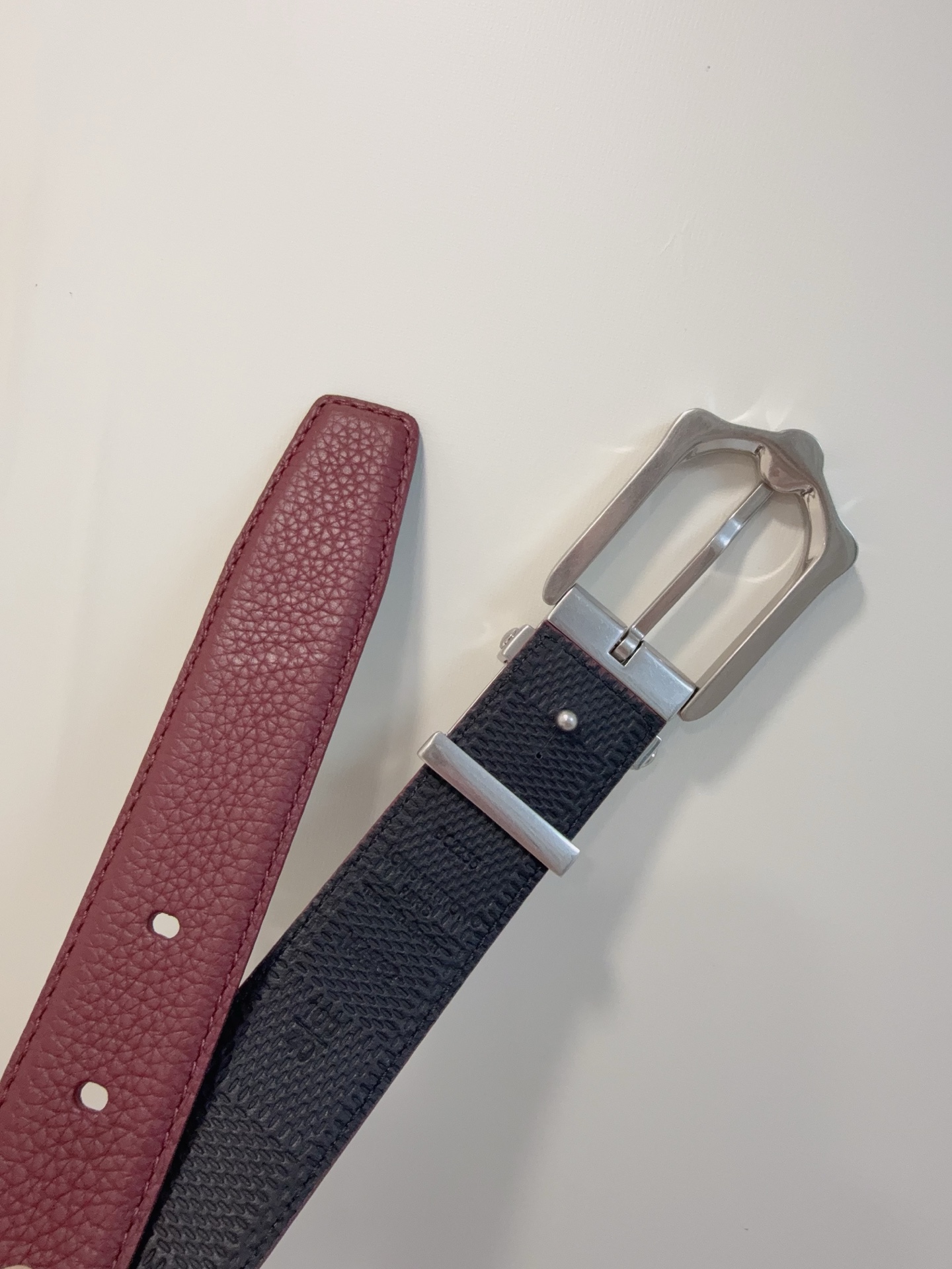 LV's new Frog reversible belt combines modern elements with elegant details, featuring Damier leather and smooth leather for two styles. The aged buckle pays homage to the brand's trunk-making heritage. Purchasing agent version.