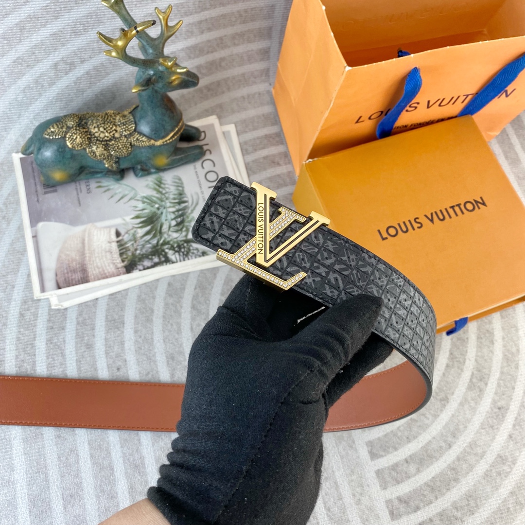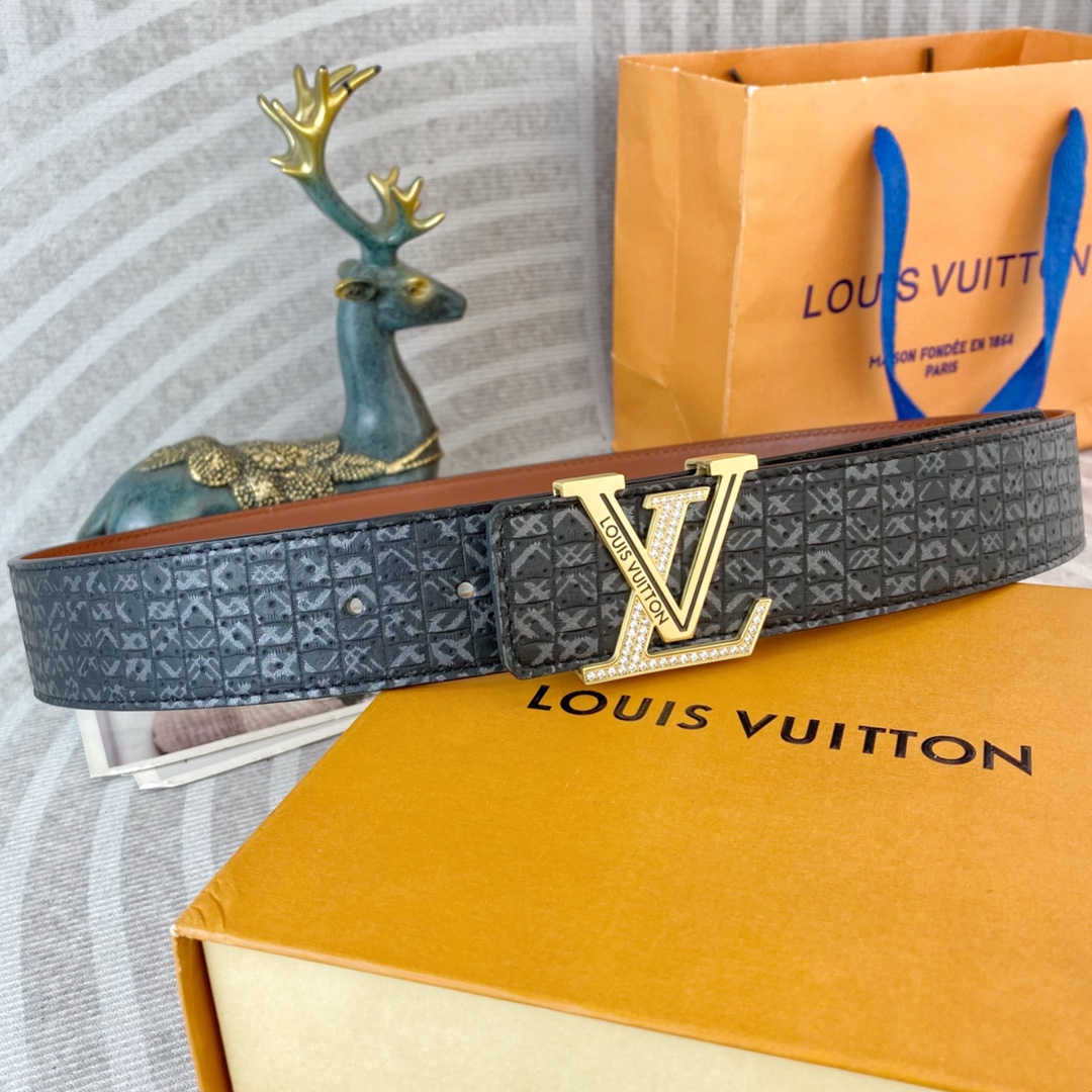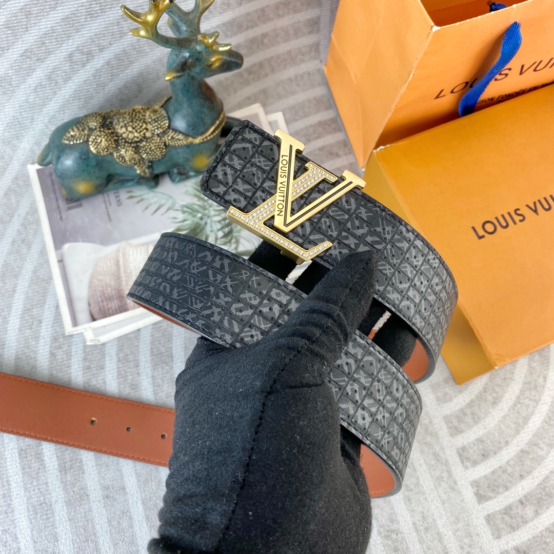 LV special leather belt series, stainless steel diamond buckle, soft and comfortable, 3.8cm wide.