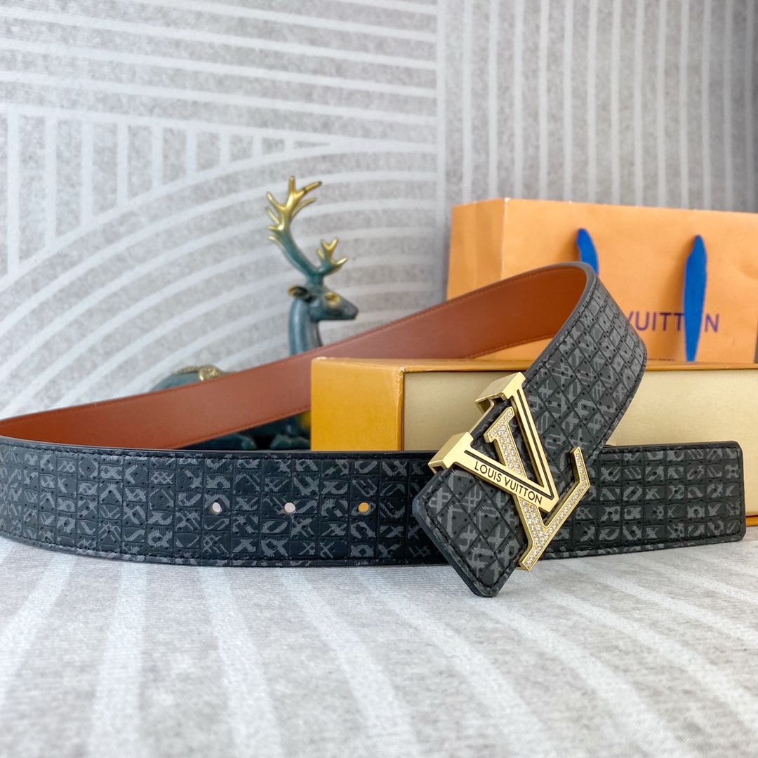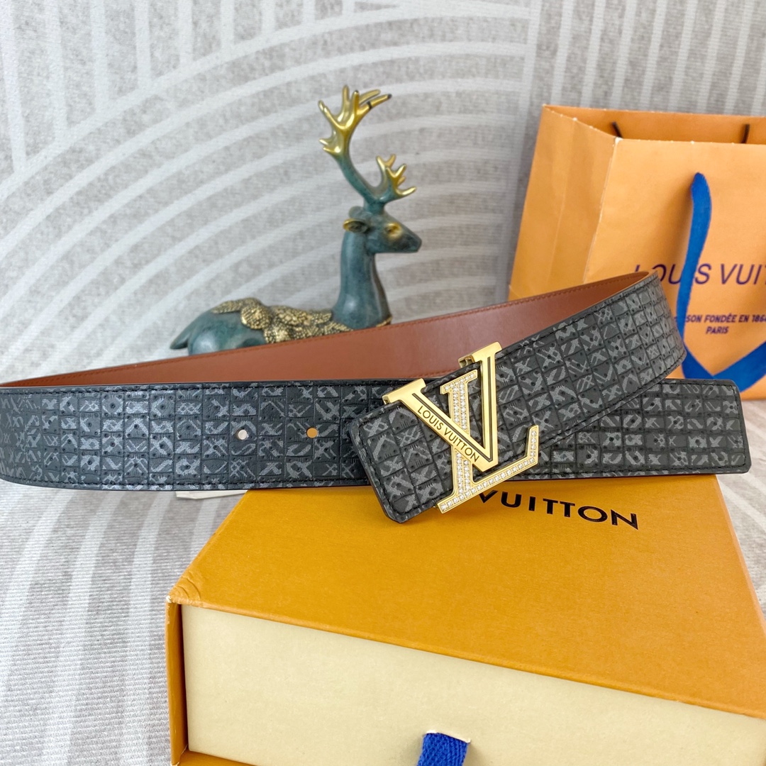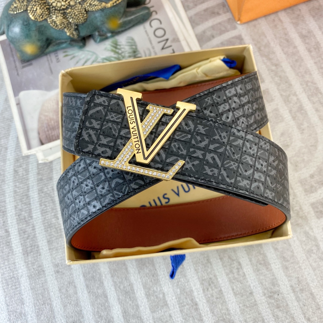 LV special leather belt series, stainless steel diamond buckle, soft and comfortable, 3.8cm wide.