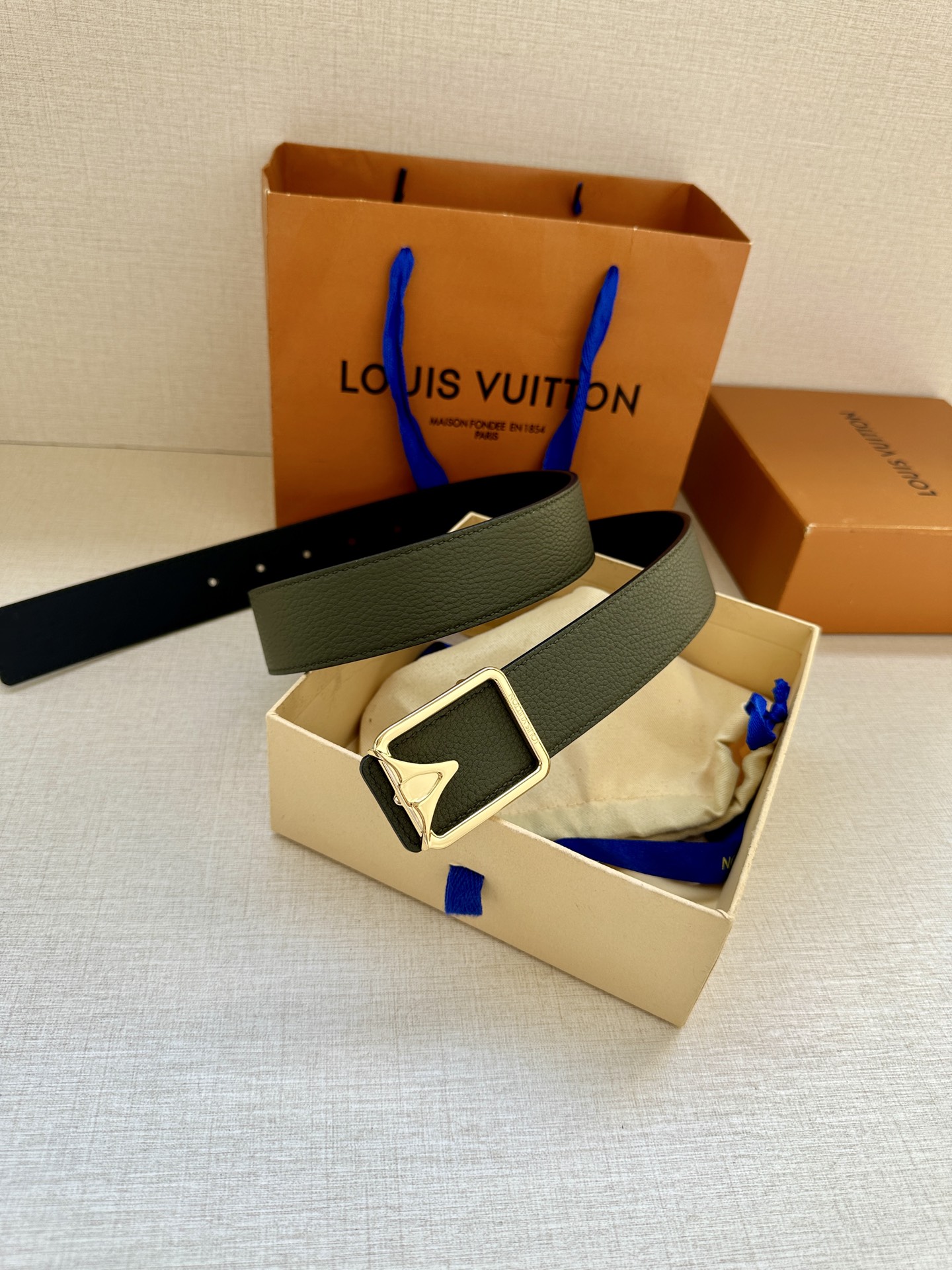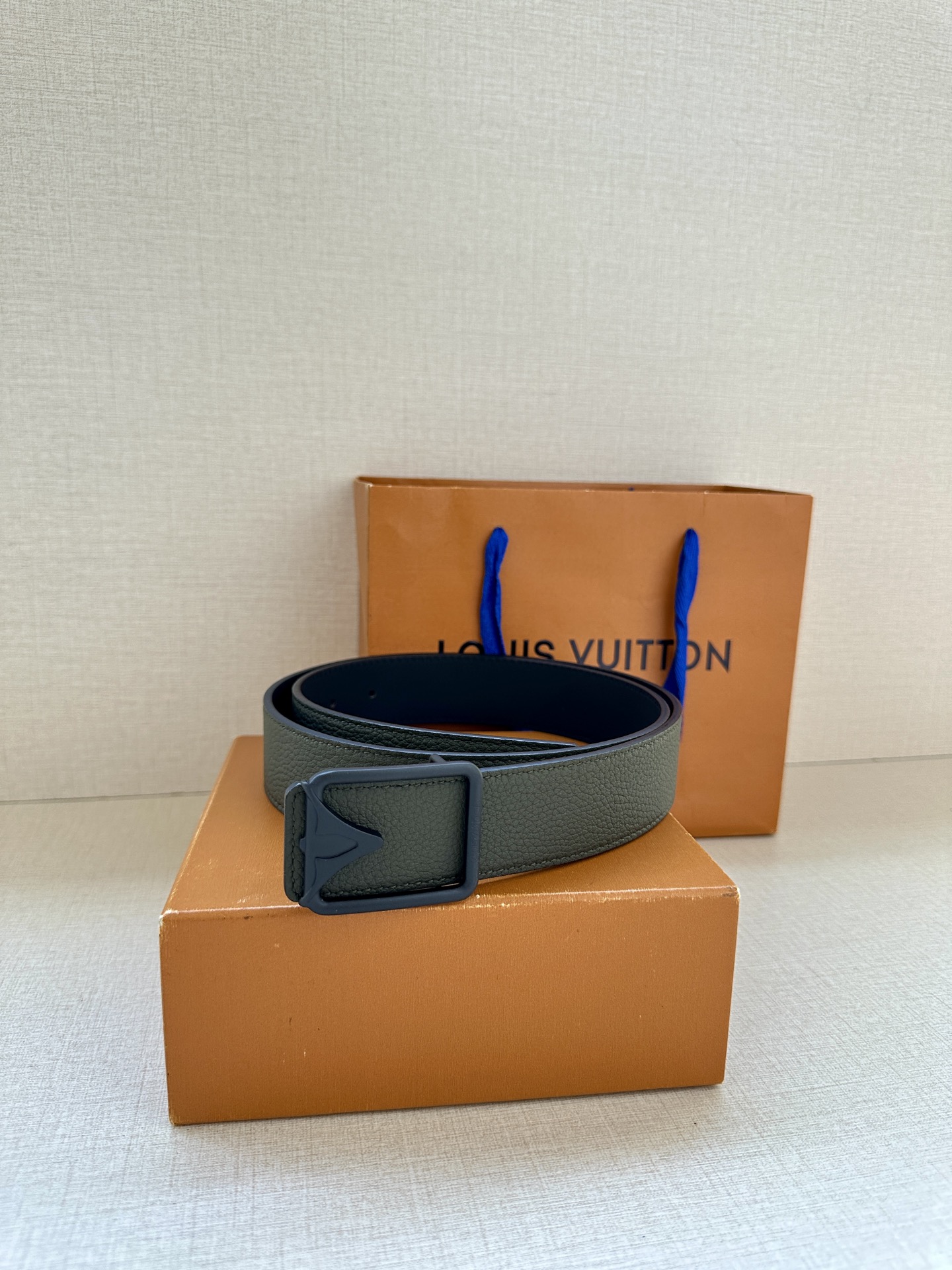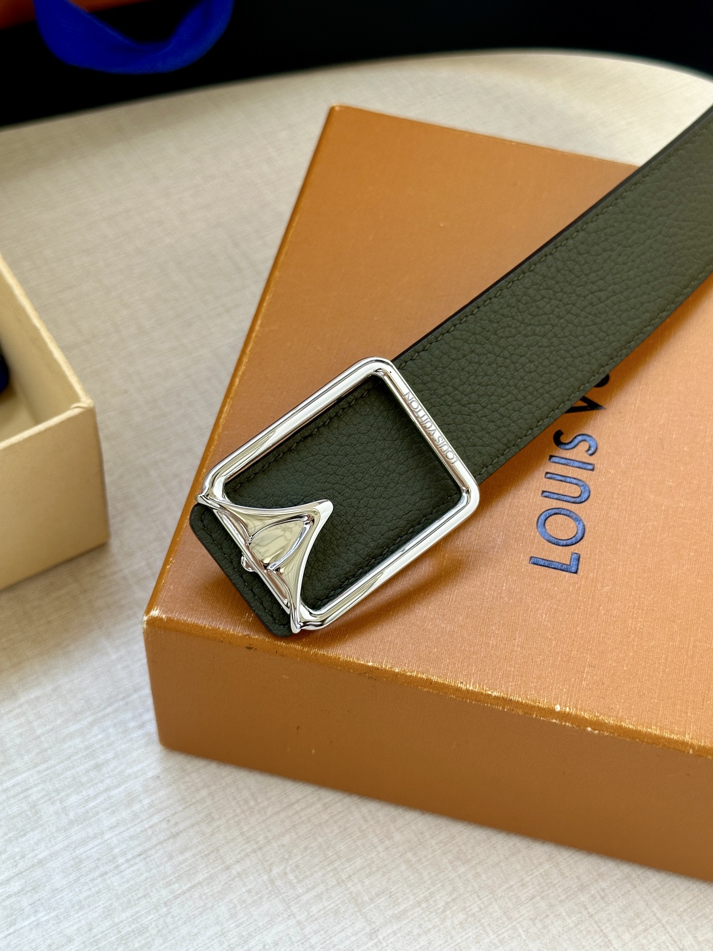 3.4 cm wide LV Trunk reversible belt. The leather creates a modern design that can add elegant charm to both business and casual styles. The engraved S-lock buckle draws inspiration from the brand's classic luggage elements.