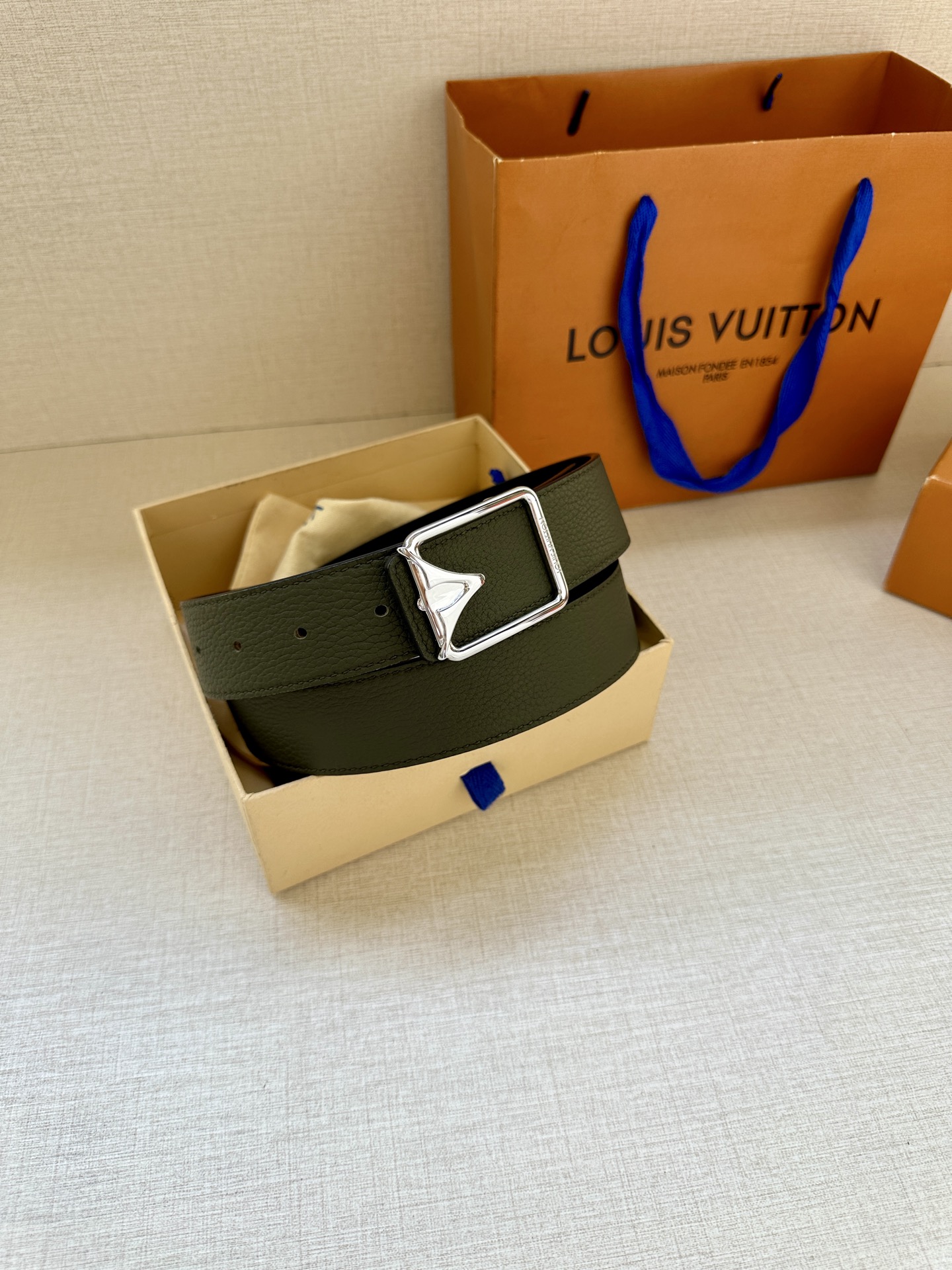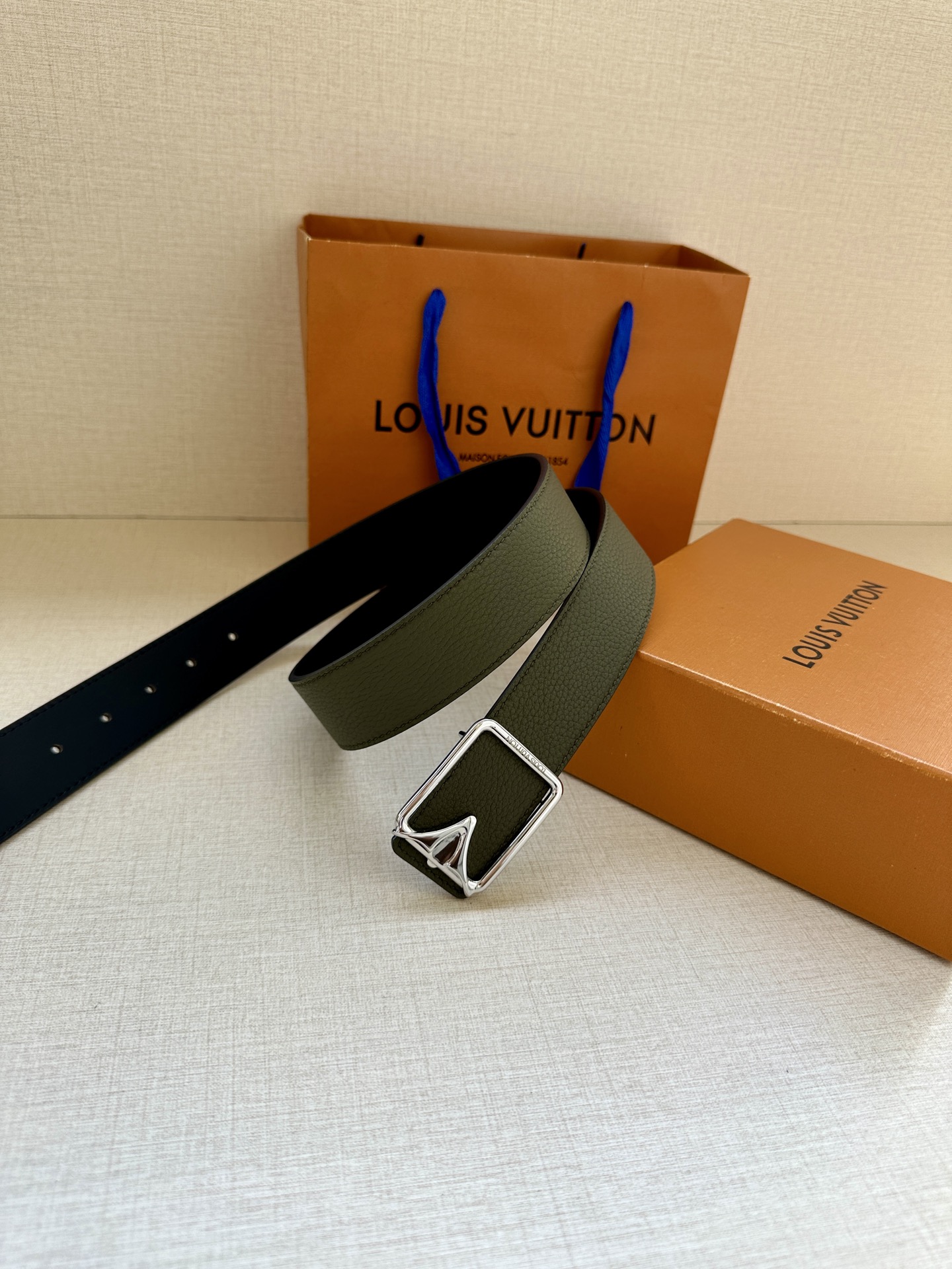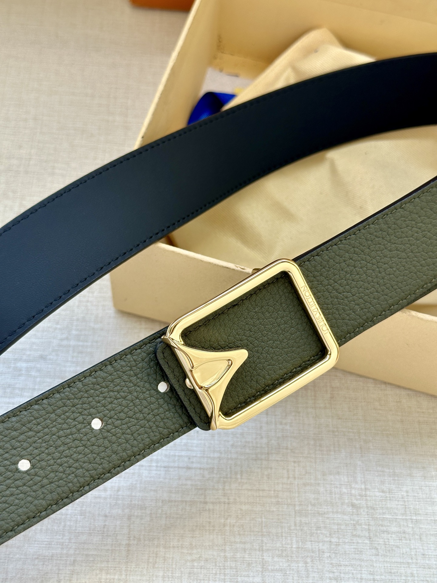 3.4 cm wide LV Trunk reversible belt. The leather creates a modern design that can add elegant charm to both business and casual styles. The engraved S-lock buckle draws inspiration from the brand's classic luggage elements.