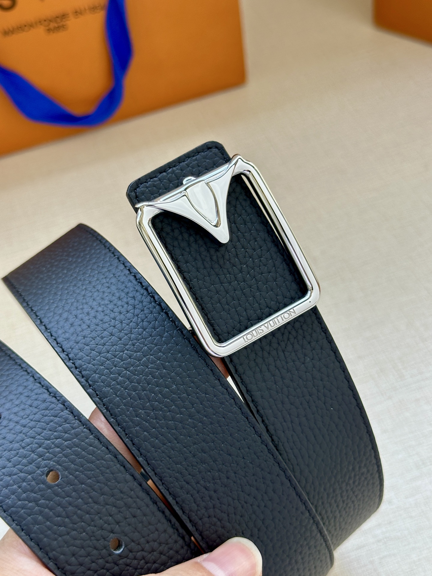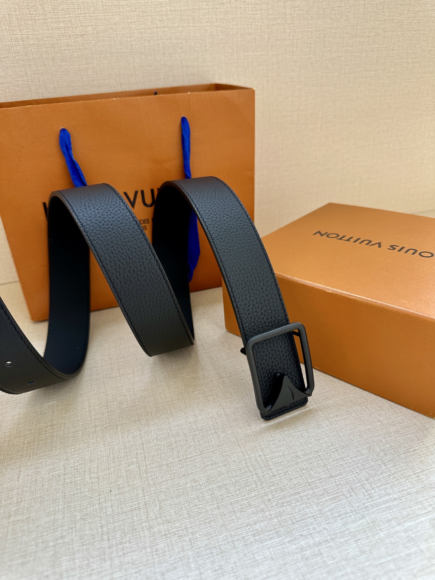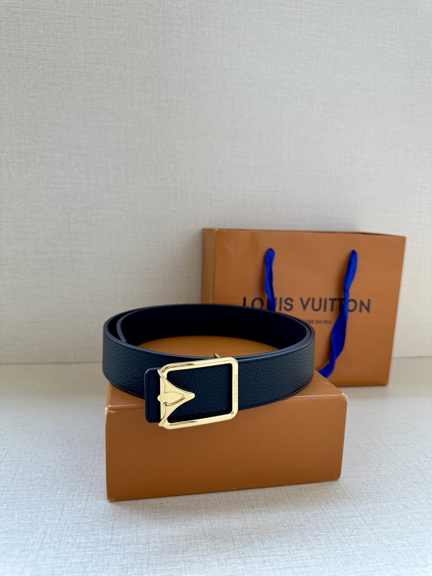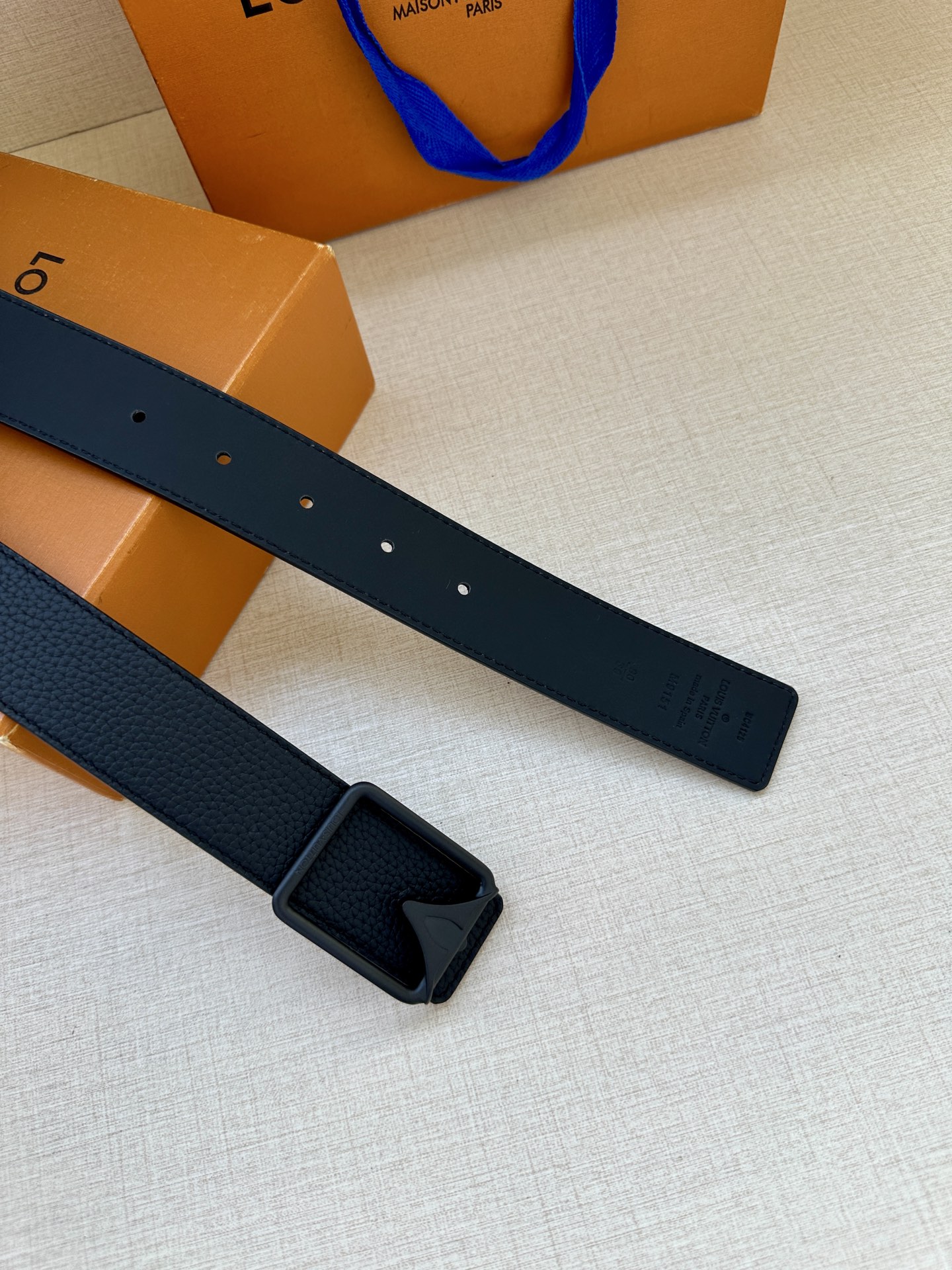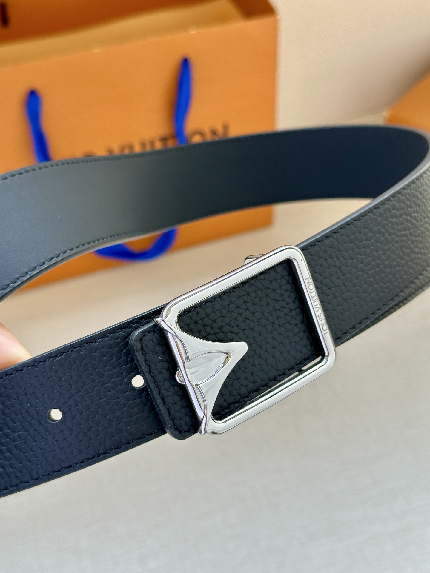 3.4 wide LV Trunk reversible belt. The leather crafts a modern design that can infuse both business and casual styles with elegant charm. The engraved S-lock buckle draws inspiration from the brand's classic luggage elements.
