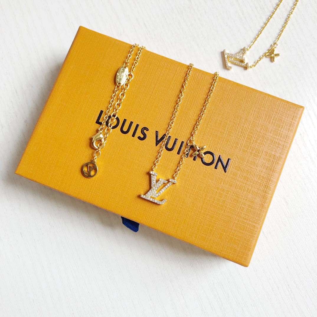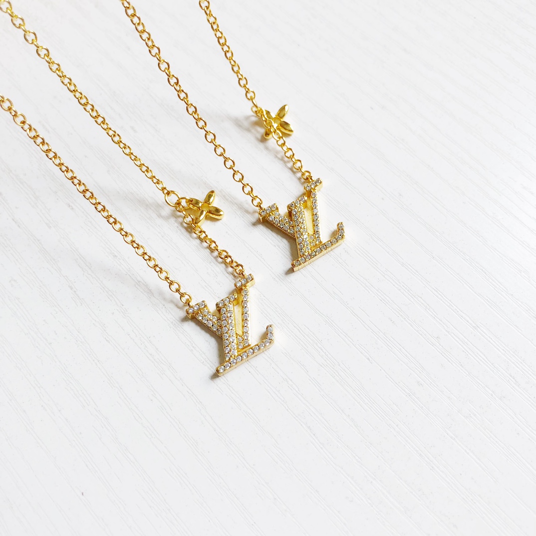 LV's latest four-leaf clover letter diamond necklace, highly recommended and popular. Limited stock, exquisite 3D logo, adjustable length with full packaging.