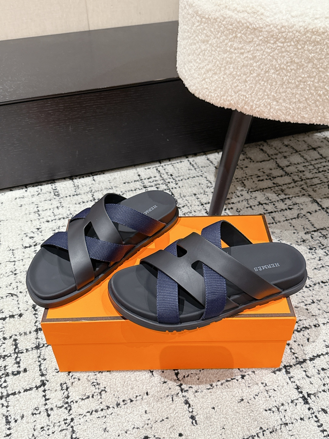 Men's Hermes Kazimir Series Cross Strap Sandals Retro Flip-Flops. Summer style with iconic 'H' patterned woven upper. Imported leather, soft lining, non-slip sole. Size 39-45.