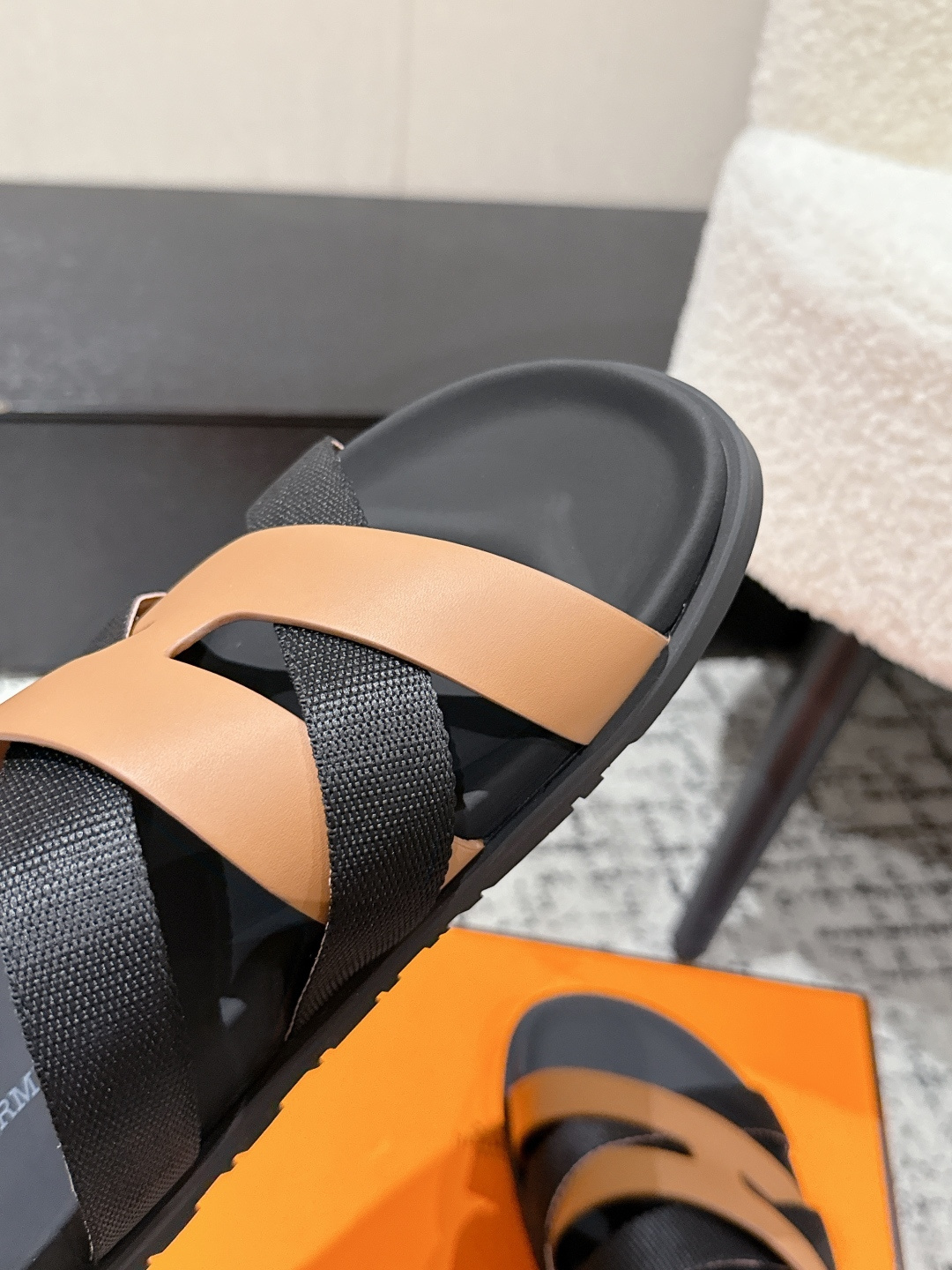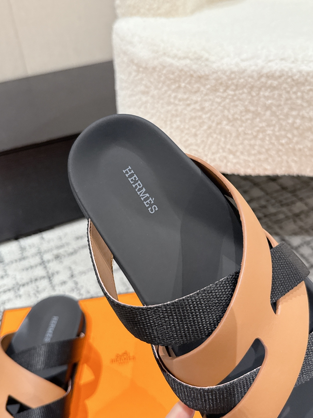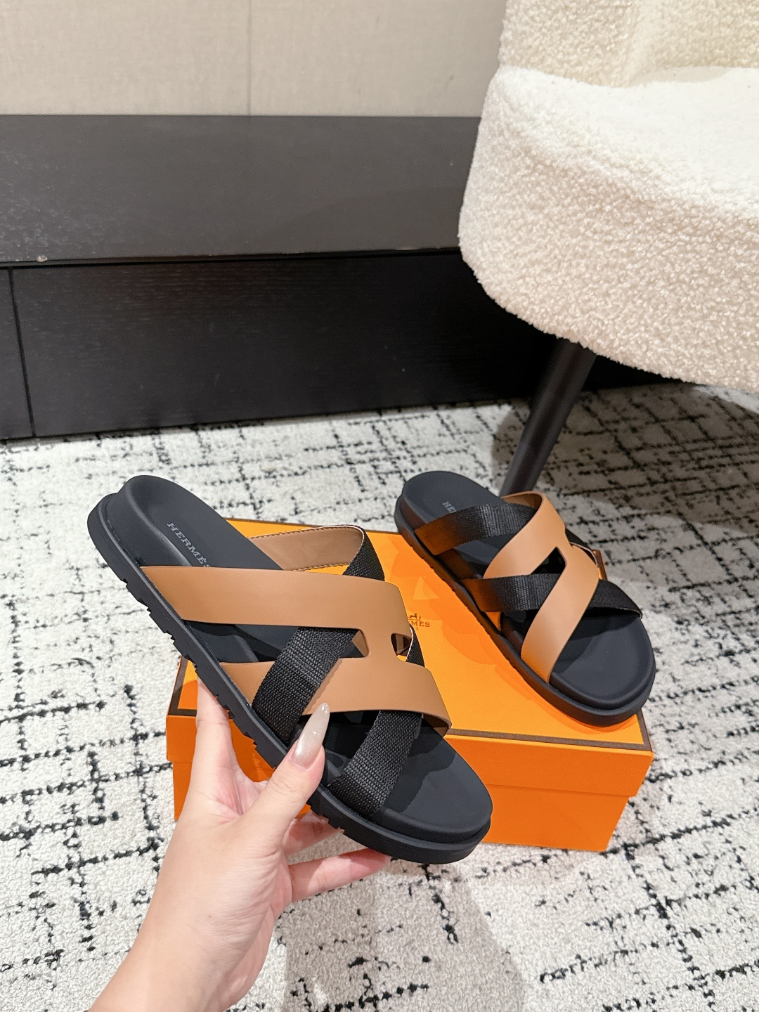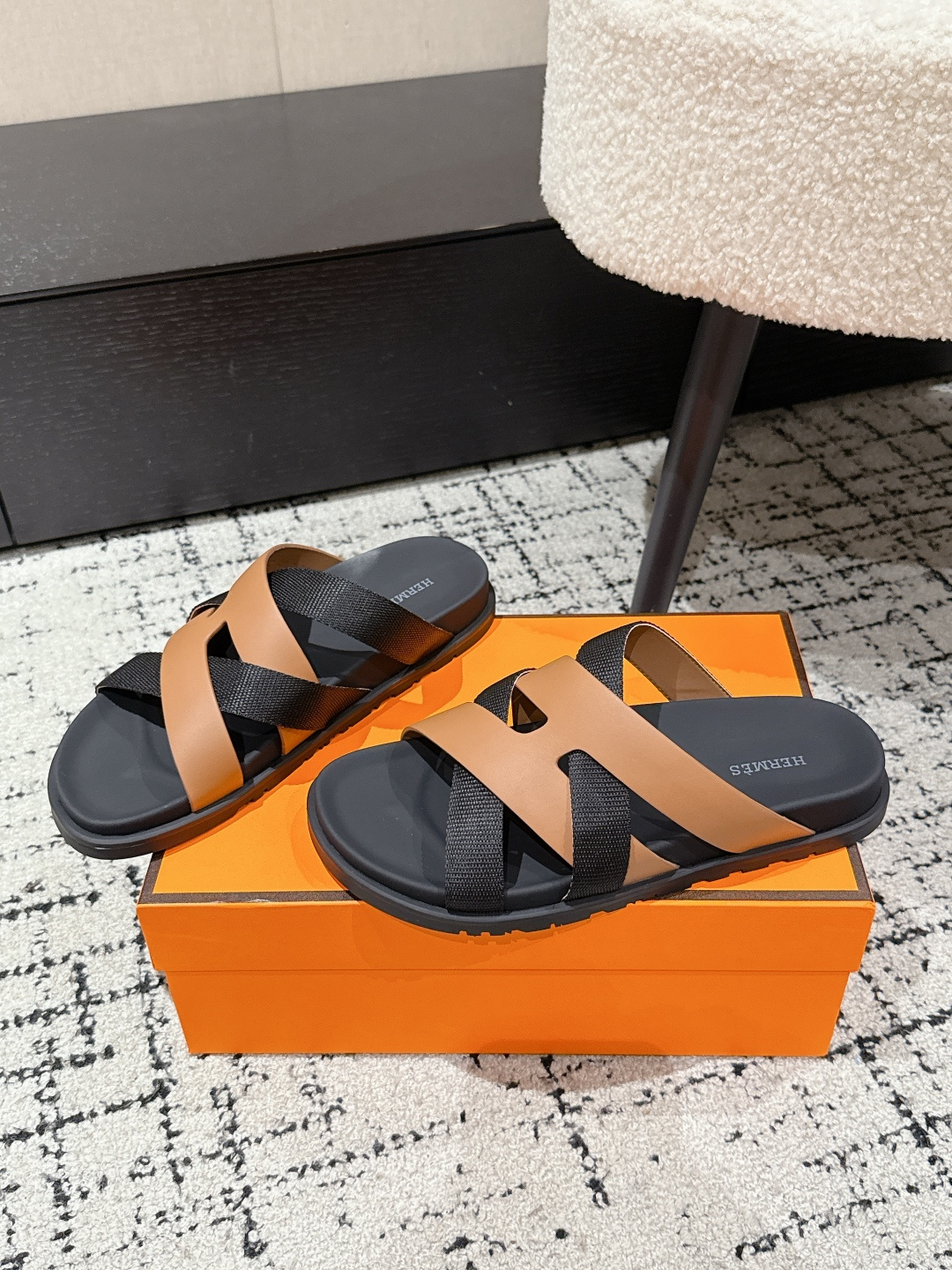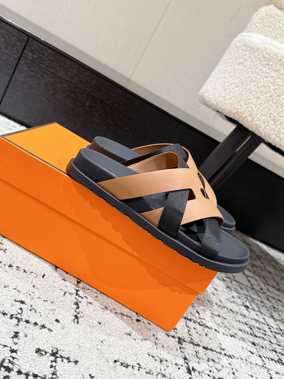 Men's Hermes Kazimir series crossover strap sandals, retro slippers. Summer essential with iconic "H" woven design.
