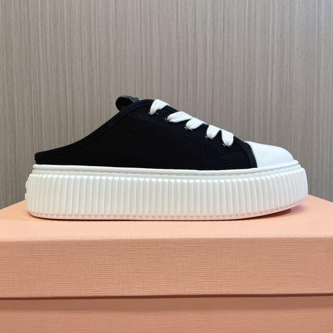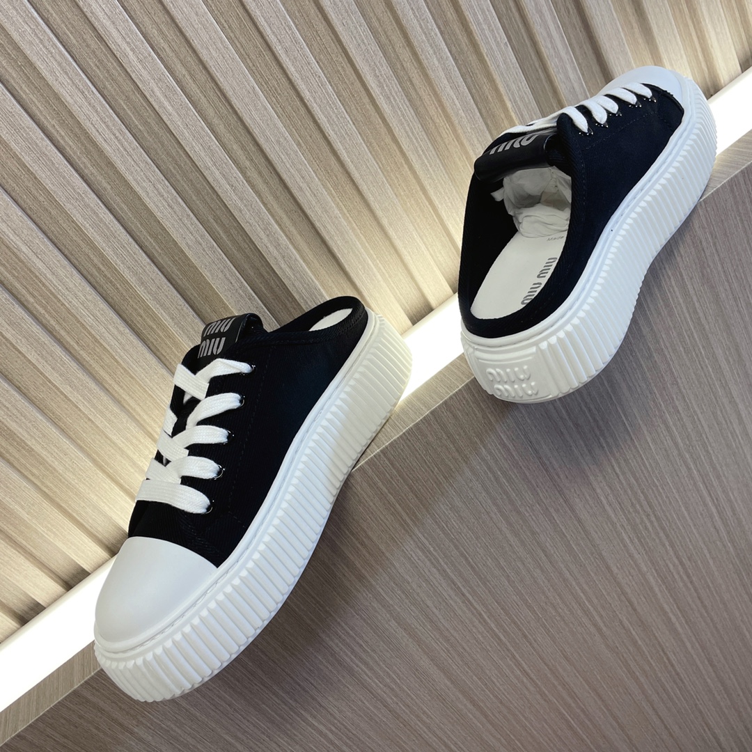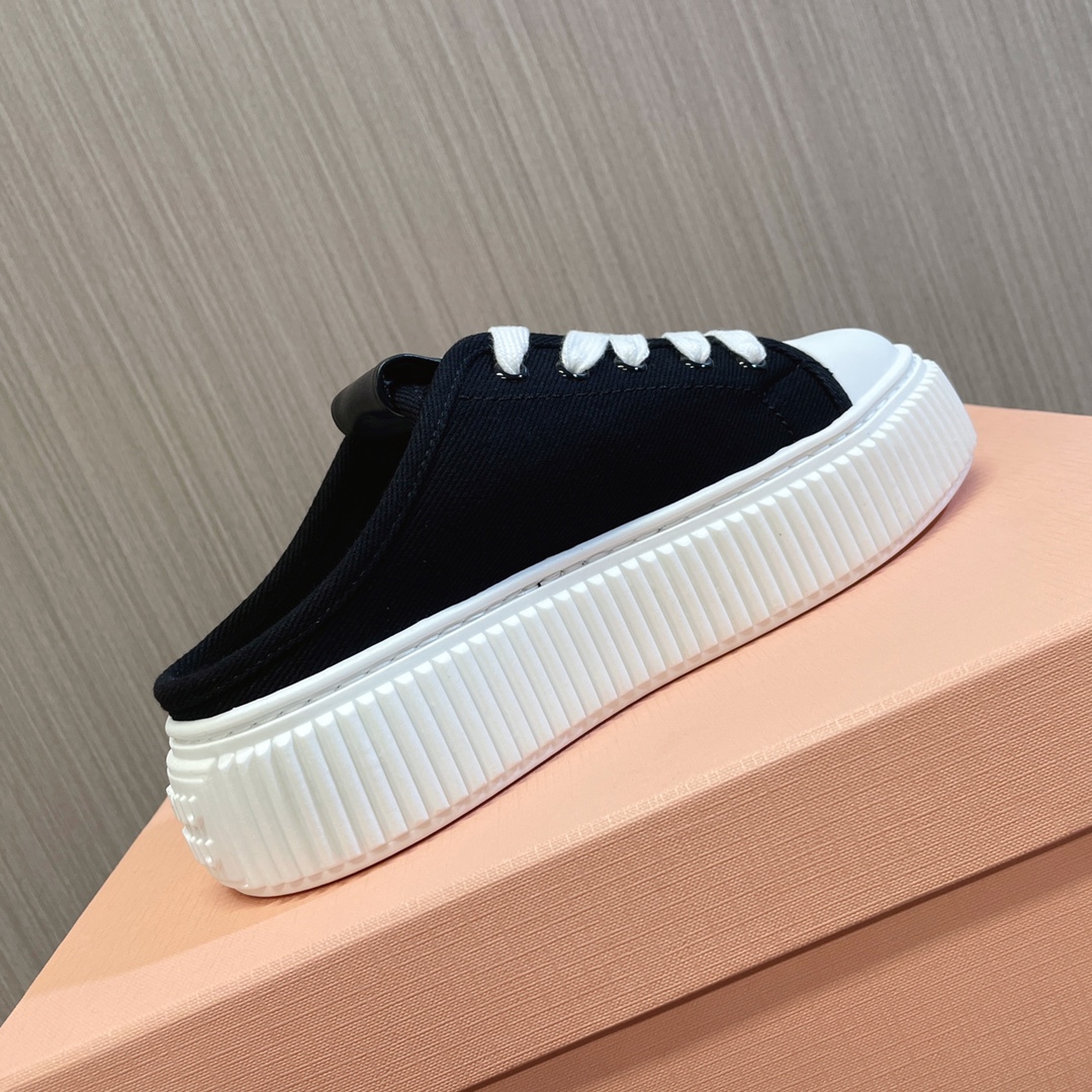 Miu Miu 2023 new half-drag sneakers, canvas shoes. Simple design, recognizable tongue, versatile and stylish. High-density canvas, leather insole, original TPU vacuum thick sole.