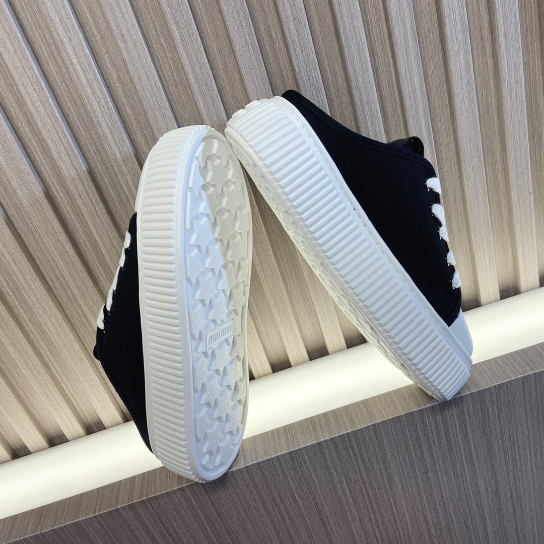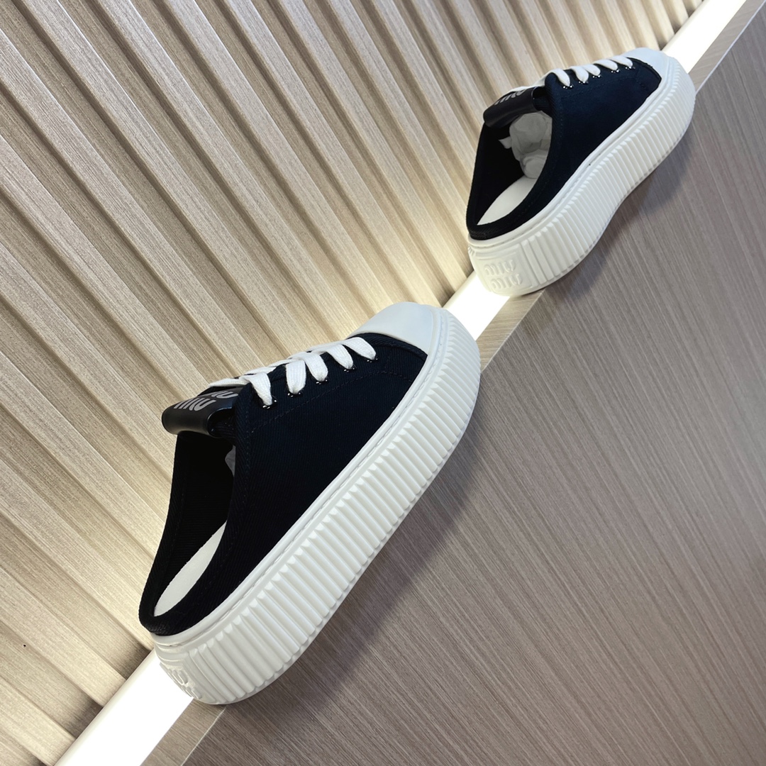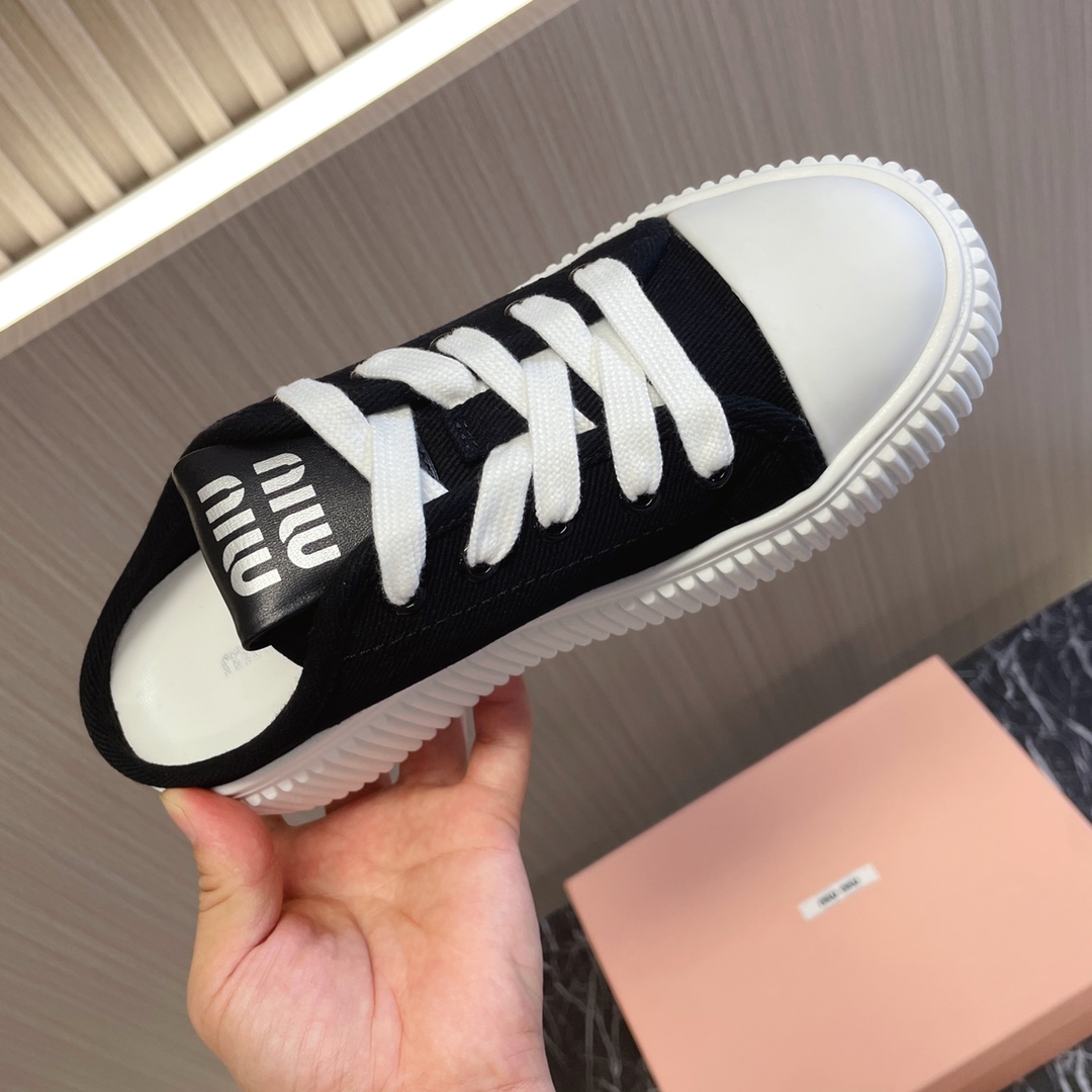 Miu Miu 2023 new half-drag sneakers, canvas shoes. Simple design, recognizable tongue, versatile and stylish. High-density canvas, leather insole, original TPU vacuum thick sole.
