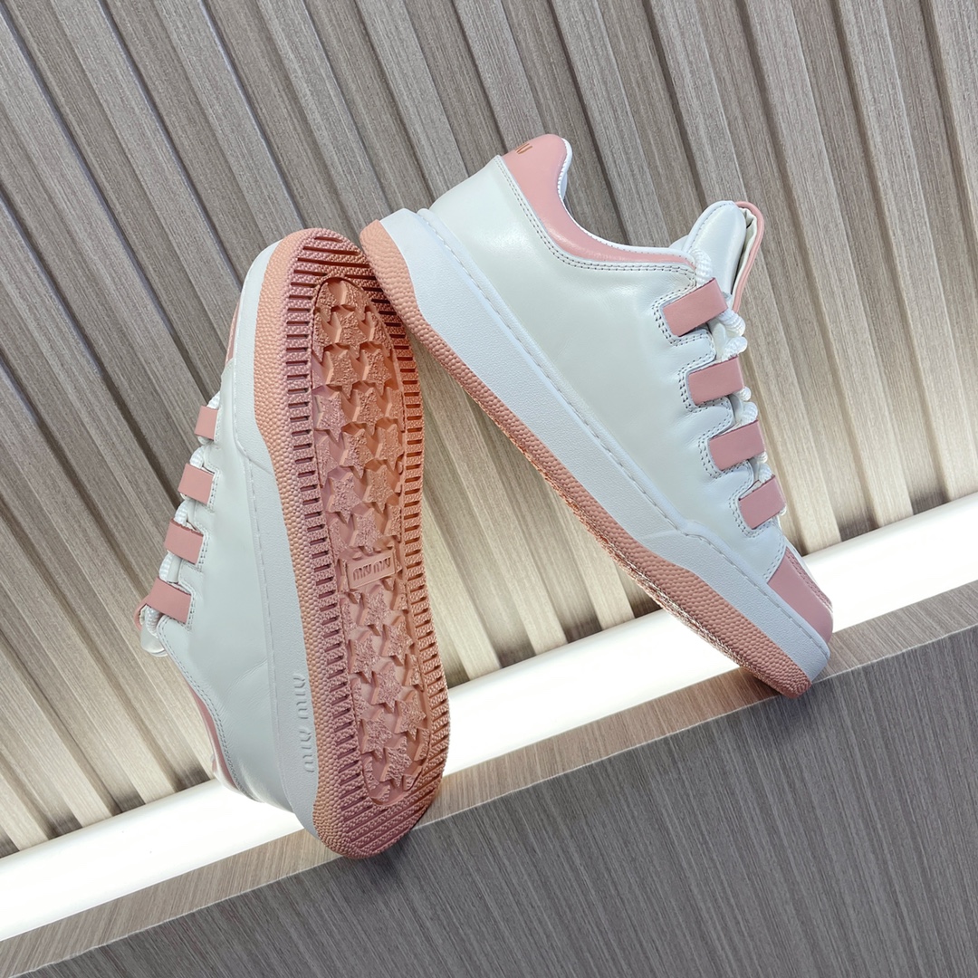Miu Miu 2023 sneakers: minimalist design, leather upper, versatile style.
