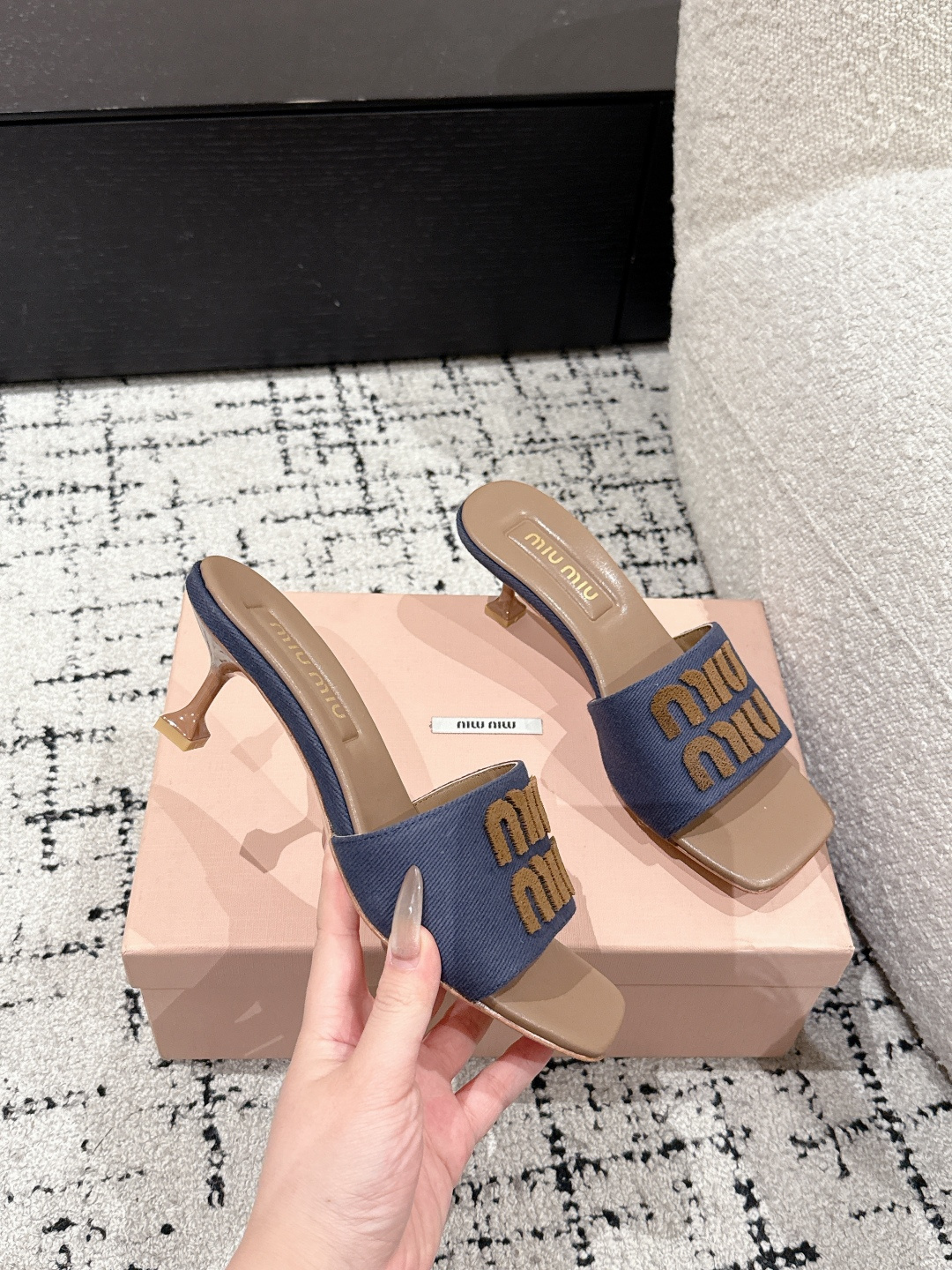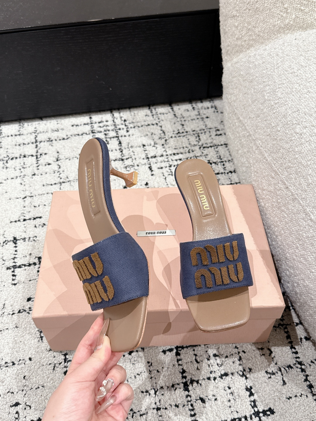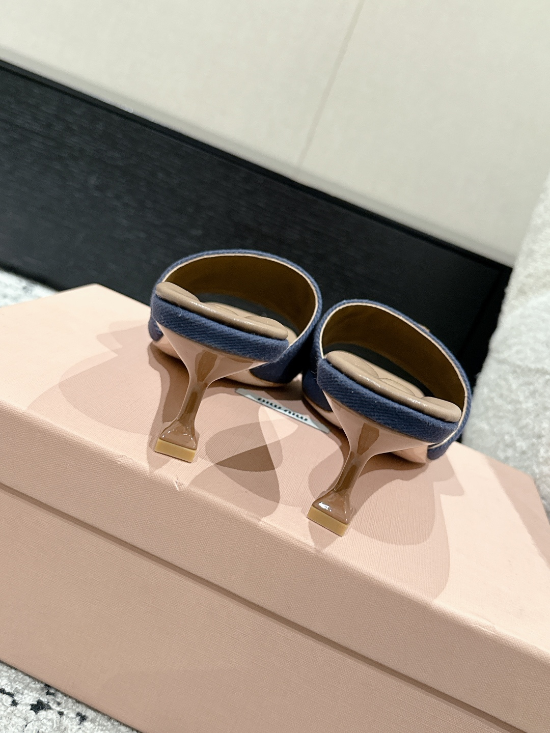 Miu Miu 25ss summer flat denim lambskin slippers. Handcrafted with cloud heel design, soft and comfortable. Upper: denim/lambskin, lining: lambskin, sole: Italian leather. Sizes 35-40.