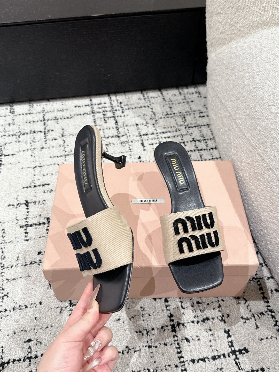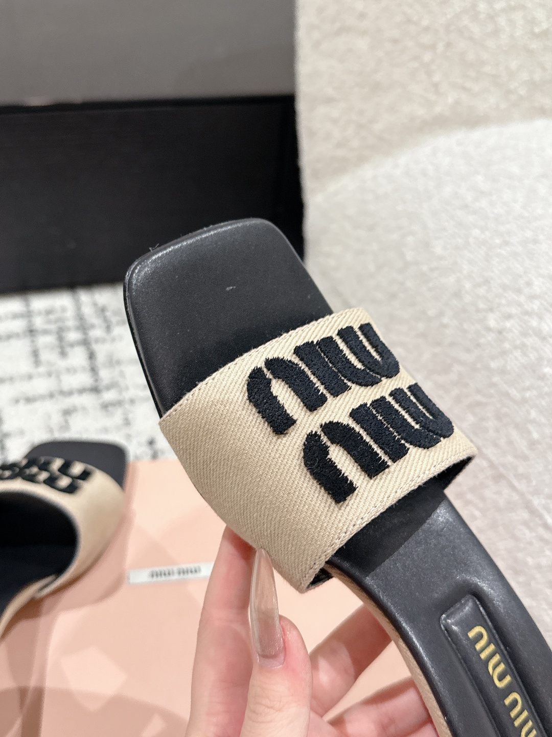 Miu Miu 25ss summer flat denim lambskin slippers. Handcrafted with cloud heel design. Upper: denim/lambskin, lining: lambskin, sole: Italian leather. Sizes 35-40.