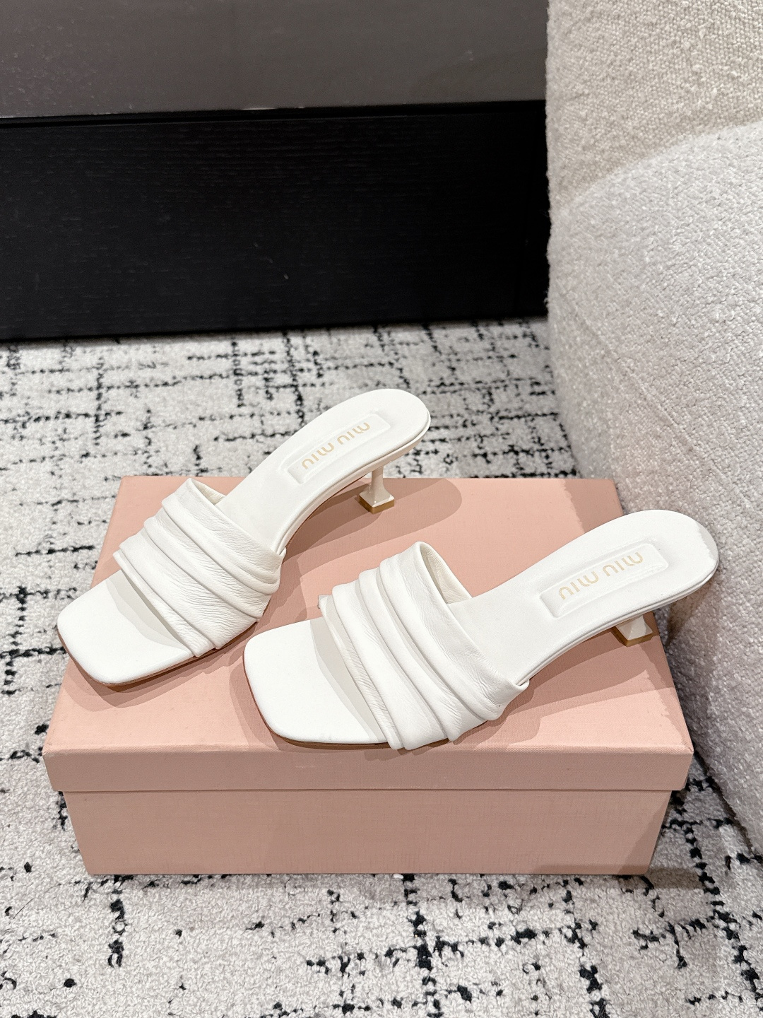 Miu Miu 25ss summer flat denim lambskin slippers. Handcrafted with cloud-shaped heel. Upper: denim/lambskin, lining: lambskin, sole: Italian leather. Sizes 35-40.