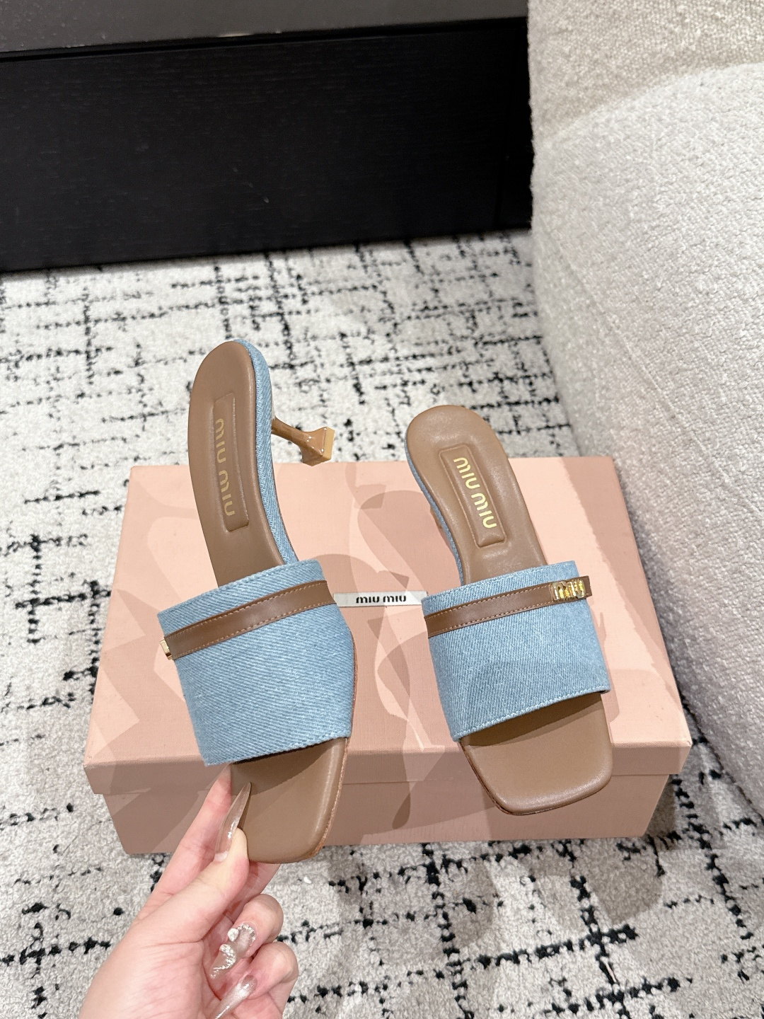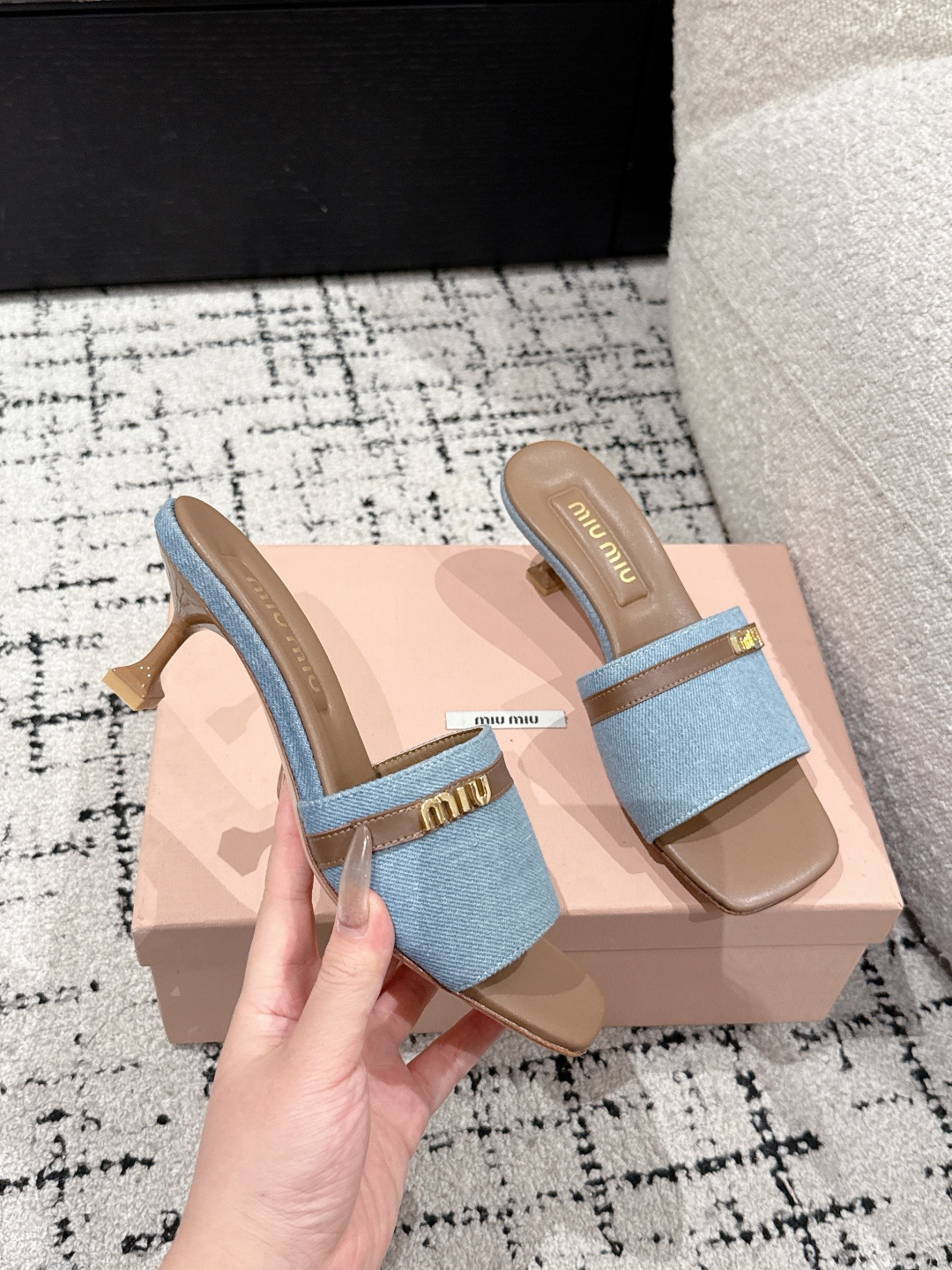 Miu Miu 25ss Latest Summer Flat Denim Lambskin Sandals