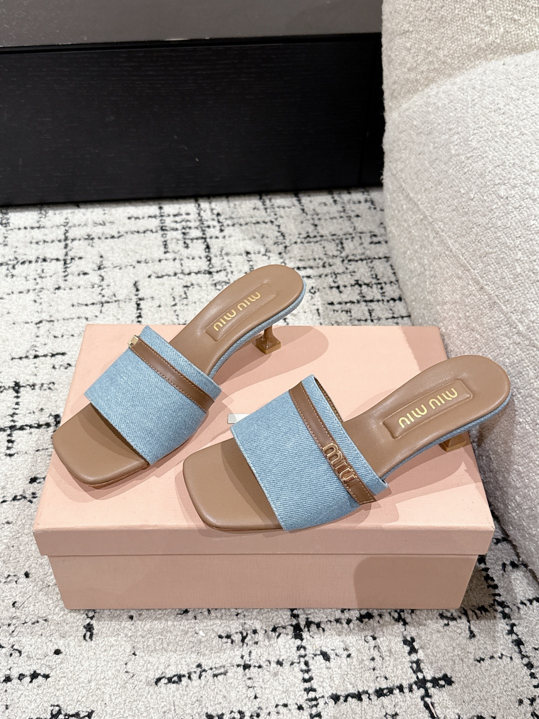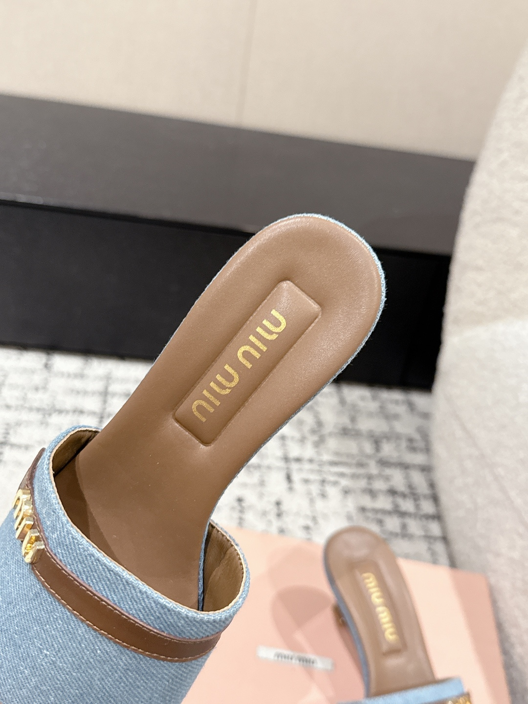 Miu Miu 25ss summer flat denim lambskin slippers. Handcrafted with cloud-shaped heel. Upper: denim/lambskin, lining: lambskin, sole: Italian leather. Sizes 35-40.