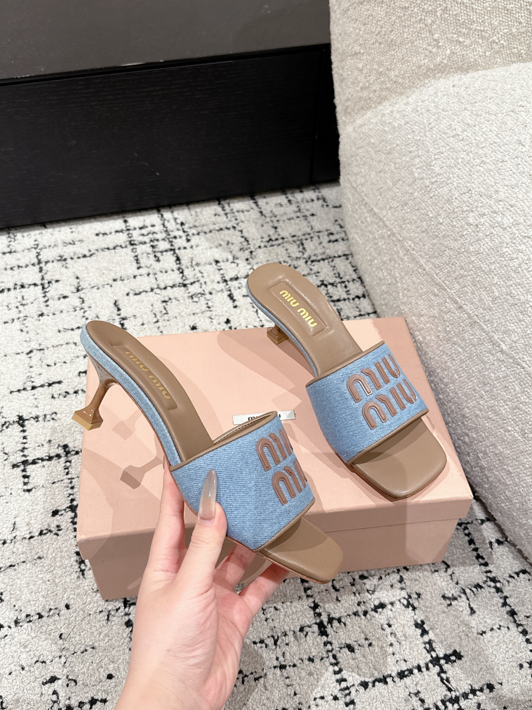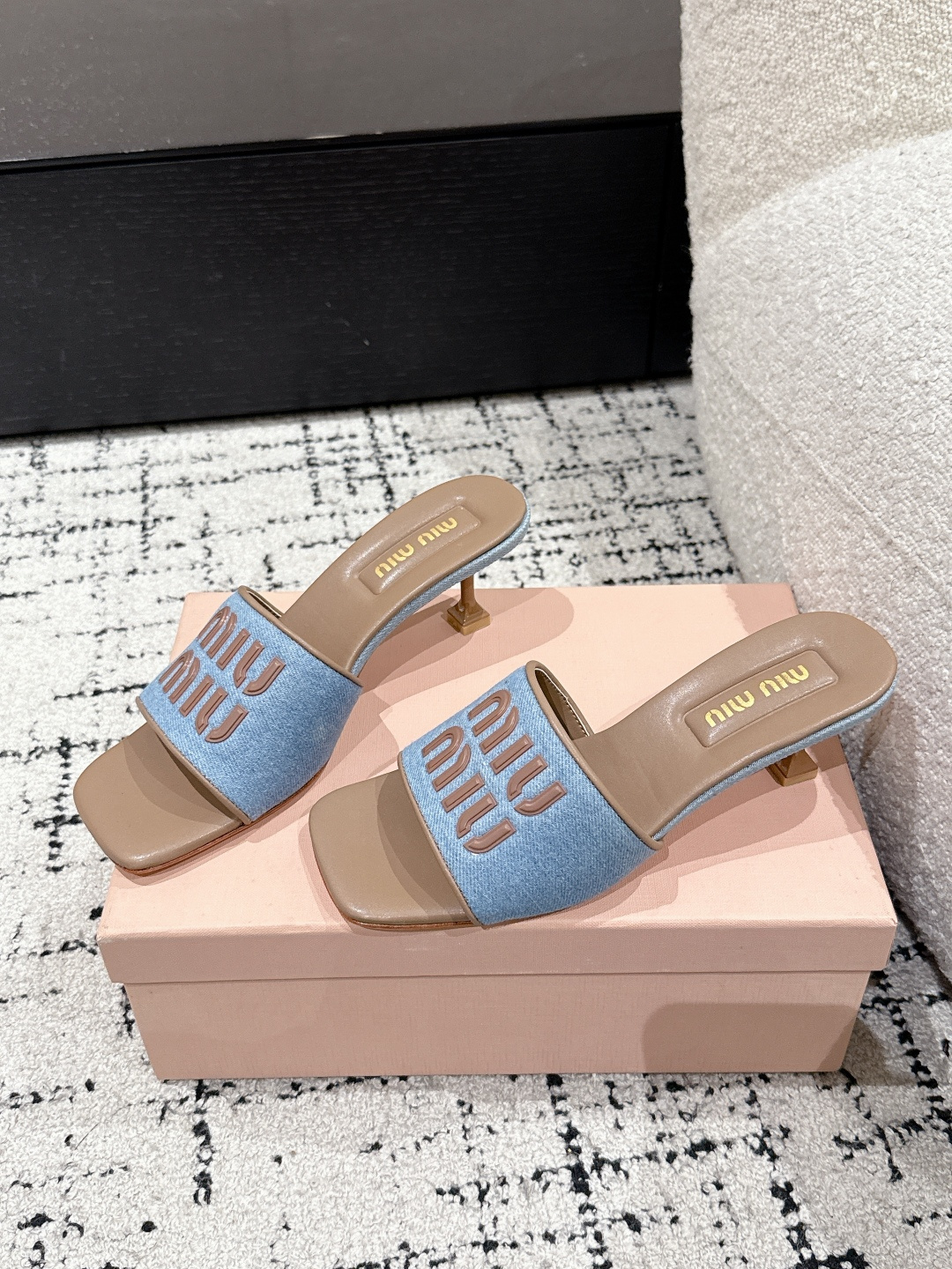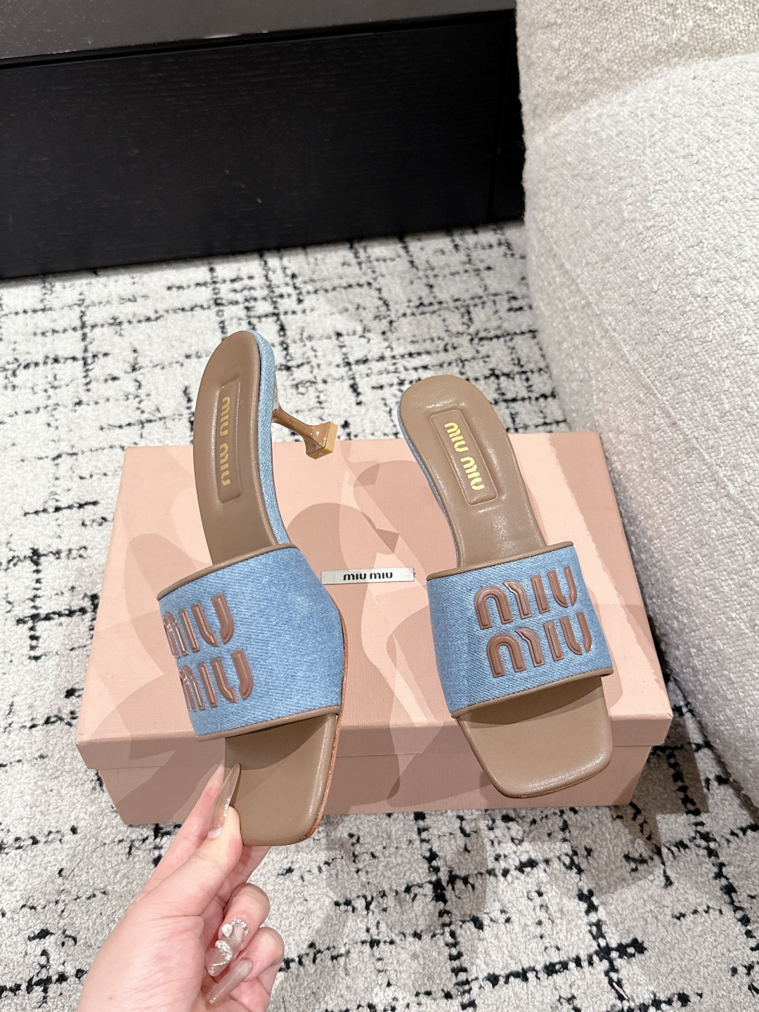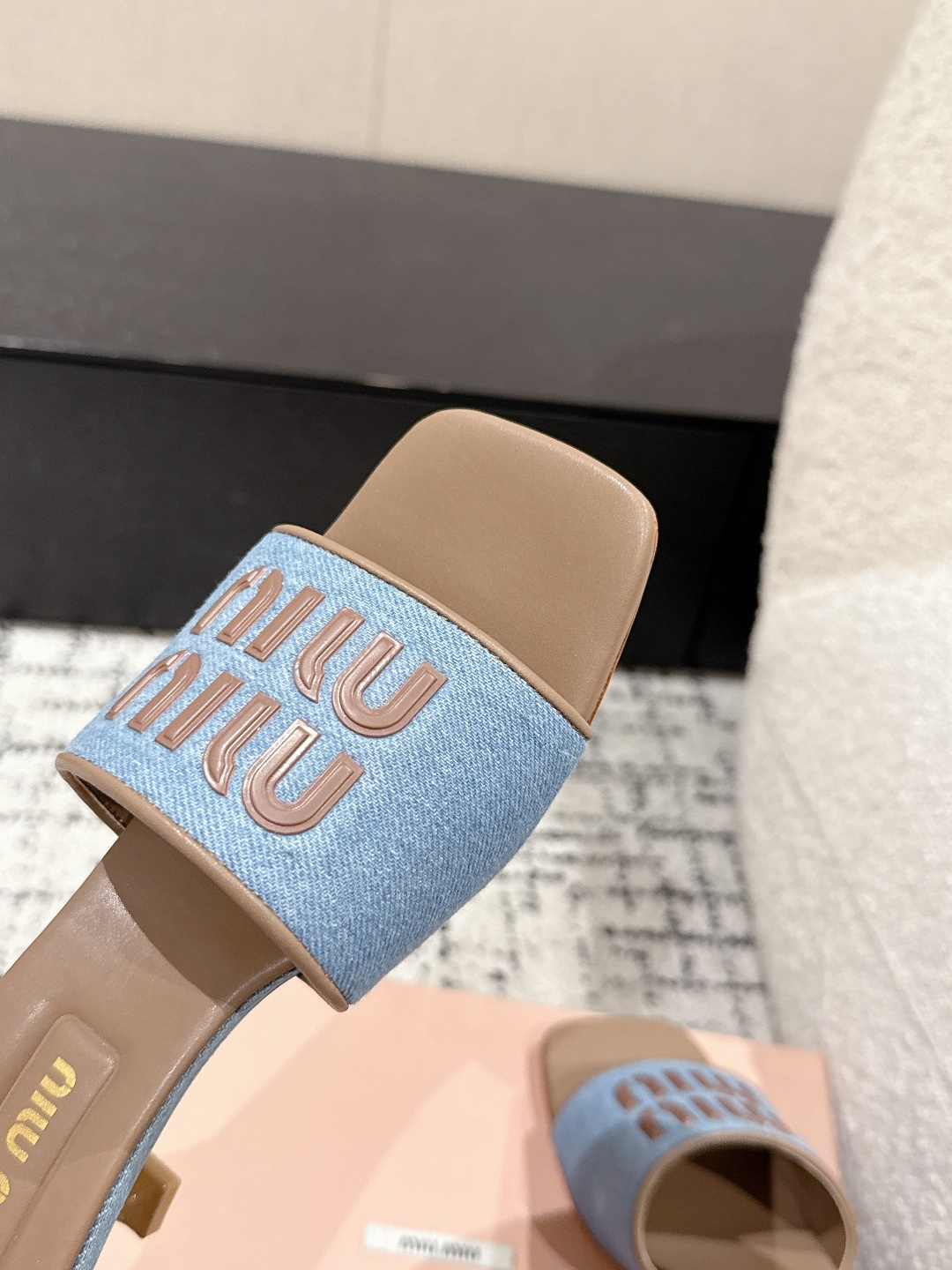 Miu Miu 25ss Latest Summer Flat Denim Lambskin Sandals