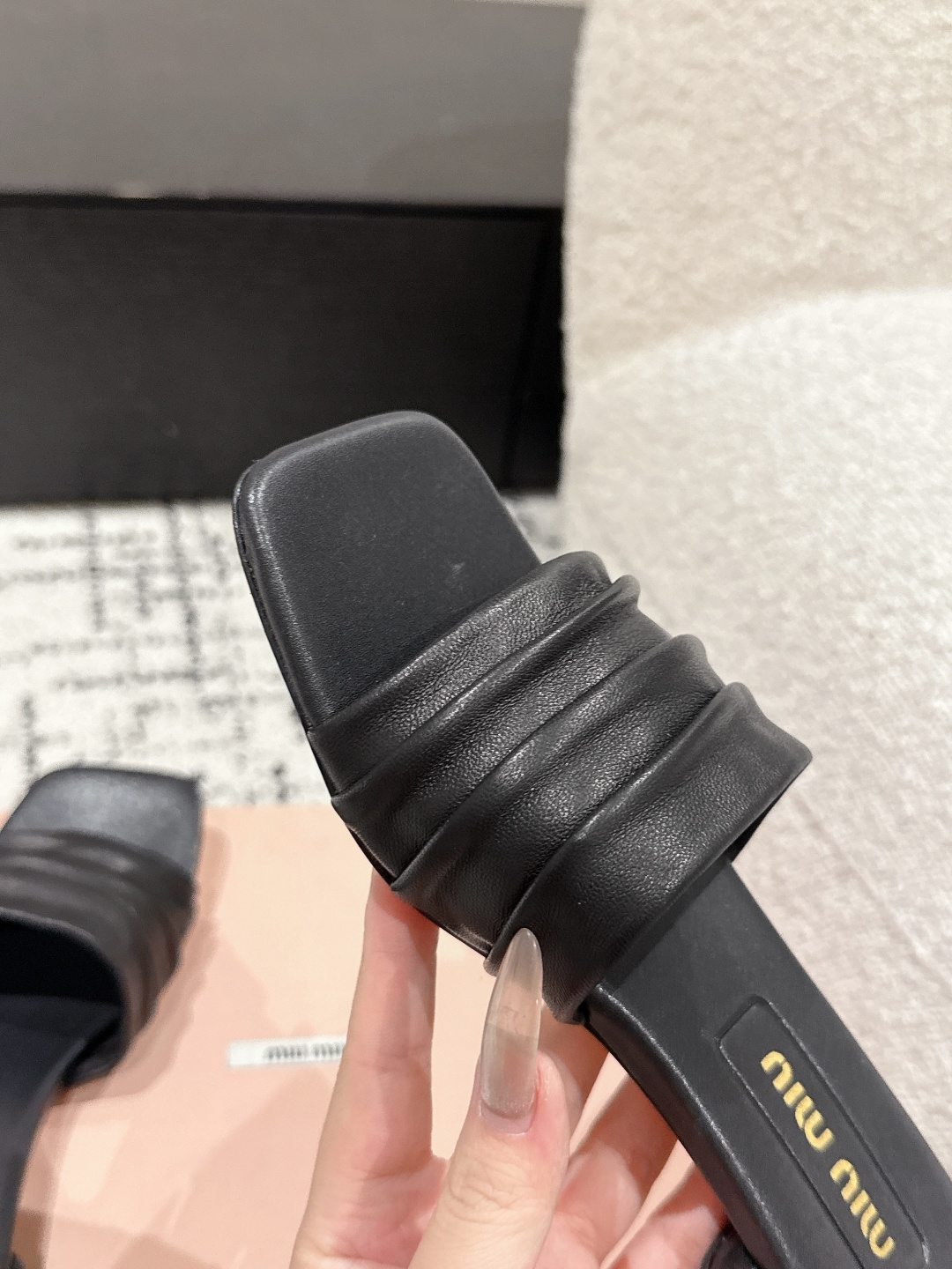 We specially customized a batch of premium lambskin for Miu Miu’s upcoming new designs. The pleated surface craftsmanship is indeed more challenging than before, and attention to detail is especially important.