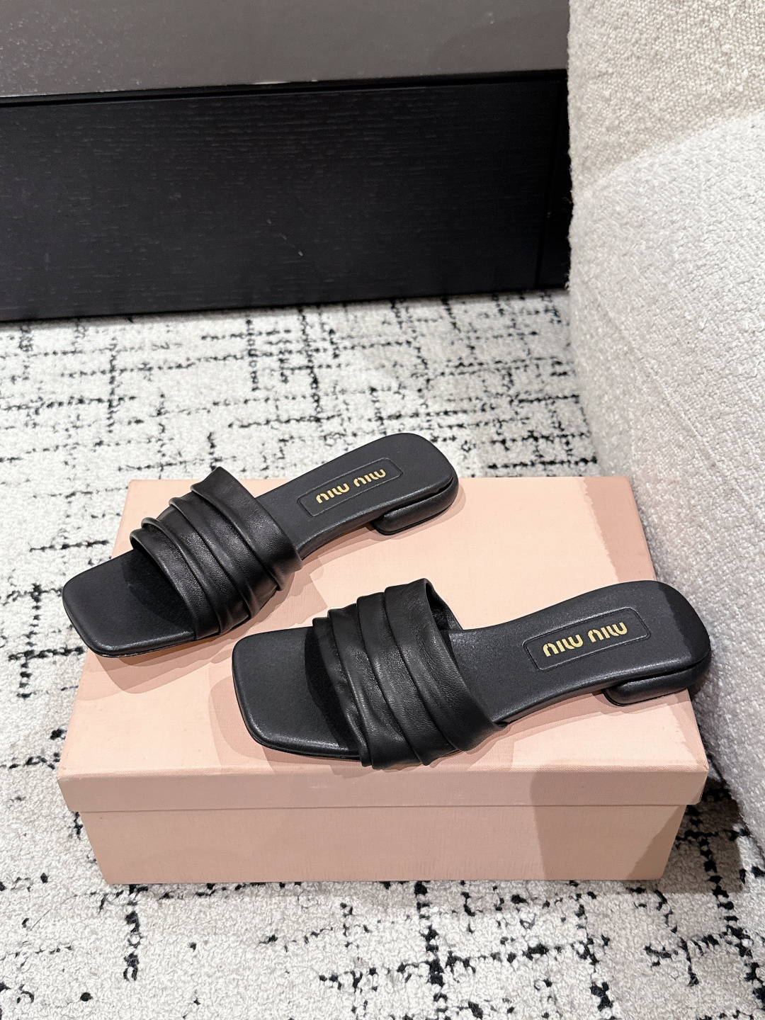 Miu Miu 25ss summer flat denim leather slippers. Handcrafted with cloud heel design. Upper: denim/leather, lining: leather, sole: Italian handcrafted leather. Sizes 35-40.