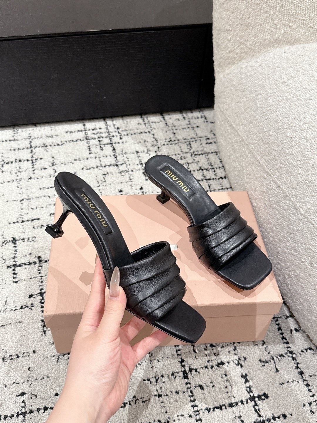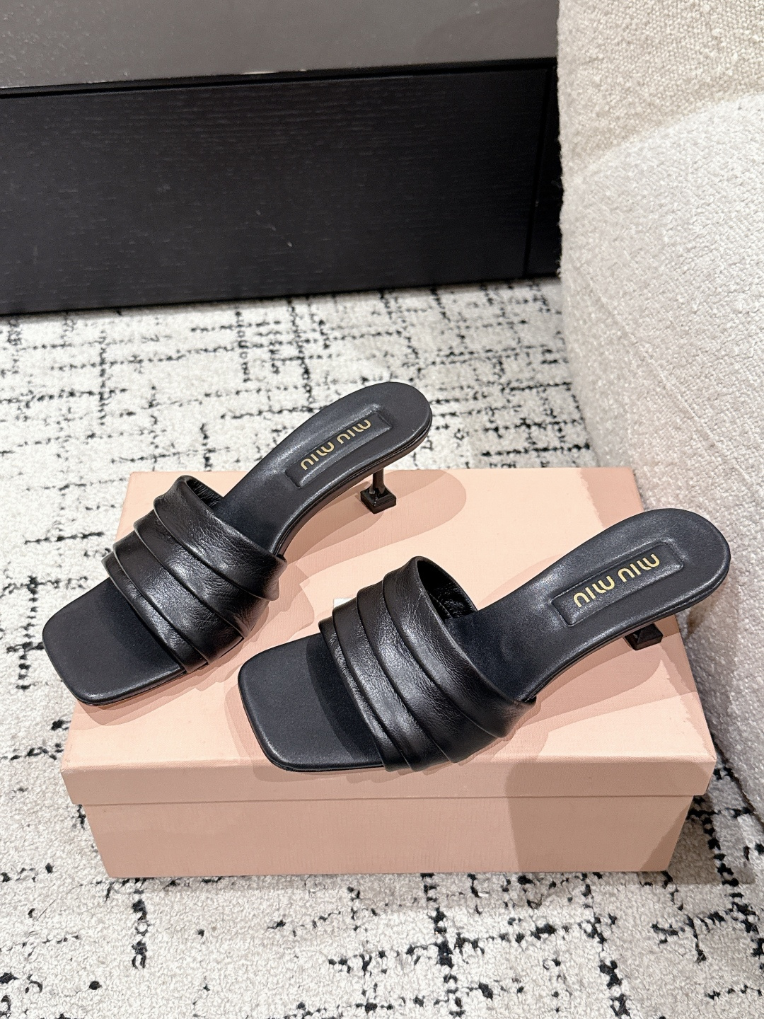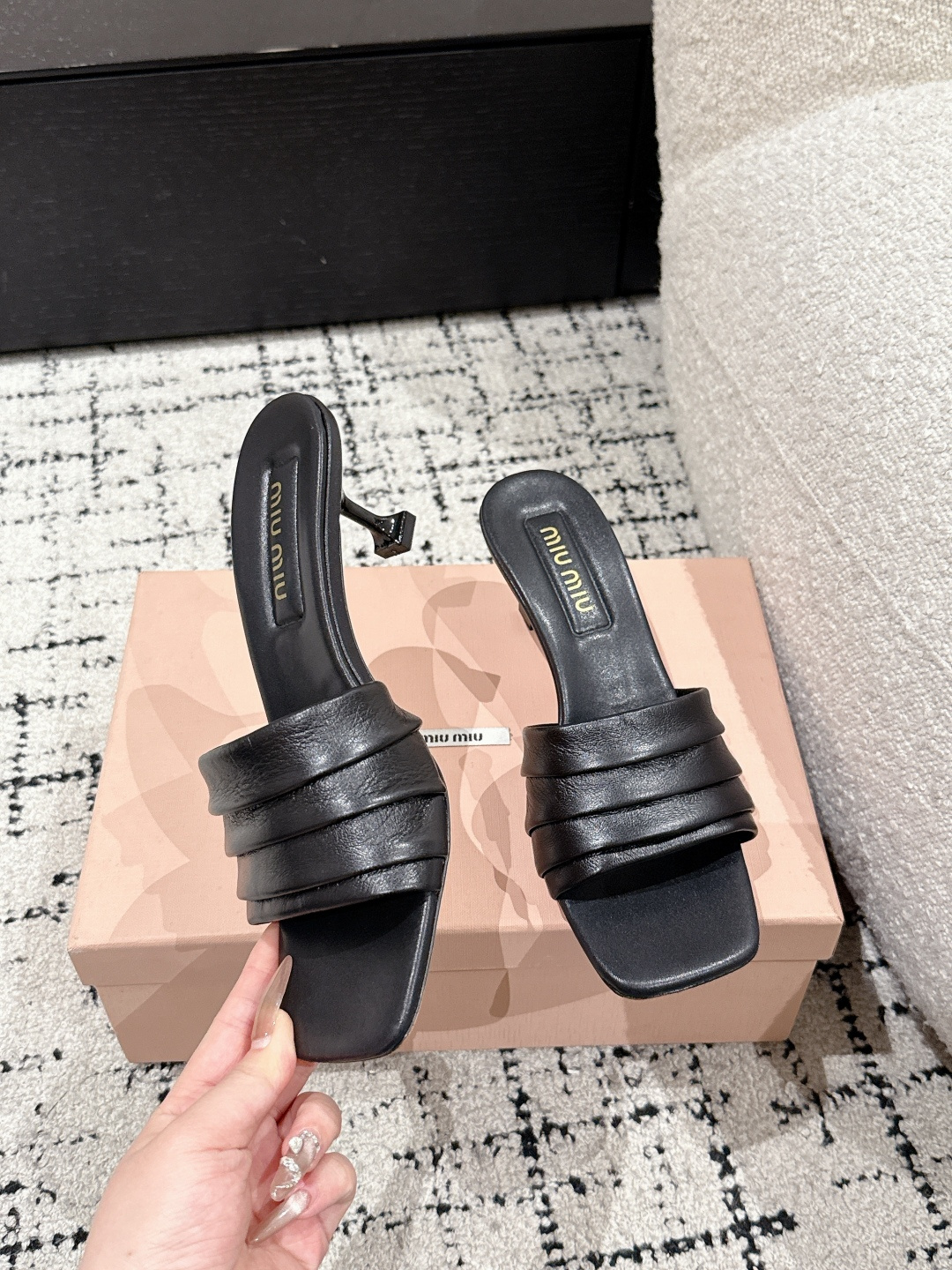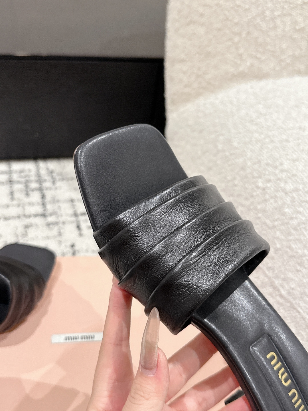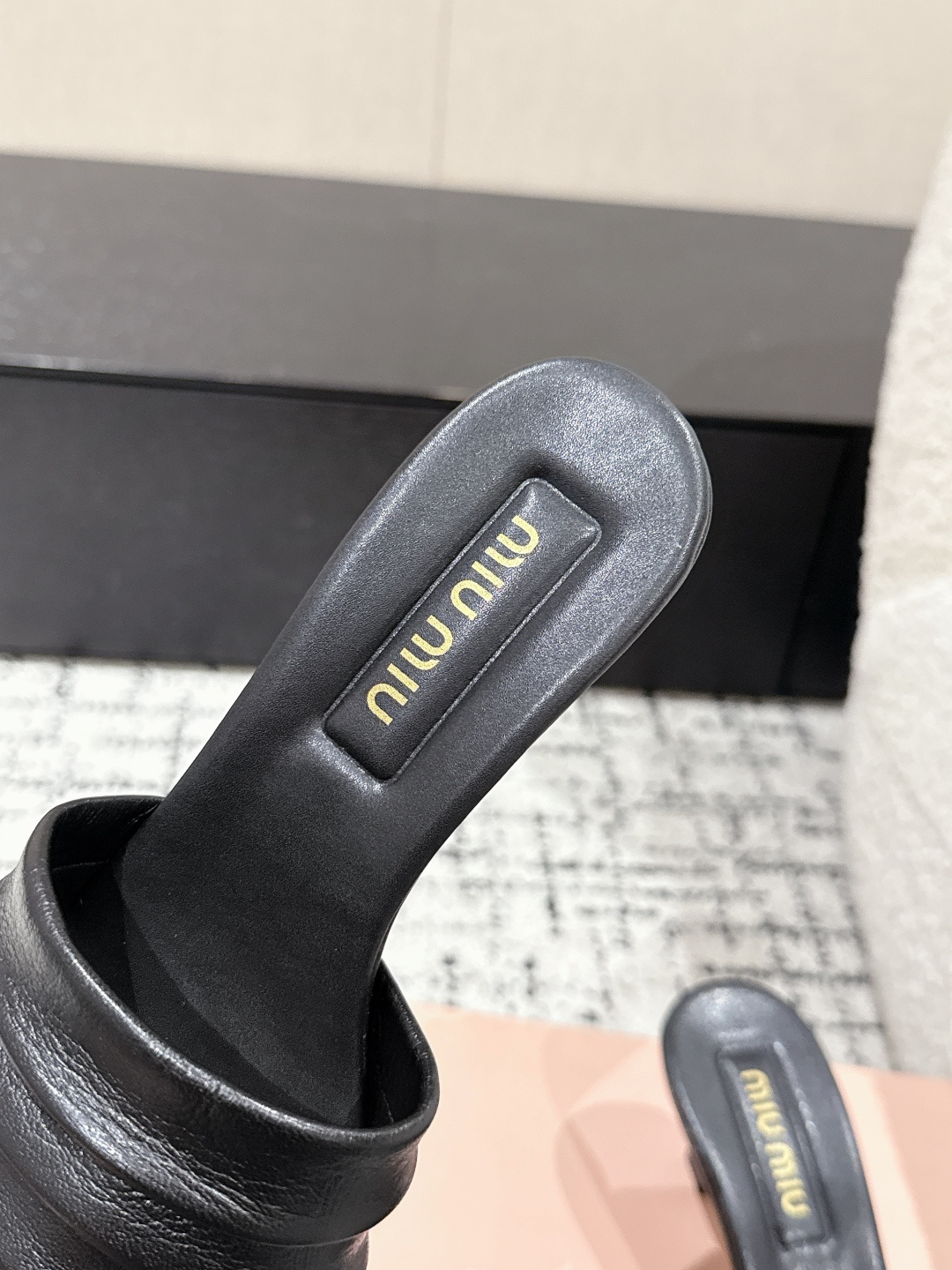 Miu Miu 25ss summer flat denim leather slippers. Handmade with cloud heel design. Upper: denim/leather, lining: leather, sole: Italian handcrafted leather. Sizes 35-40.