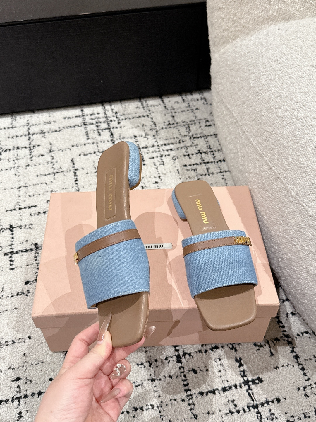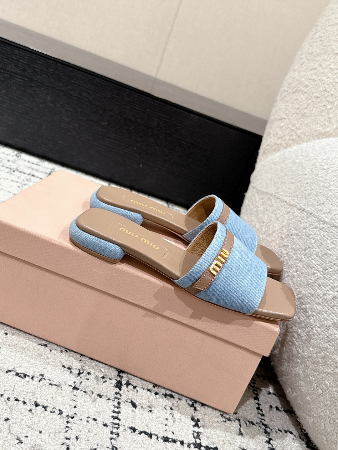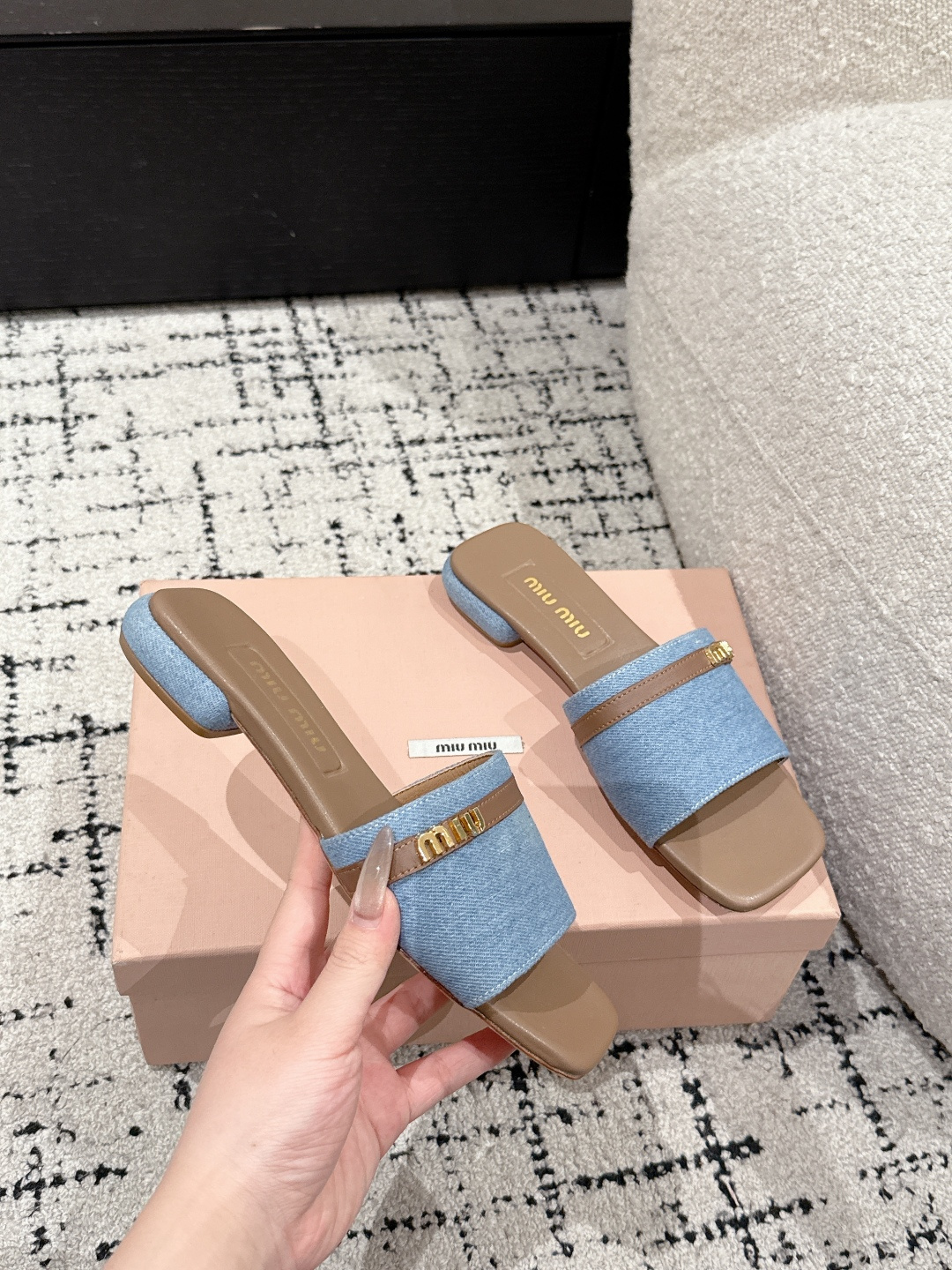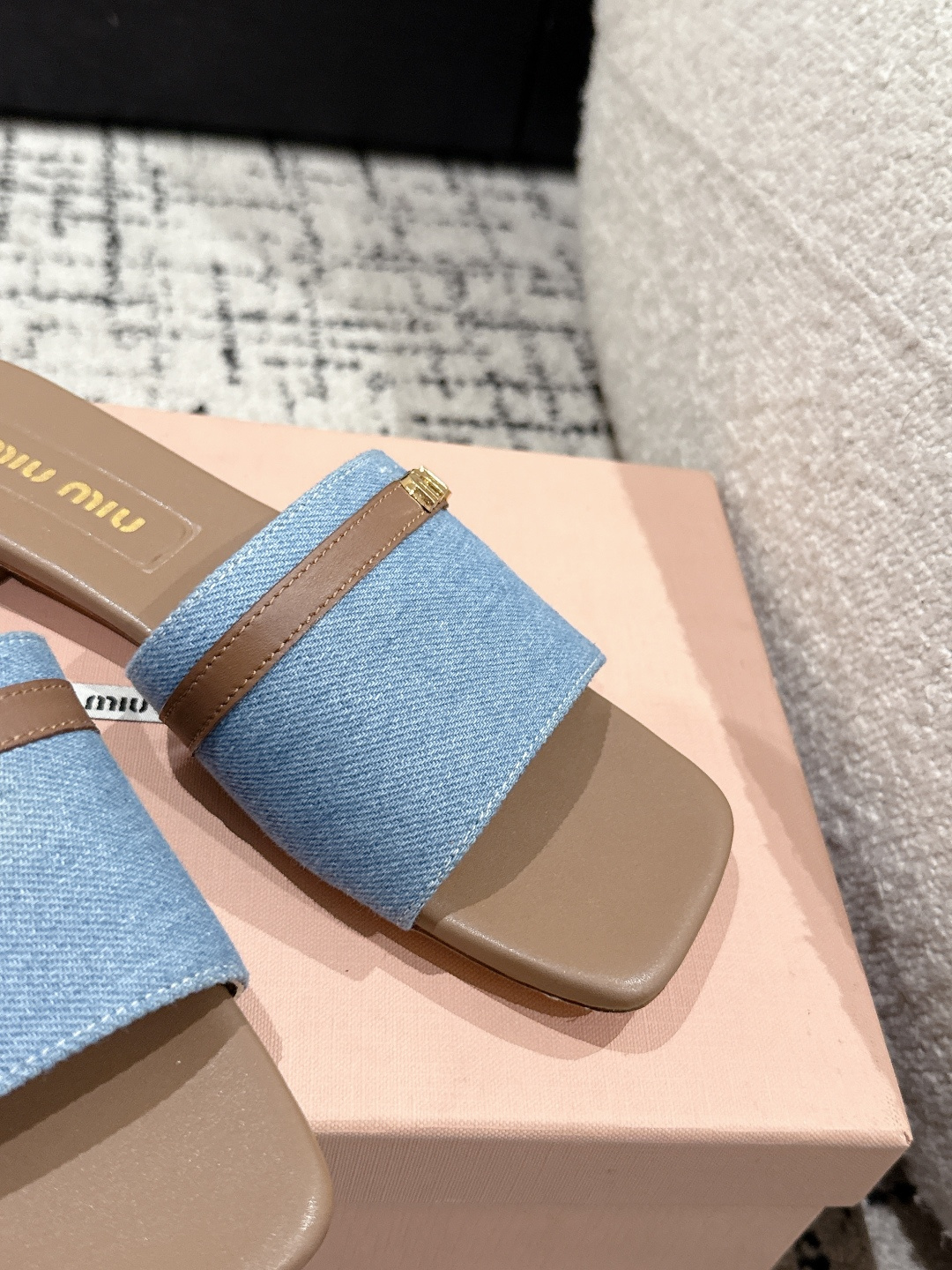 Miu Miu 25ss Latest Summer Flat Denim Lambskin Sandals