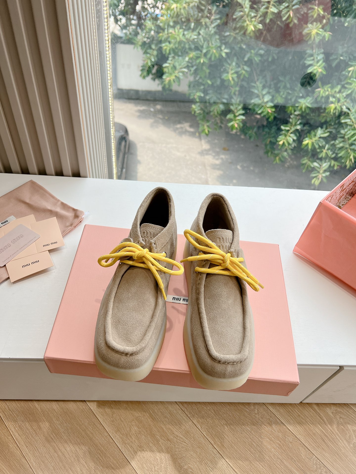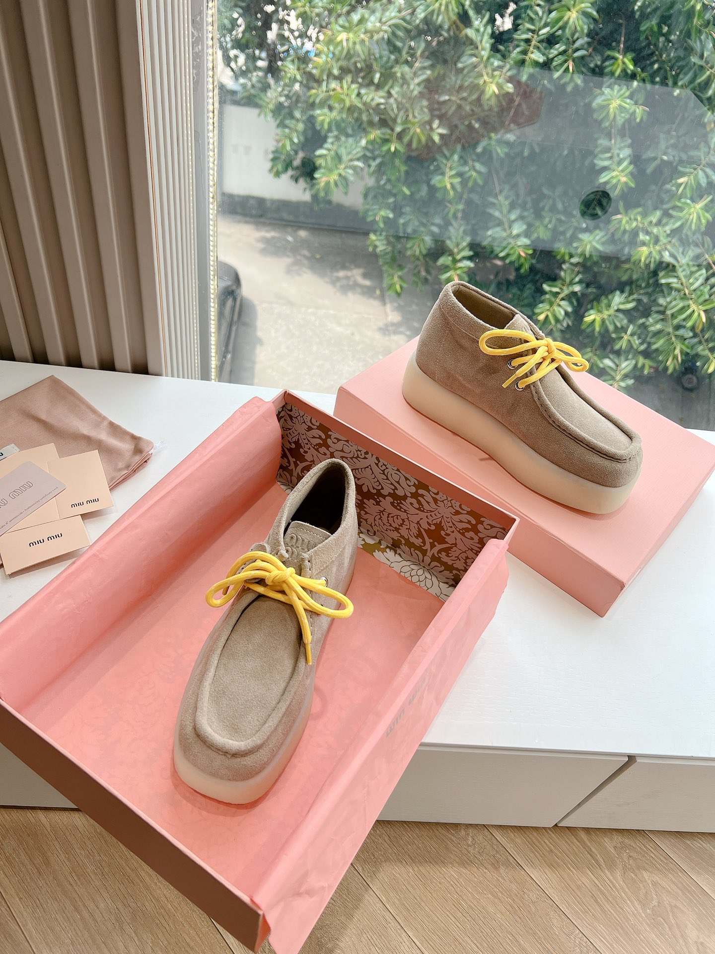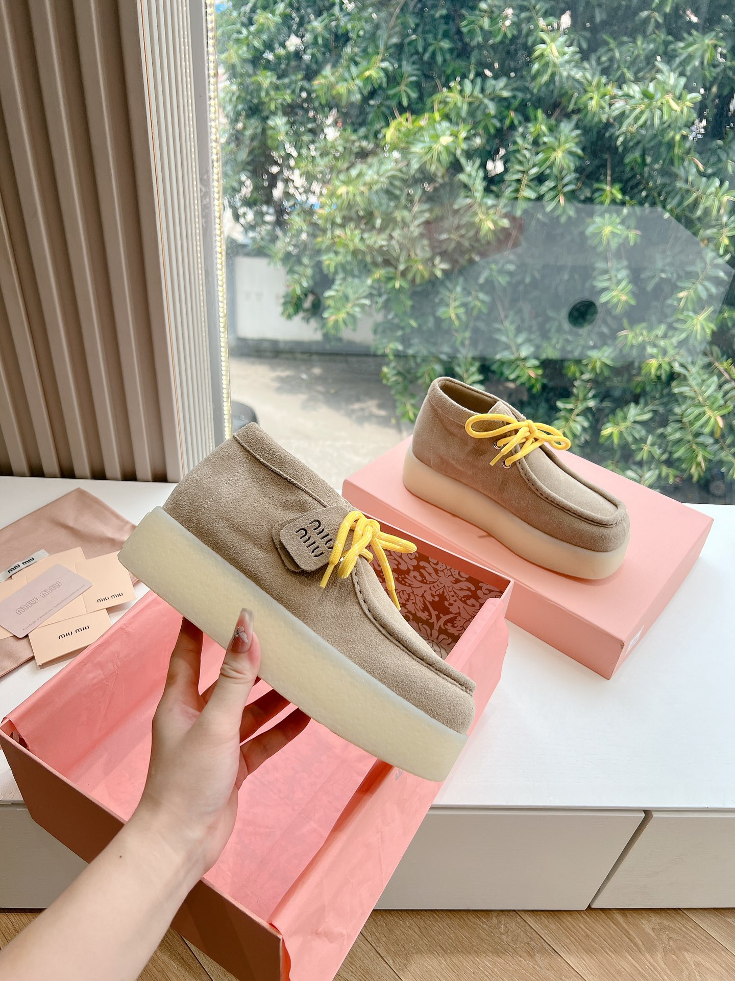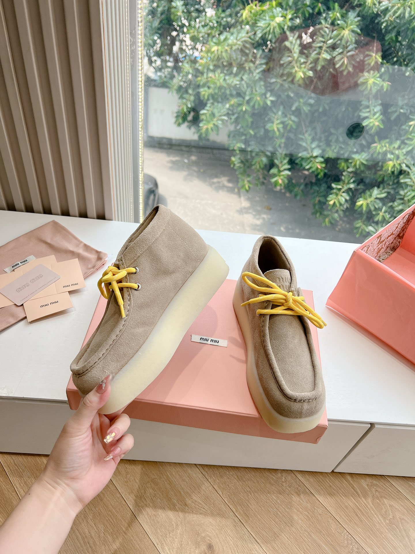 MiuMi* Miu Miu Autumn/Winter New Style Platform Boots Miu Miu's new design this year, the designer is about to hang! So good-looking, not only adds height but the sole isn't heavy either. These shoes are highly recommended to try on; they're incredibly comfortable to wear. There's a small nameplate with the Miu Miu logo on the laces, adding a touch of liveliness. Feels like they can be worn all autumn.