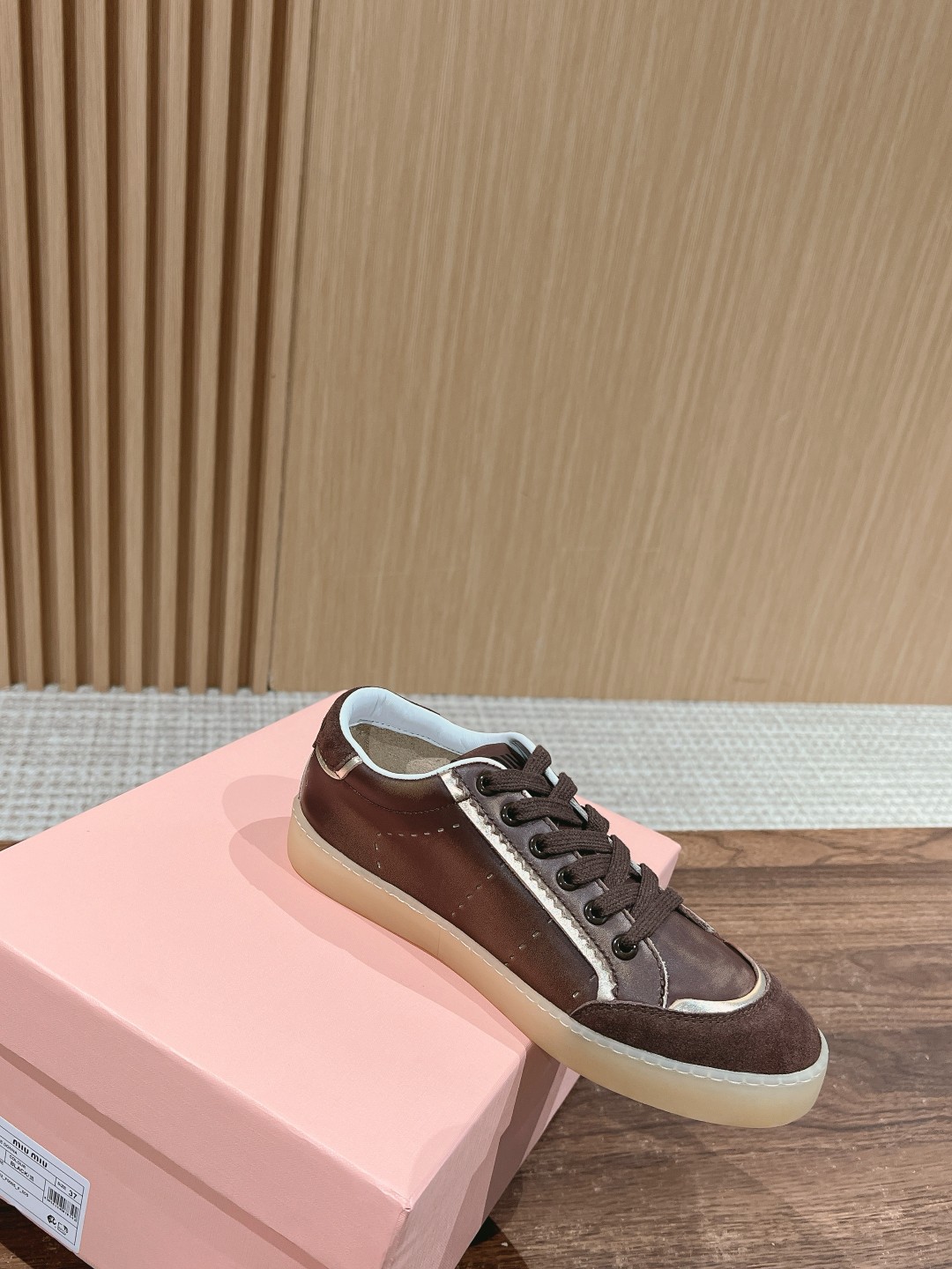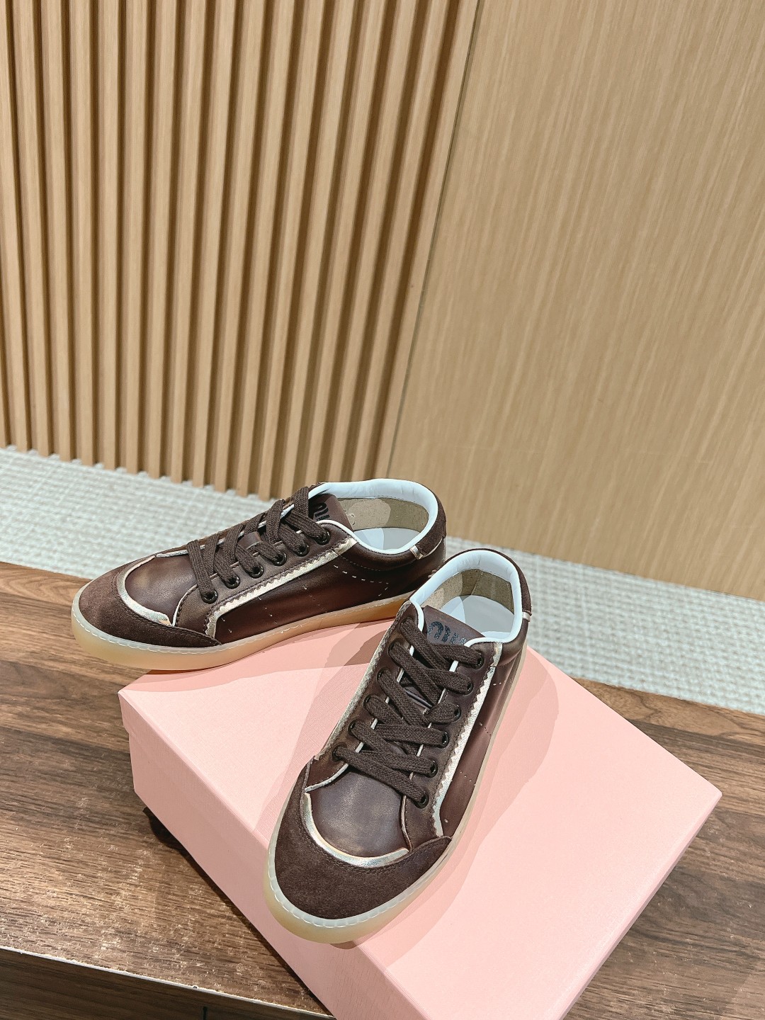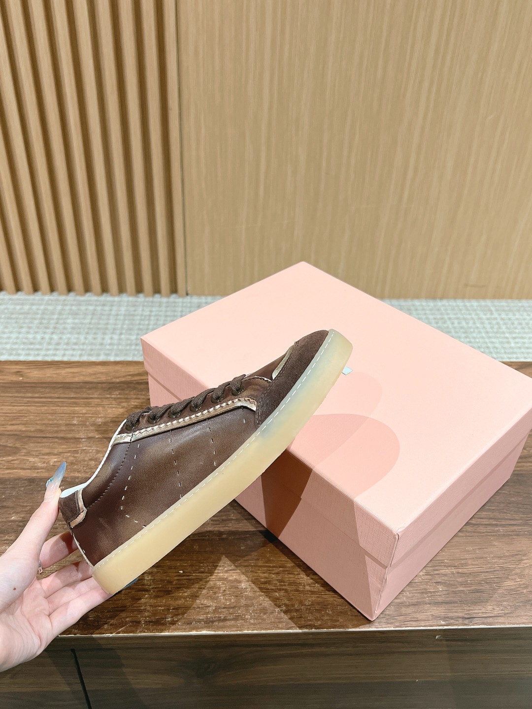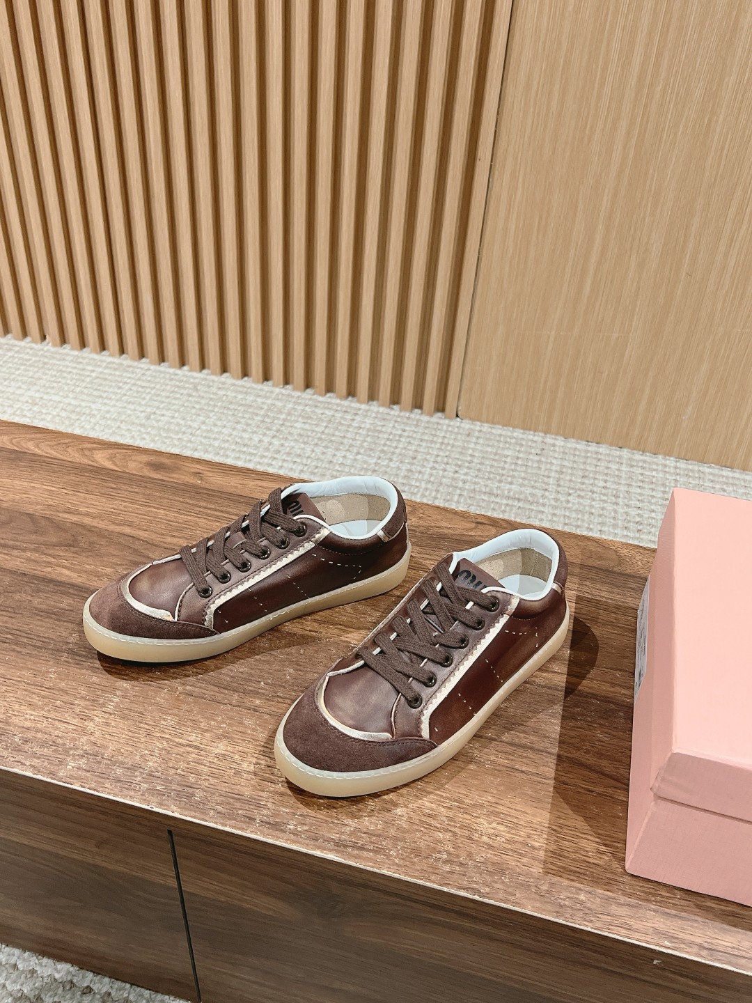 Miu Miu new vintage style dirty shoes, aged fashion, simple and elegant. Comfortable and versatile. Must-have for the year. Spring runway white sneakers, retro and stylish. Top leather, silk lining, original TPU sole. Sizes 35-40.