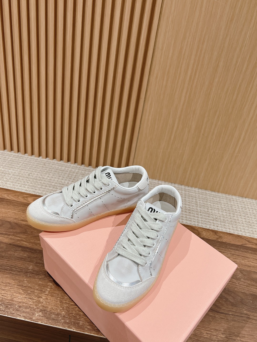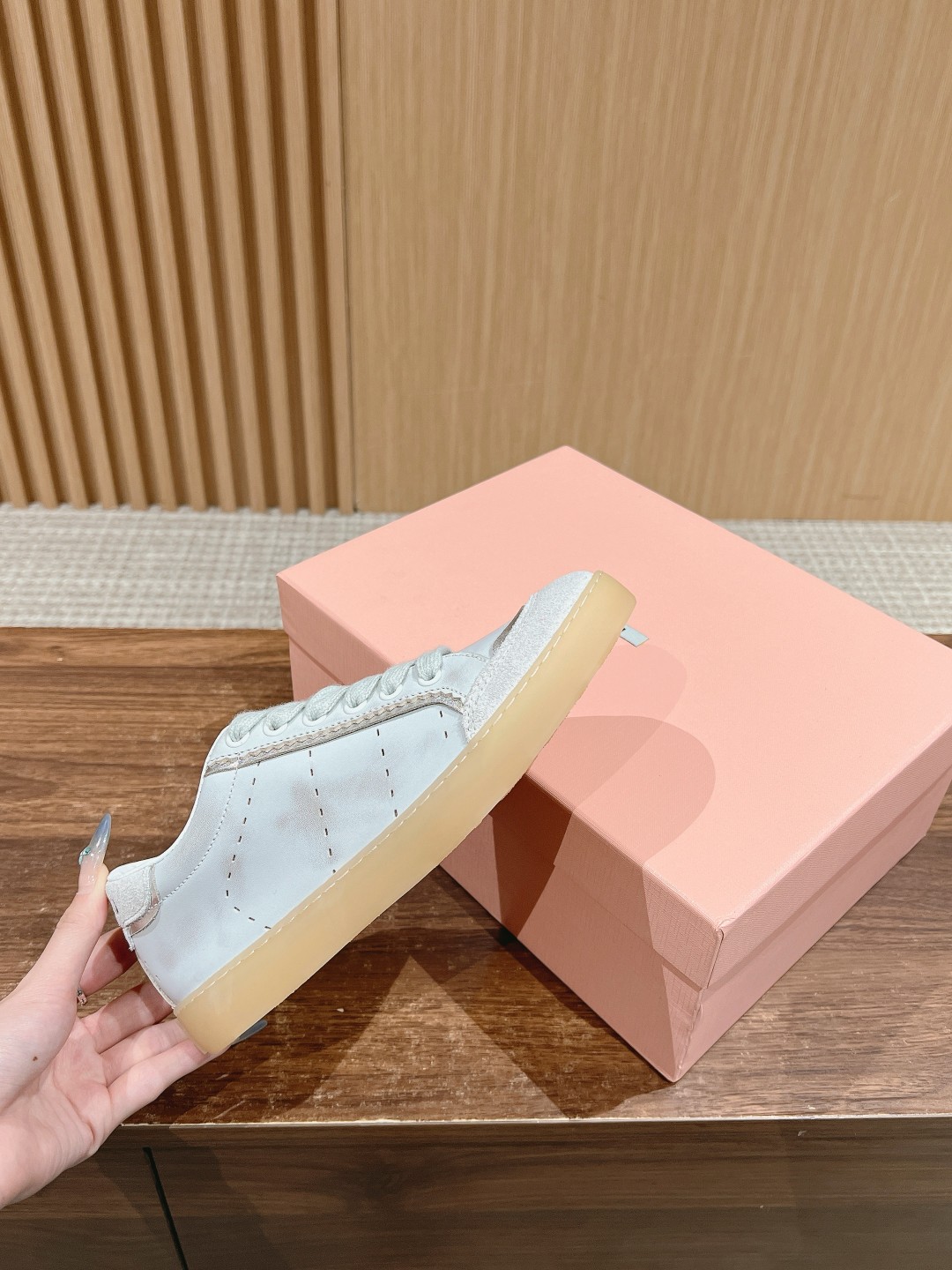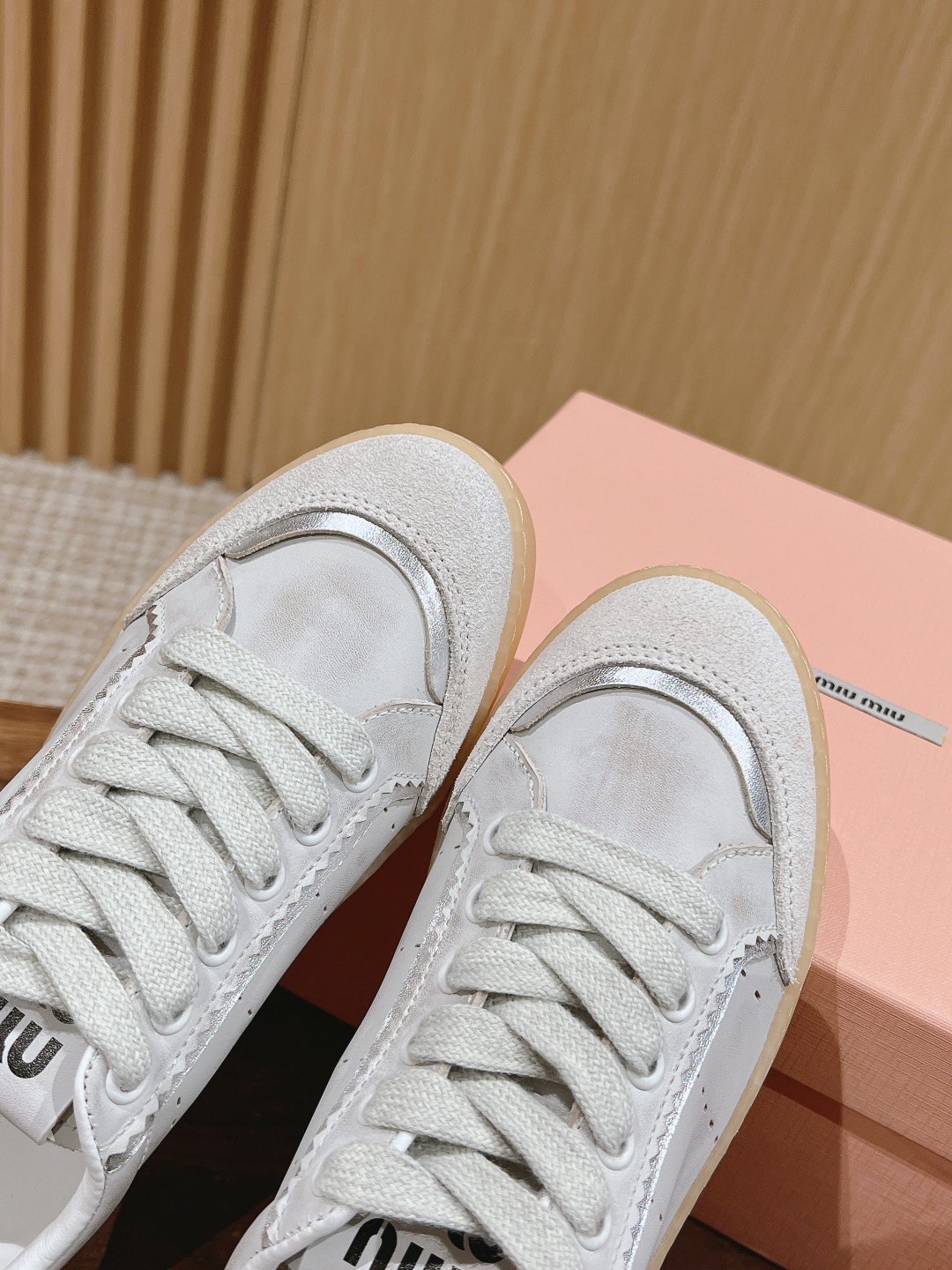 MiuMiu new vintage-style sneakers, aged design, simple and elegant. Comfortable, versatile. Top grain leather, silk lining. Sizes 35-40.