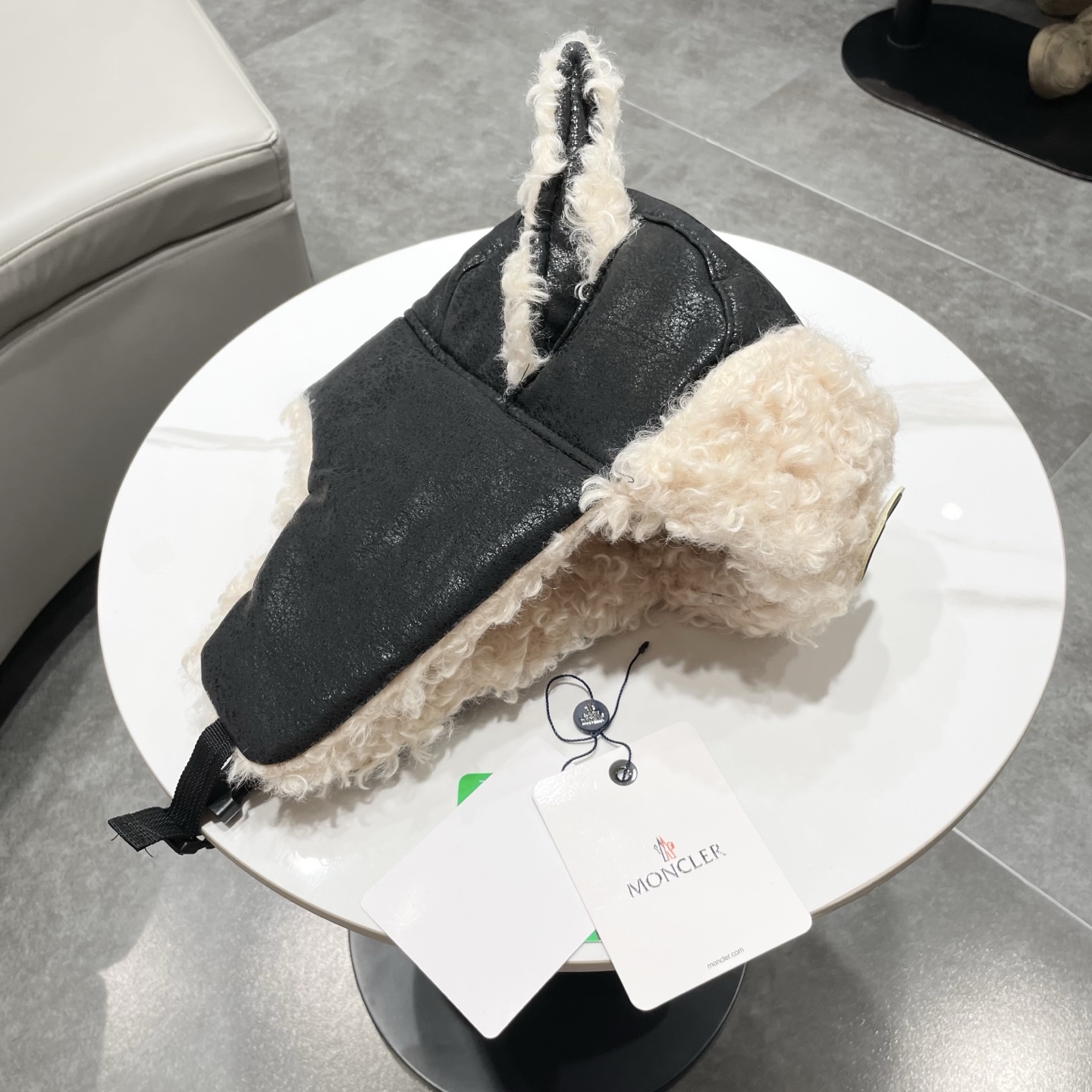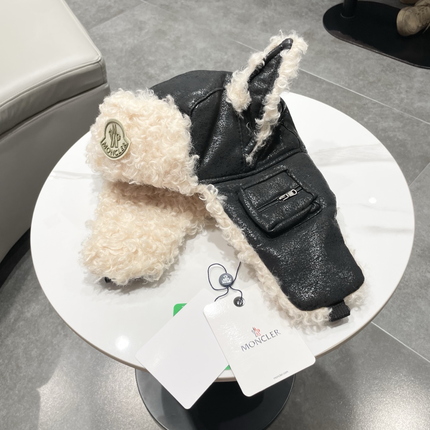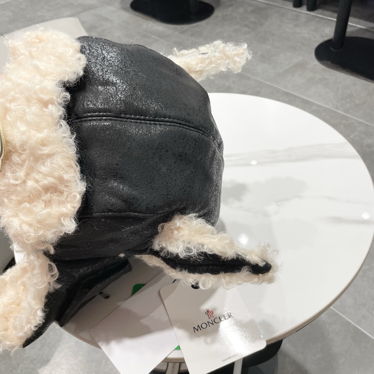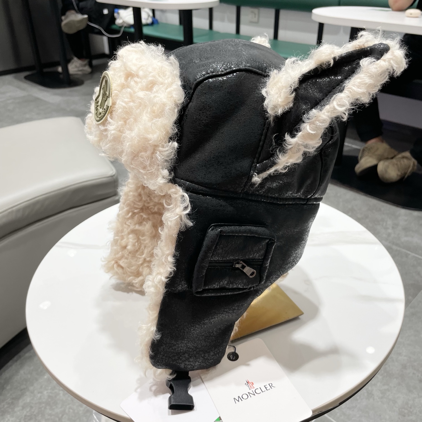 Moncler Cold Protection for Men and Women Large Head Lei Feng Style Fleece-Lined Hat Thickened Leather Northeast Ear Hat Wrap Outdoor Warm Plush Hat Winter