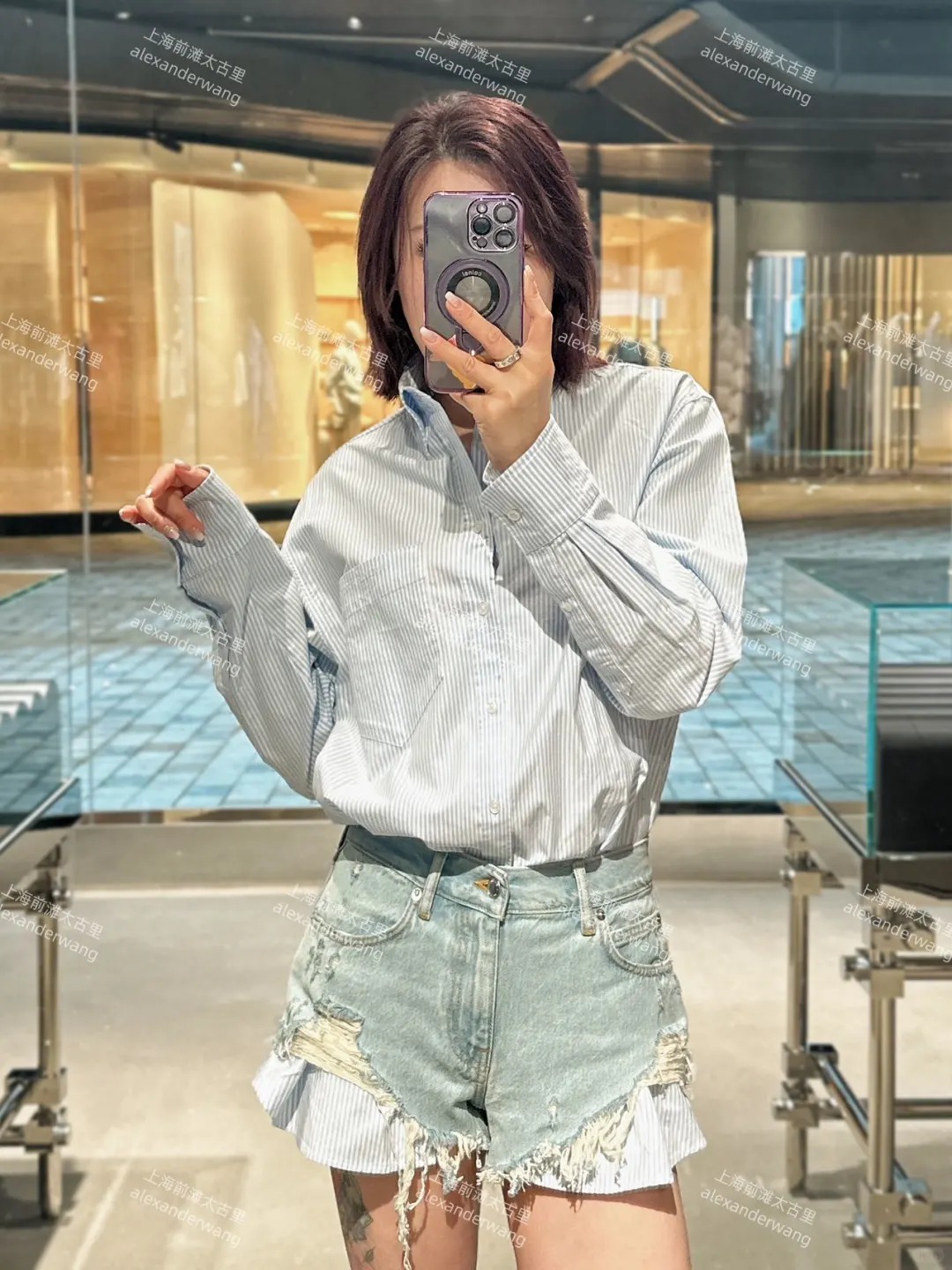 New style! Latest AW 25NEW striped shirt spliced with denim shorts jumpsuit. Sizes: SML.