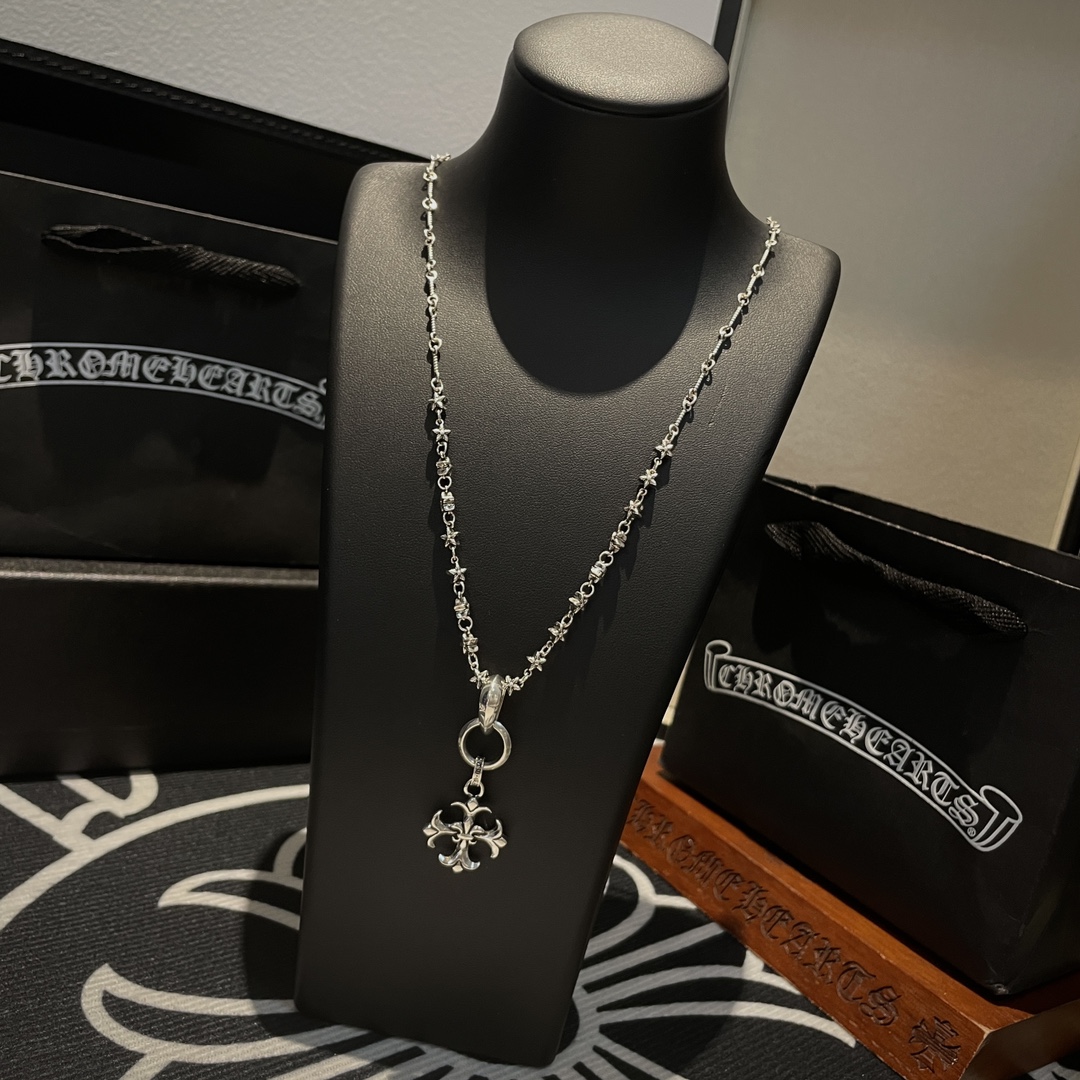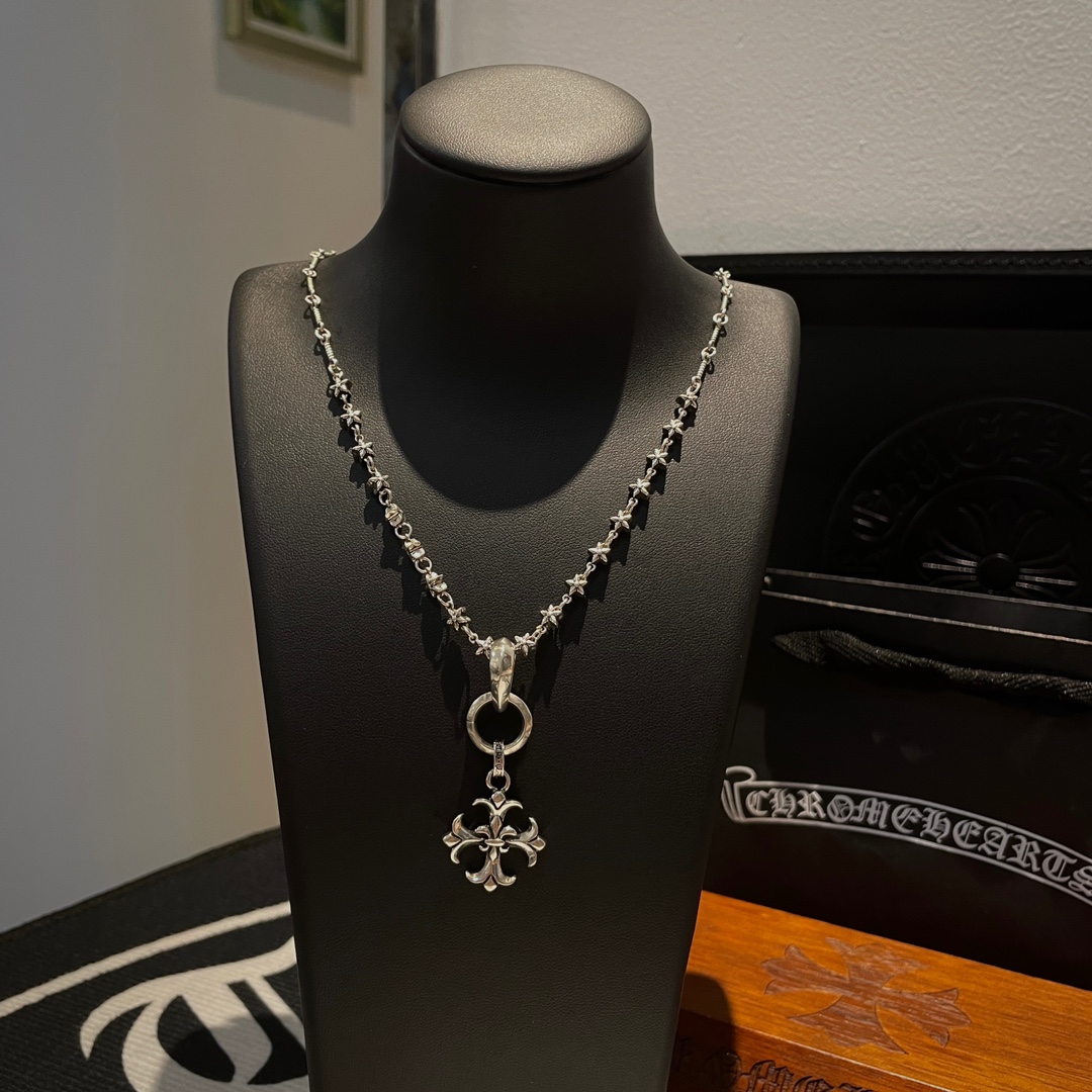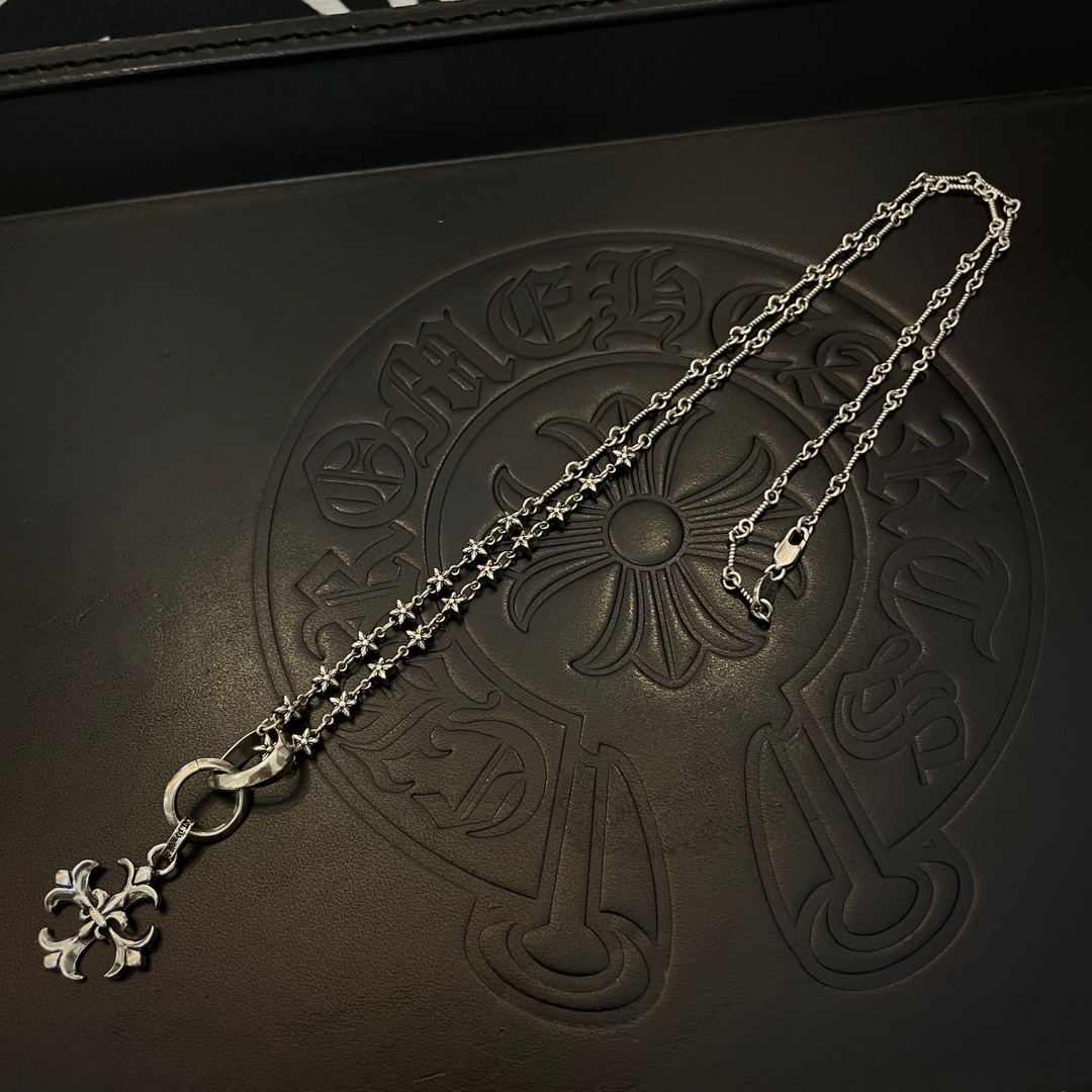 New Chrome Hearts necklace with classic star and cross pendant, vintage design, unisex, retro punk style.