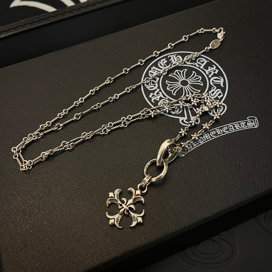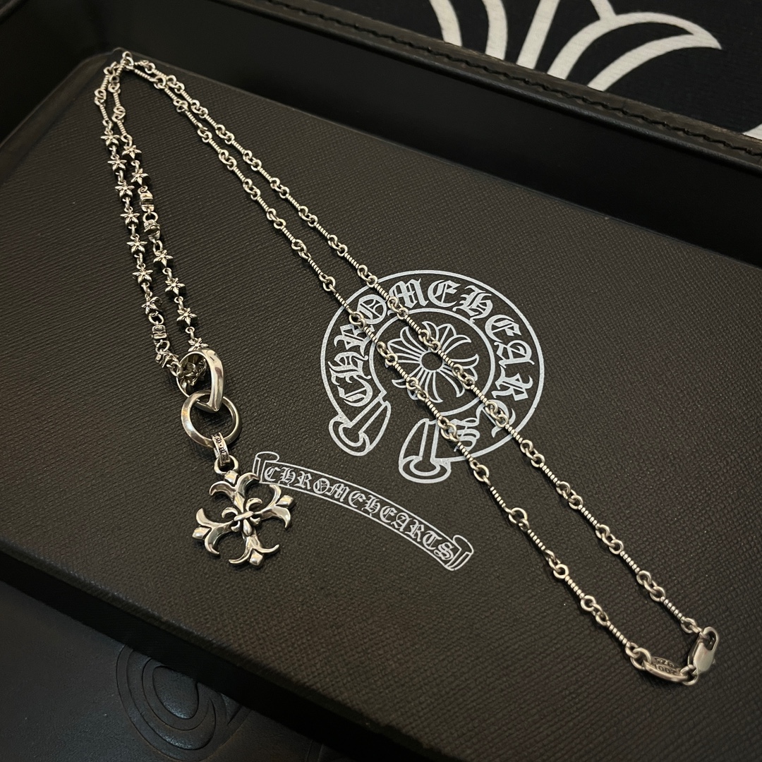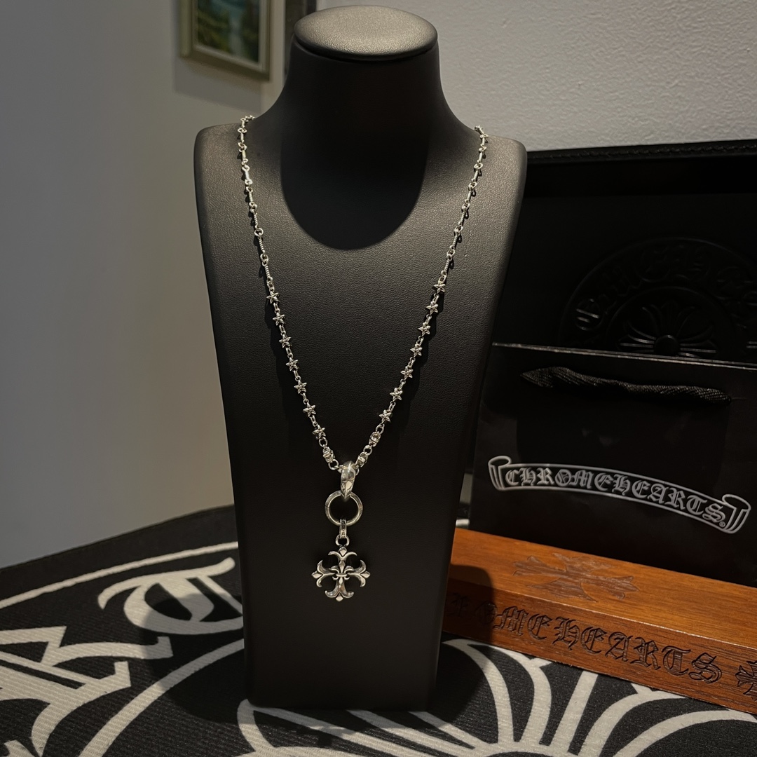 New Chrome Hearts necklace with classic star and cross pendant, vintage design, unisex, retro punk style.