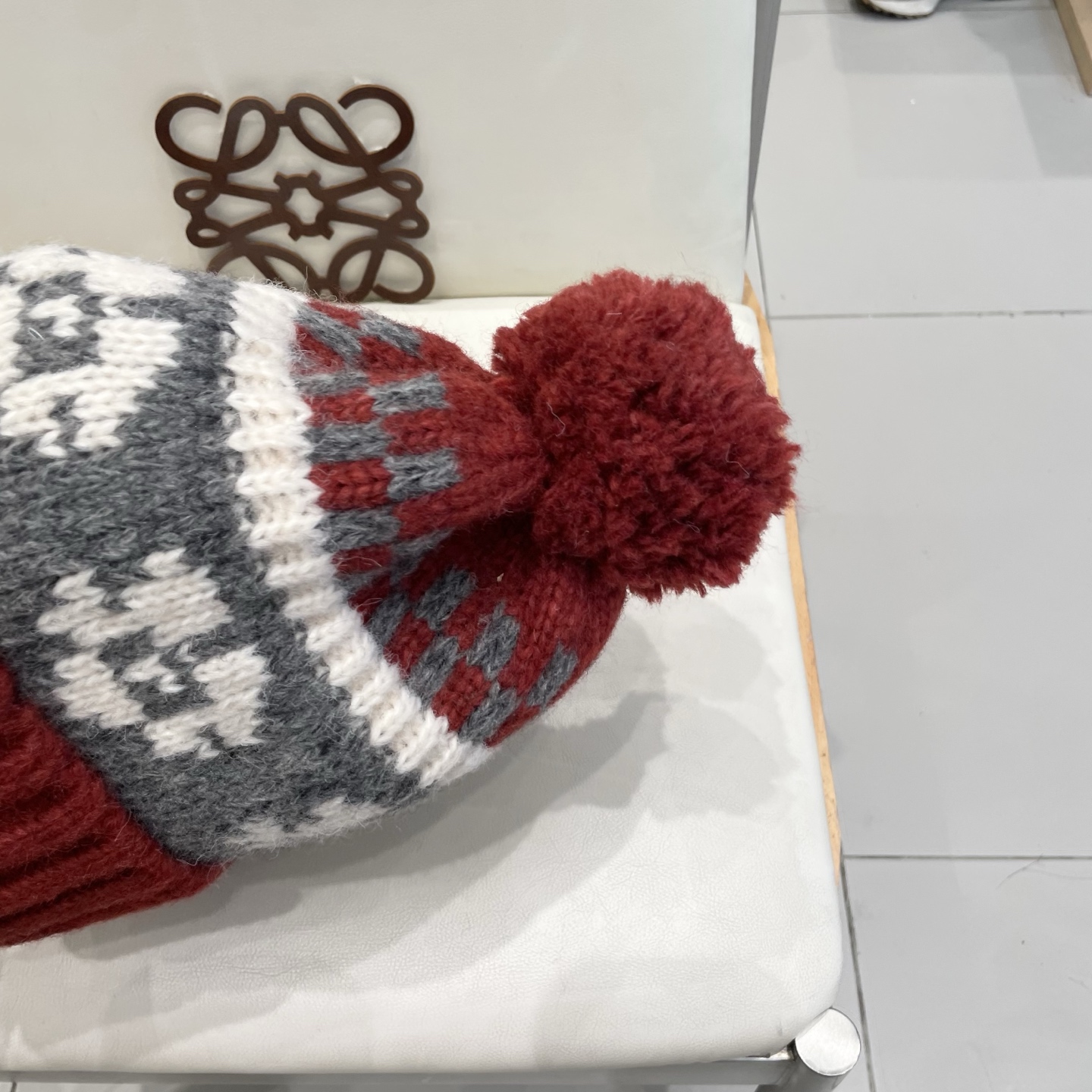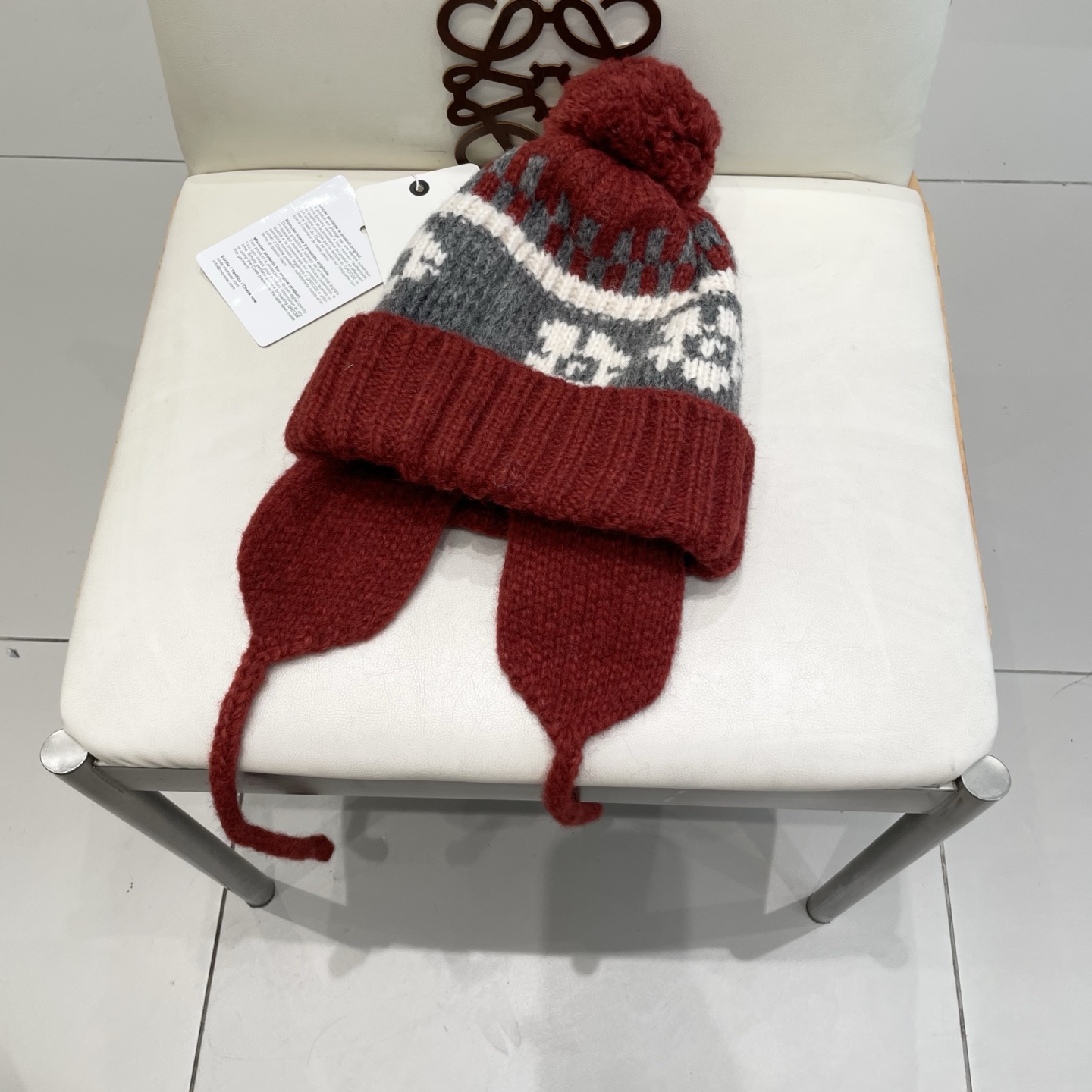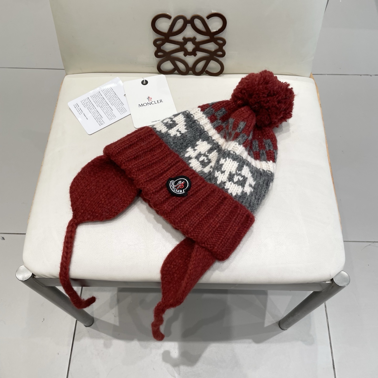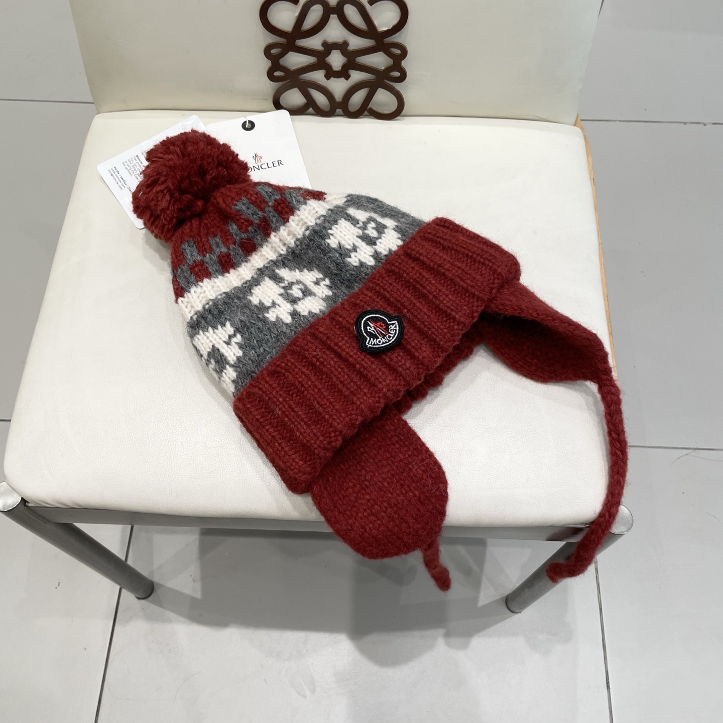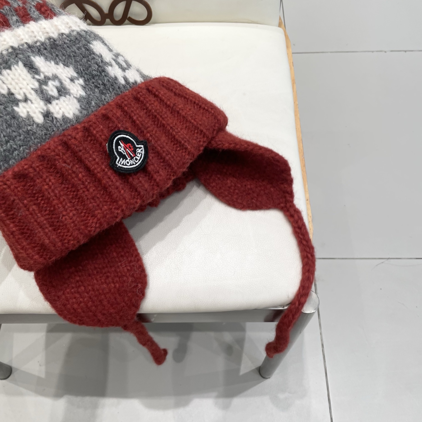 Original Moncler Nordic-style knitted hat with ear protection and braided pattern.