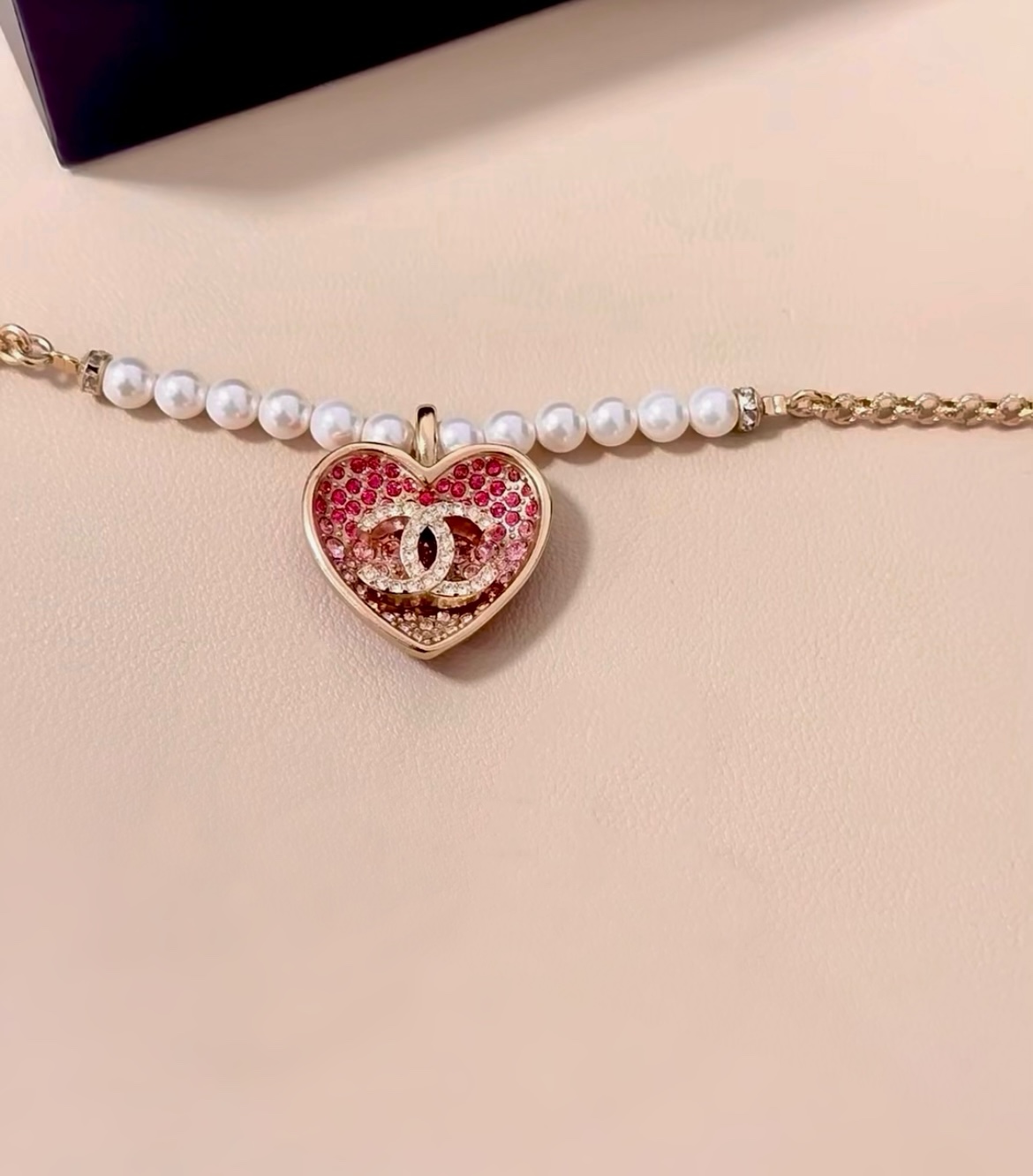 Little Fragrant Gradient Pink Full Diamond Peach Heart Necklace/Bracelet The lively water diamonds refract a shimmering light of varying depths The soft pink is very girly and vibrant