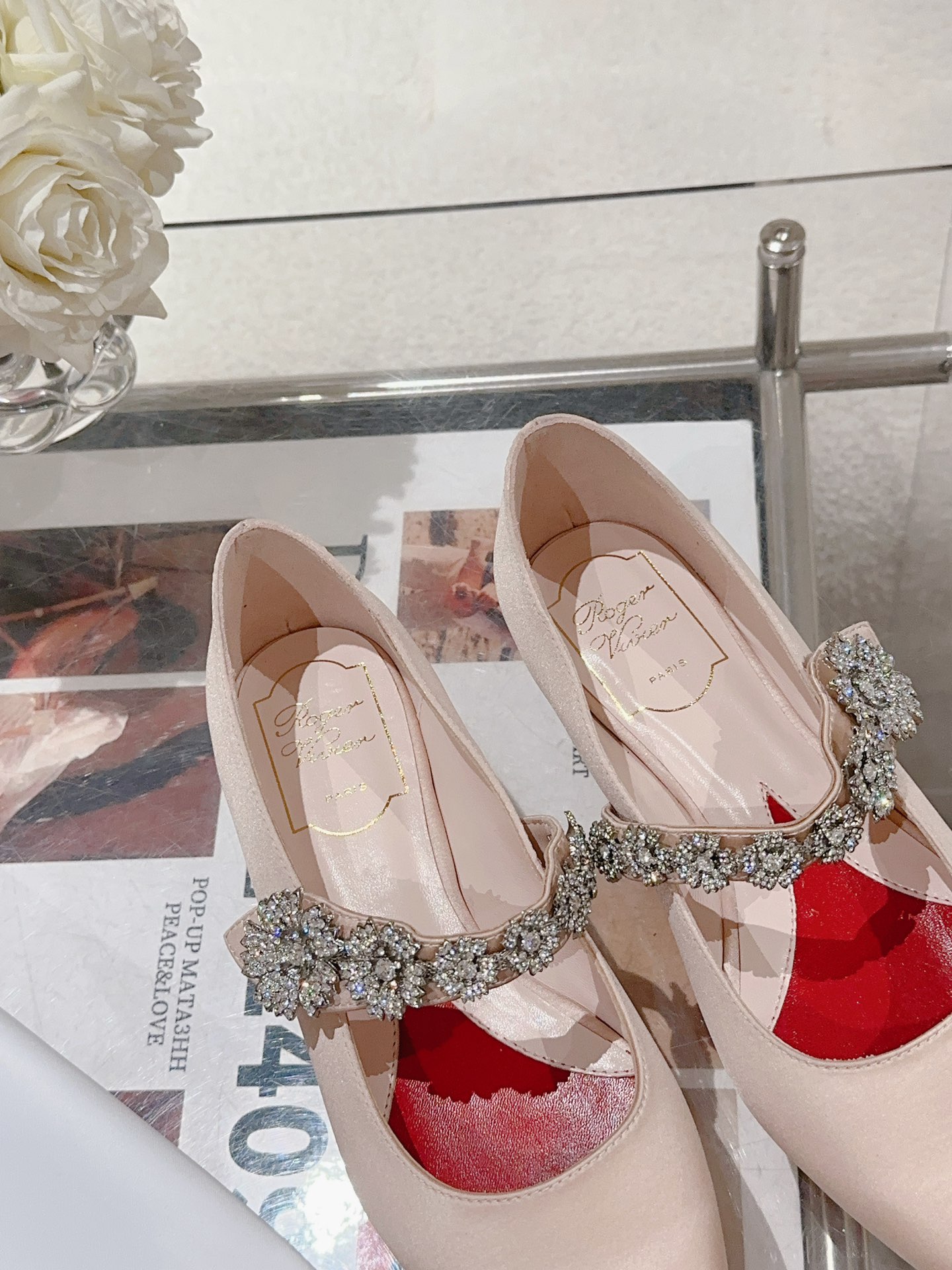 Roger Vivier 2023 SS silk pointed shoes with crystal buckle. Available in flat, 3.5cm low heel, 8.5cm high heel. Sizes 35-39.