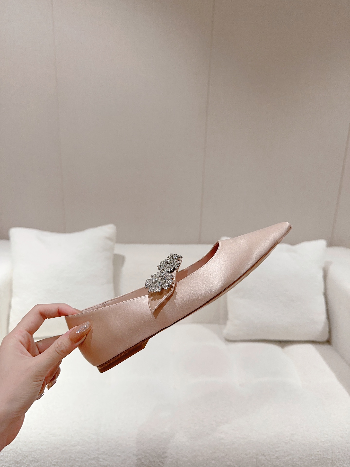 🌺 Boutique new snowflake crystal buckle silk pointed-toe flats series luxury new arrival〰