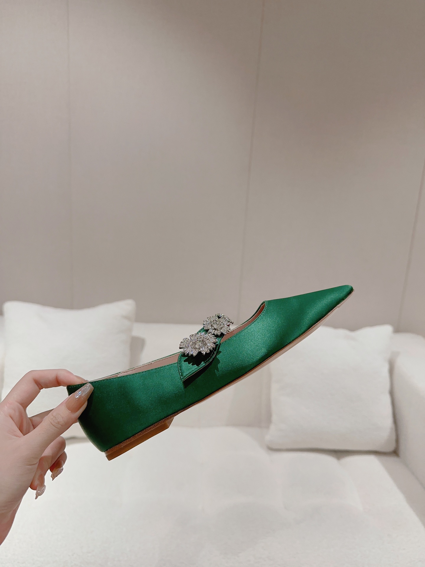 🌺 Boutique new snowflake crystal buckle silk pointed-toe flats series luxury new arrival〰