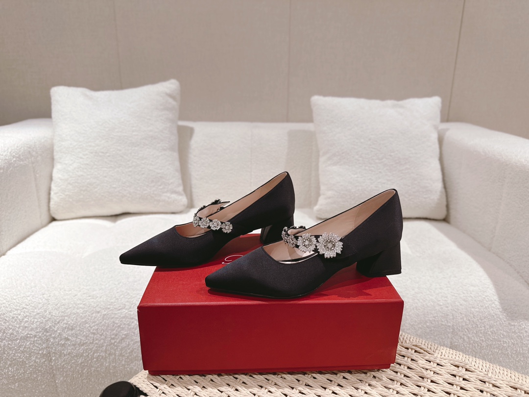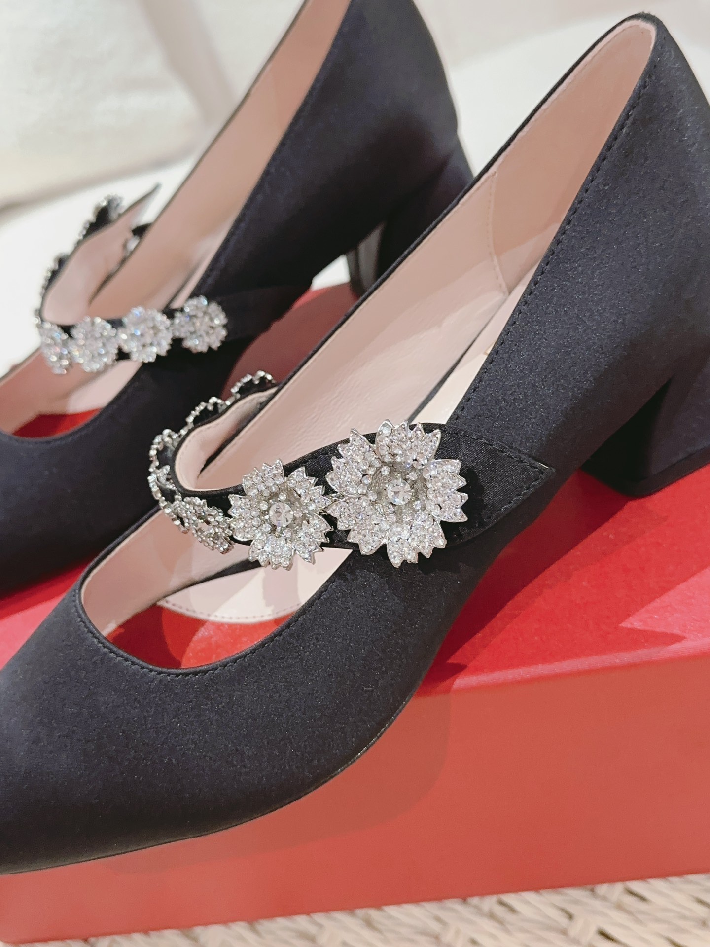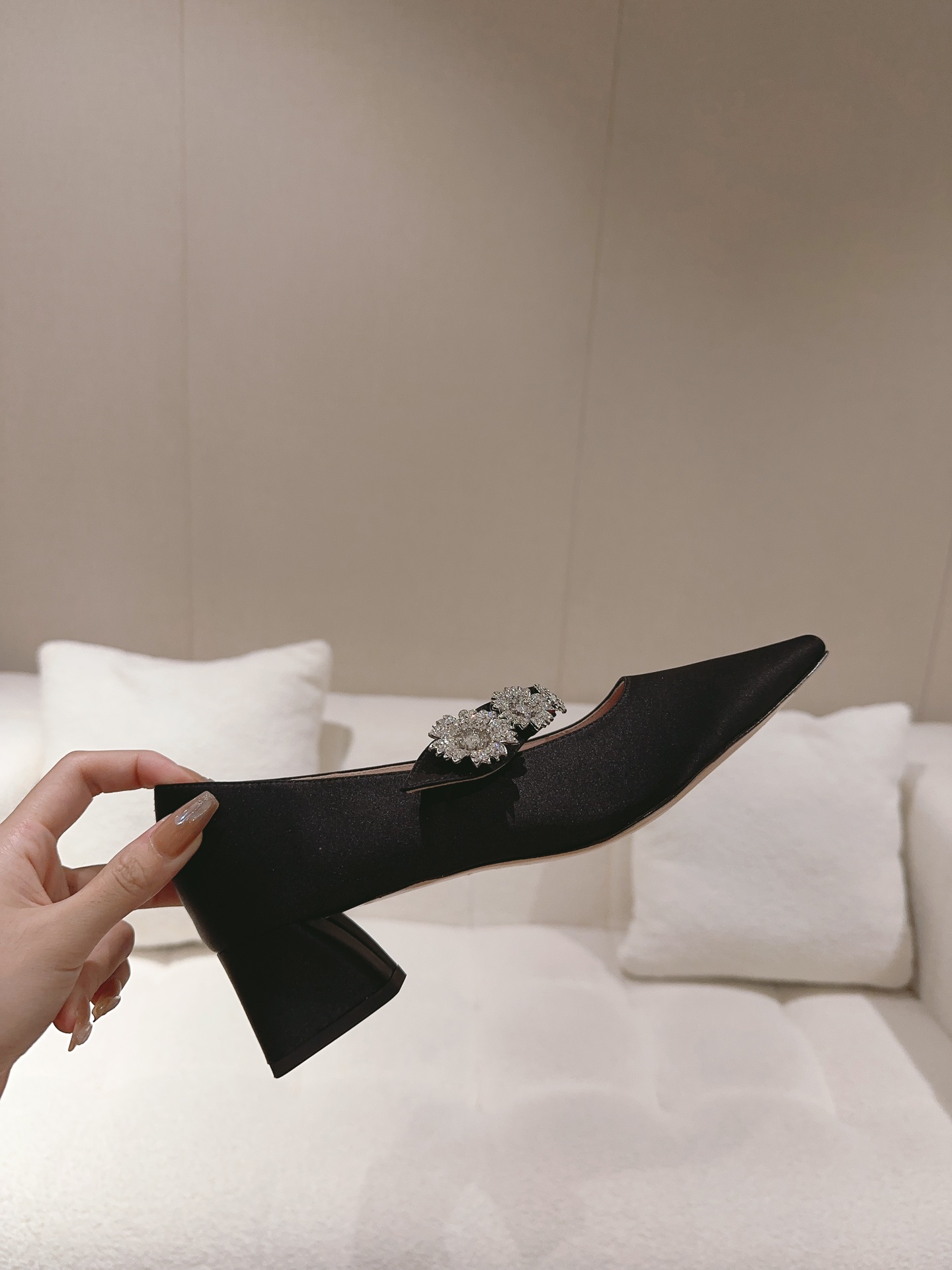 Roger Vivier 2023 SS silk pointed shoes with crystal buckle. Available in flat, 3.5cm low heel, 8.5cm high heel. Sizes 35-39, custom orders for 34 & 40.