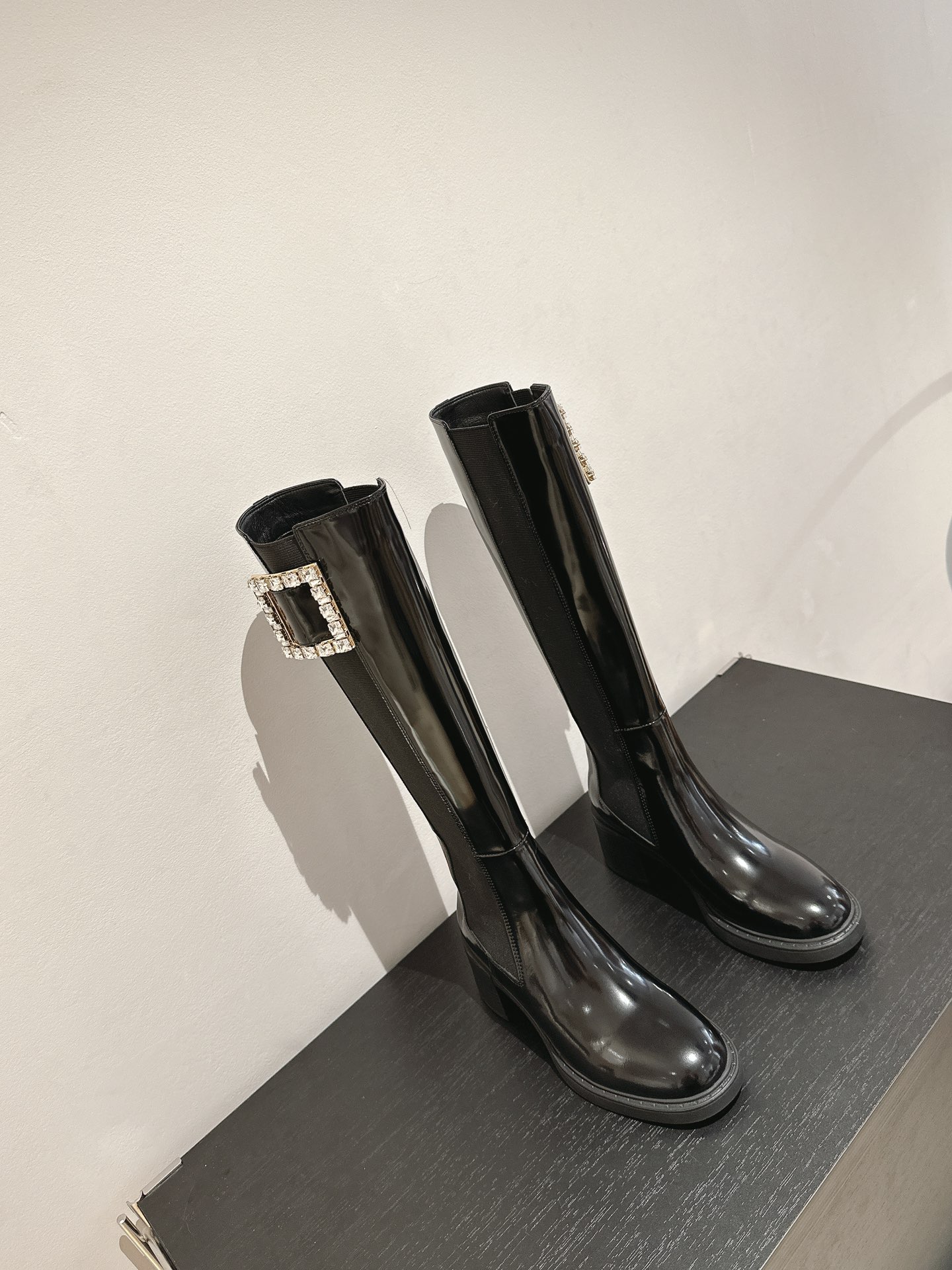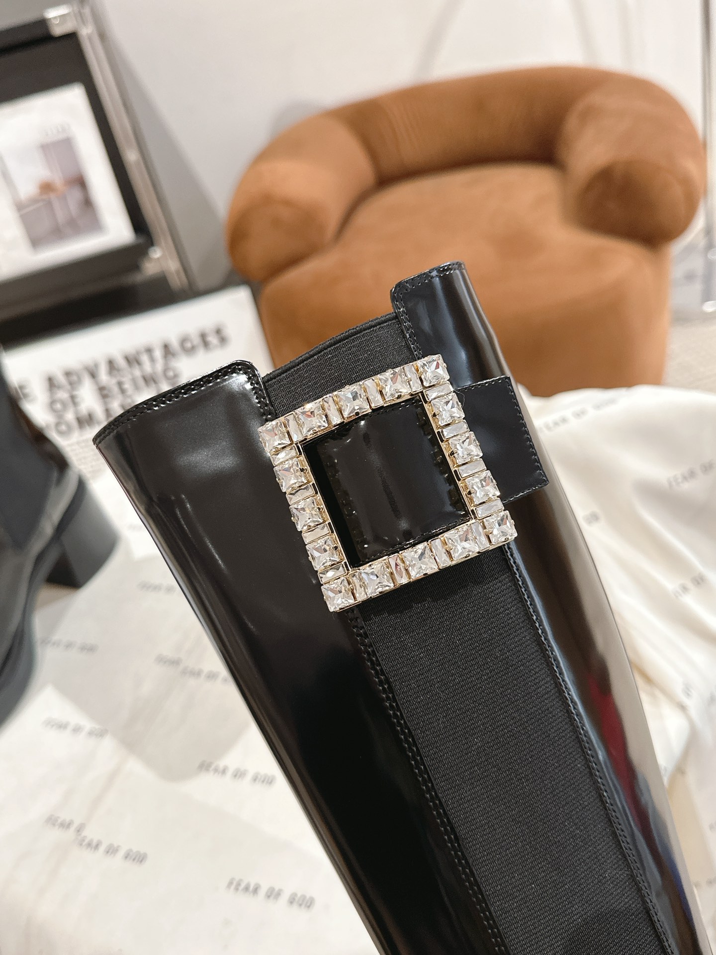 👗RogerVivier" | 2023 ss New counter model, same style as Da Mi Mi, square buckle chunky heel thick platform knight boots new arrival 〰 ★★★★★ Recognize the top-quality purchasing agent level! Produced by Taiwanese-funded factory! ◽Upper: Original custom waxed calfskin paired with ✘ original molded decorative buckle ◽Lining: Specially blended sheepskin lining ◽Outsole: Original molded anti-slip combination outsole ◽Shoe size: 35-39 (40 41 custom orders cannot be returned or exchanged) ◽Original counter full set of luxurious packaging
