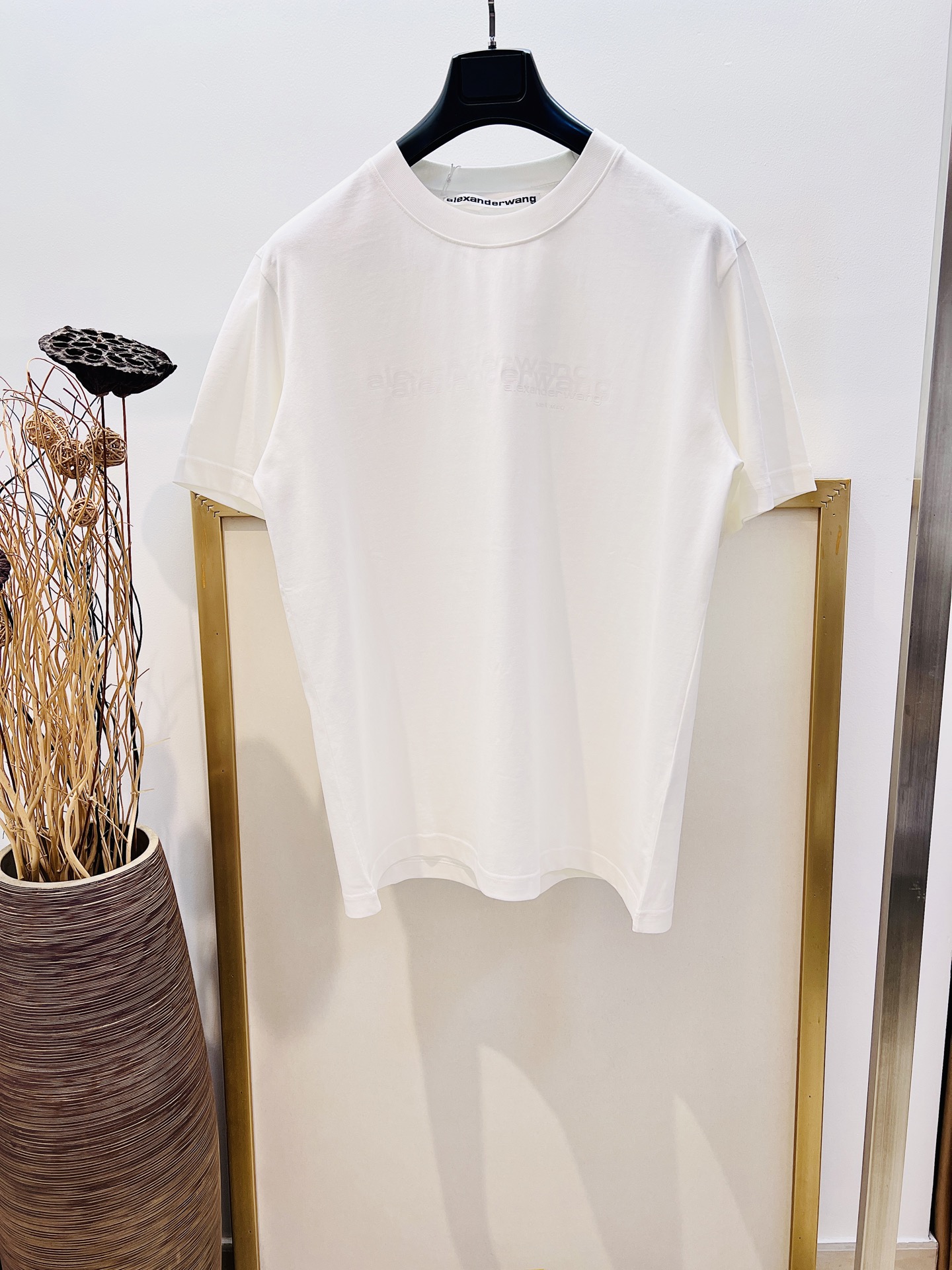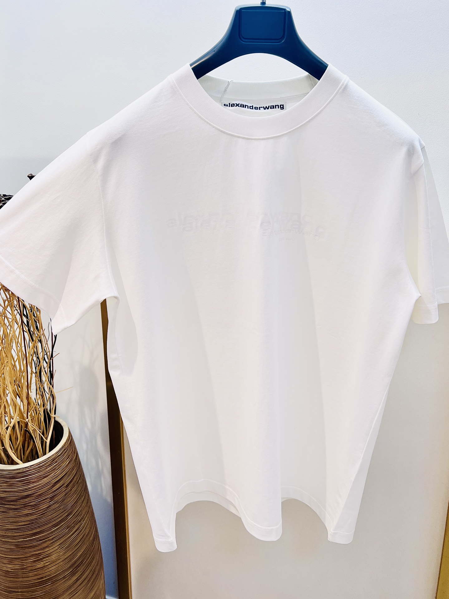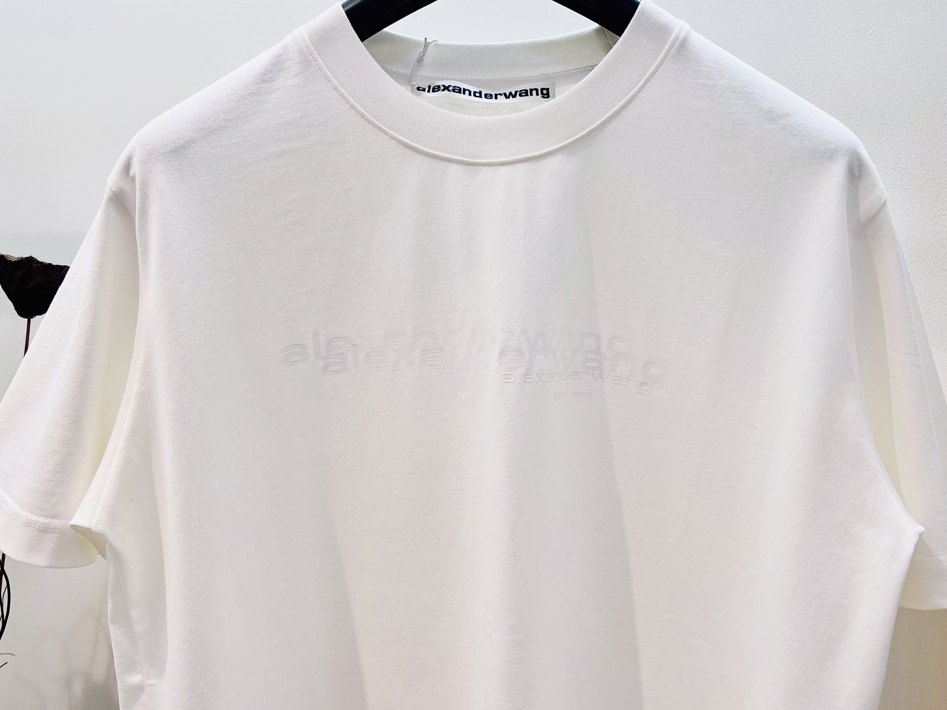 Alexander Wang cotton loose-fit with three-dimensional print and embroidered brand logo on the back, showcasing a casual and unrestrained fashion style. This T-shirt is so timeless that I could wear it forever—classic T-shirts never go out of style. Love it, love it. The cut is so cool, and it pairs perfectly with leggings...