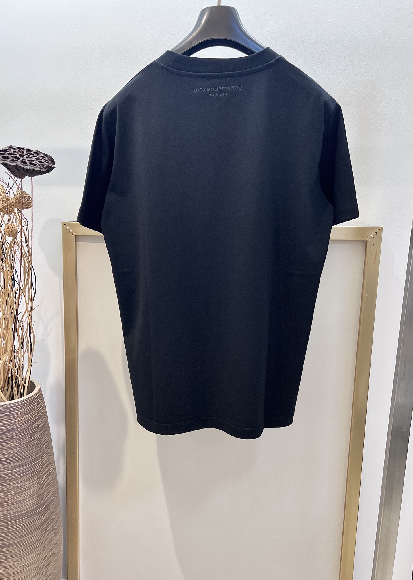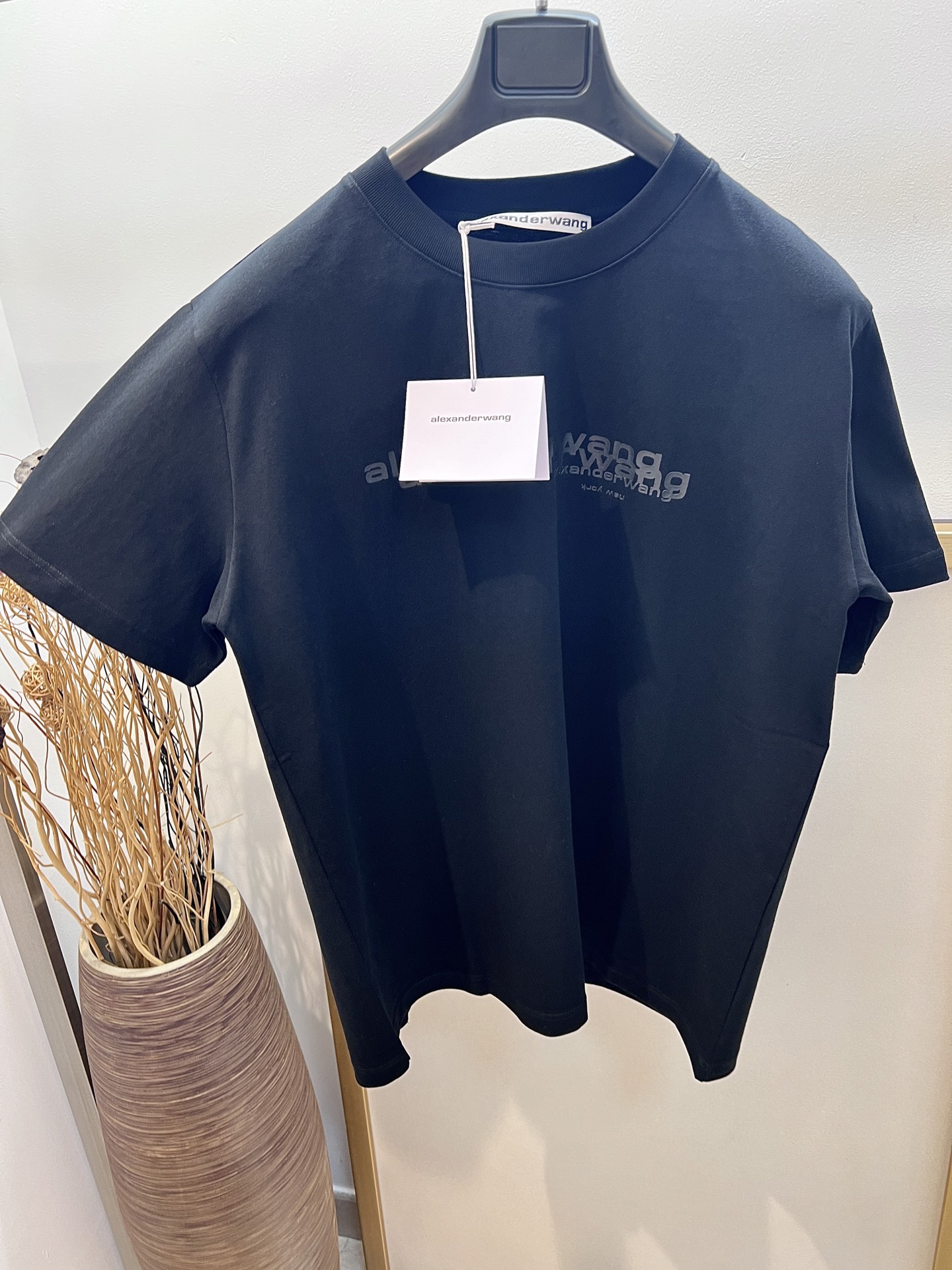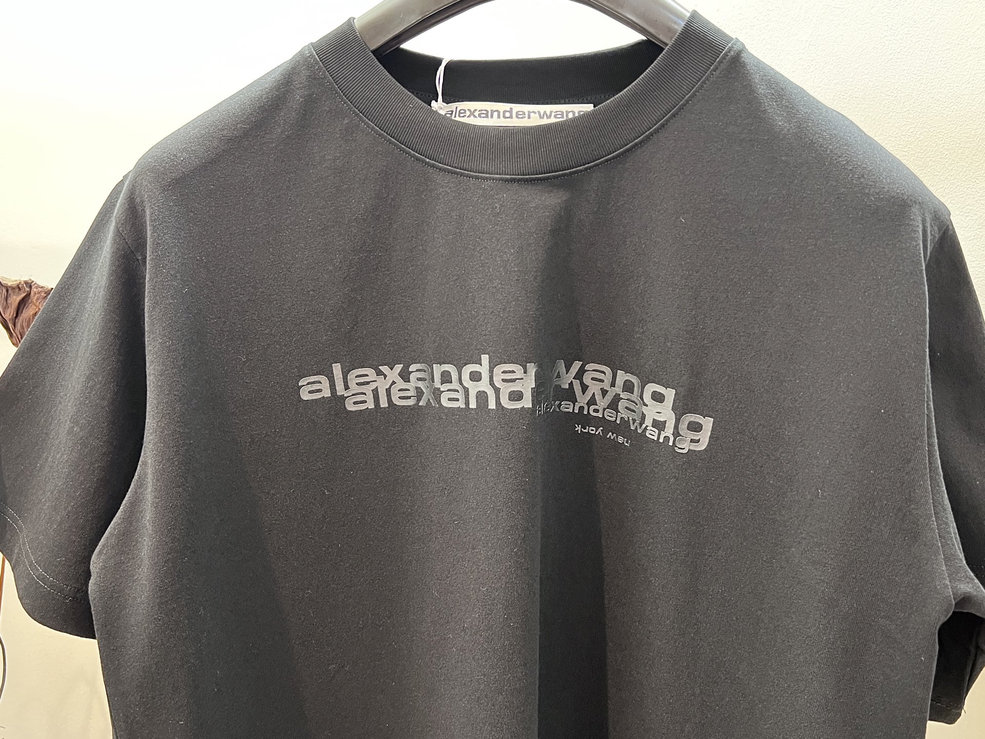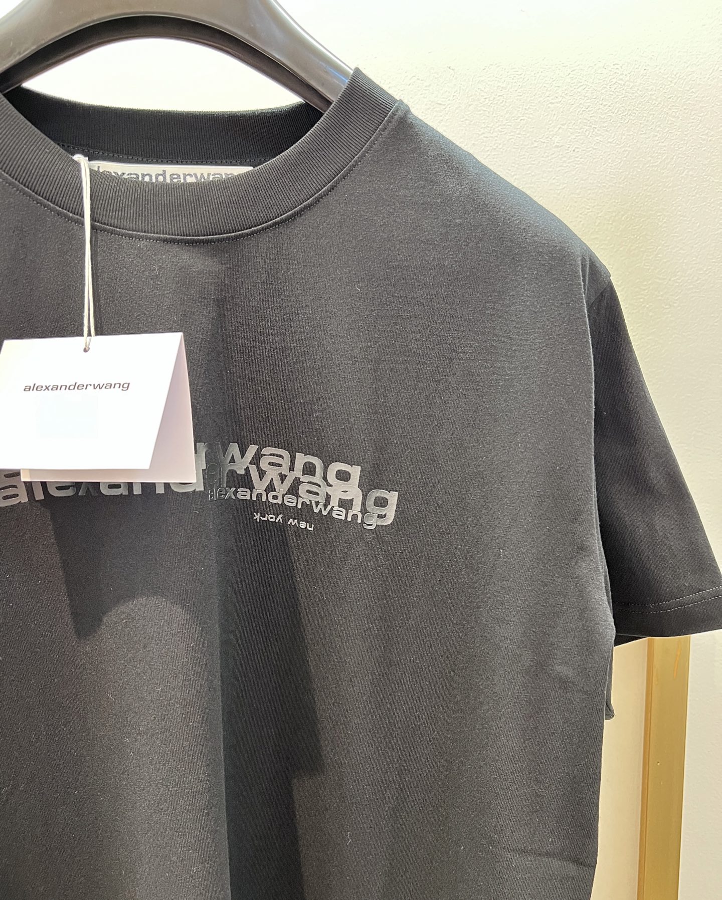 Alexander Wang cotton loose fit, 3D print, embroidered brand logo on the back, showcasing a casual and unrestrained fashion style. This T-shirt is so timeless that I could wear it forever—classic T-shirts never go out of style. Love it, love it. The cut is so cool, and it pairs perfectly with leggings...