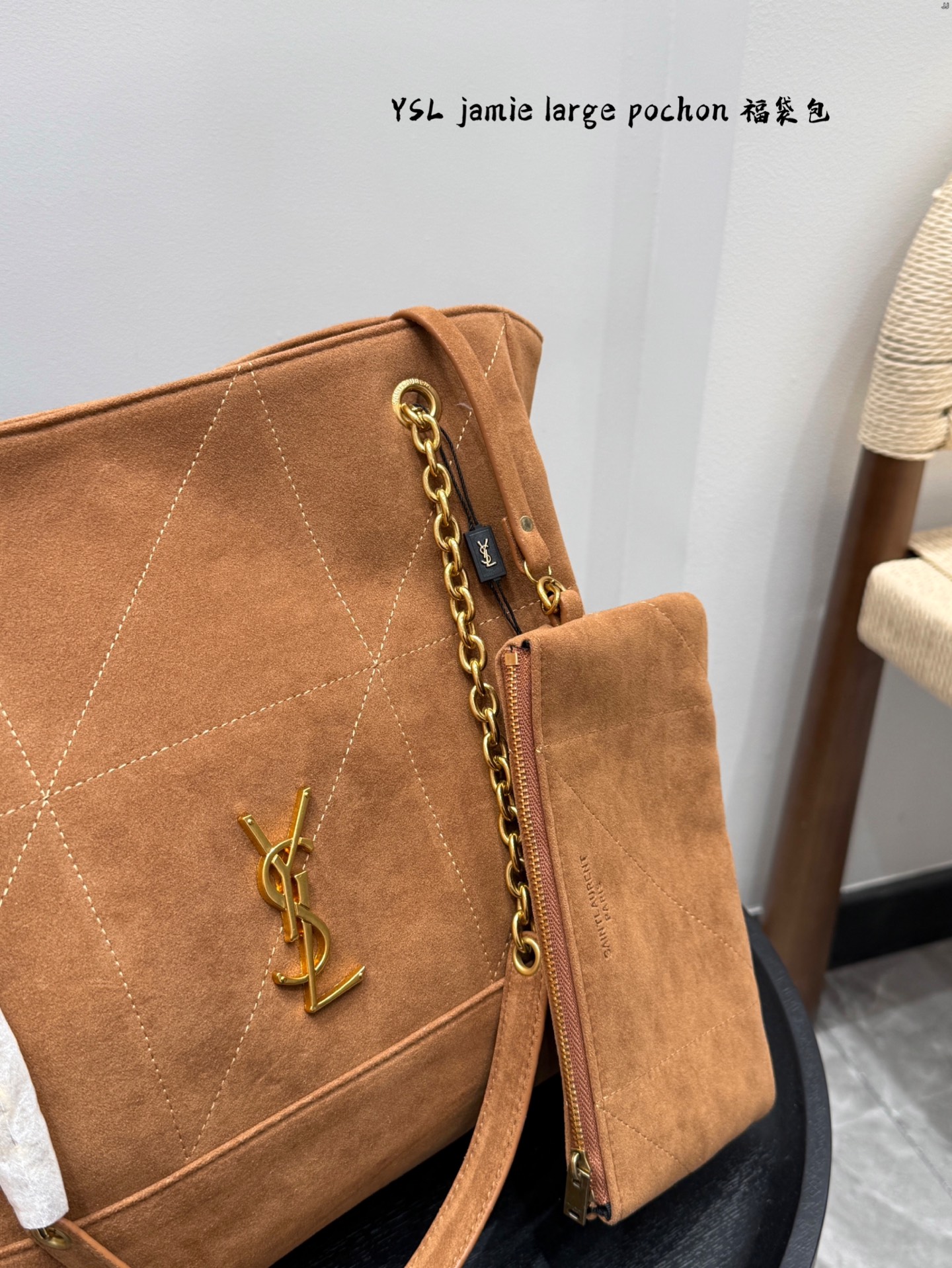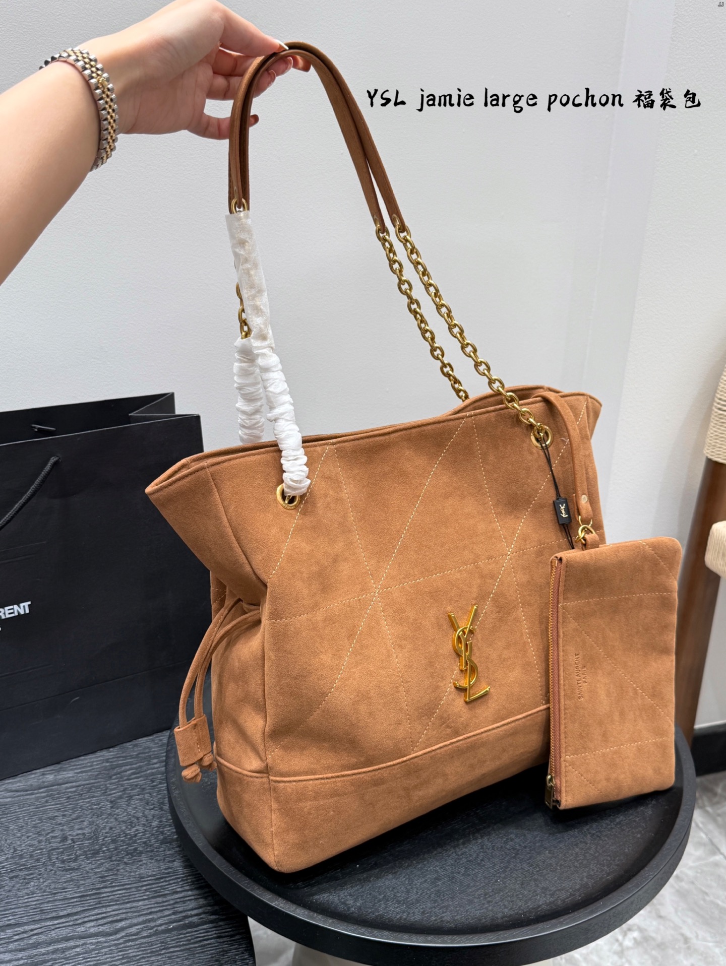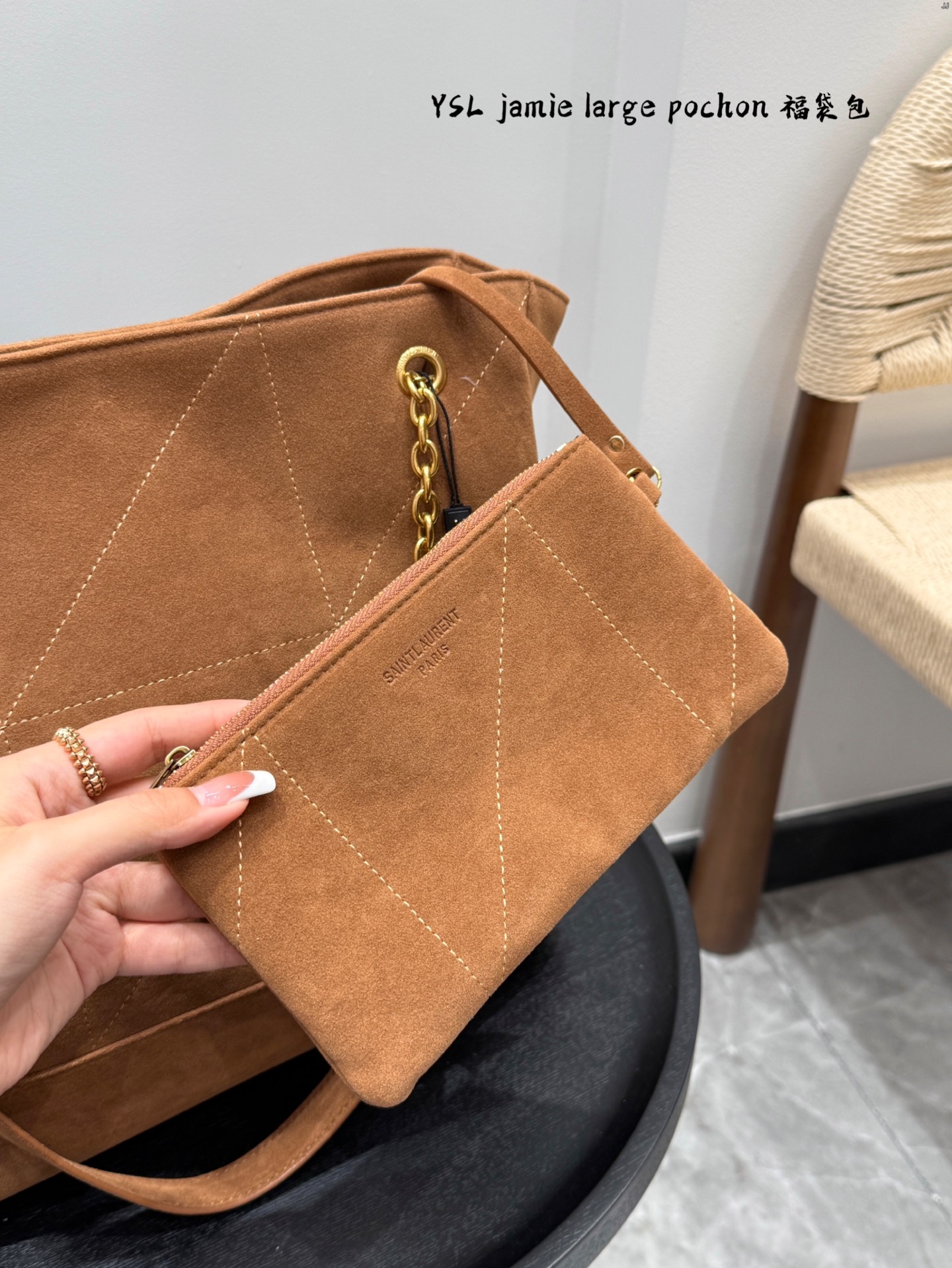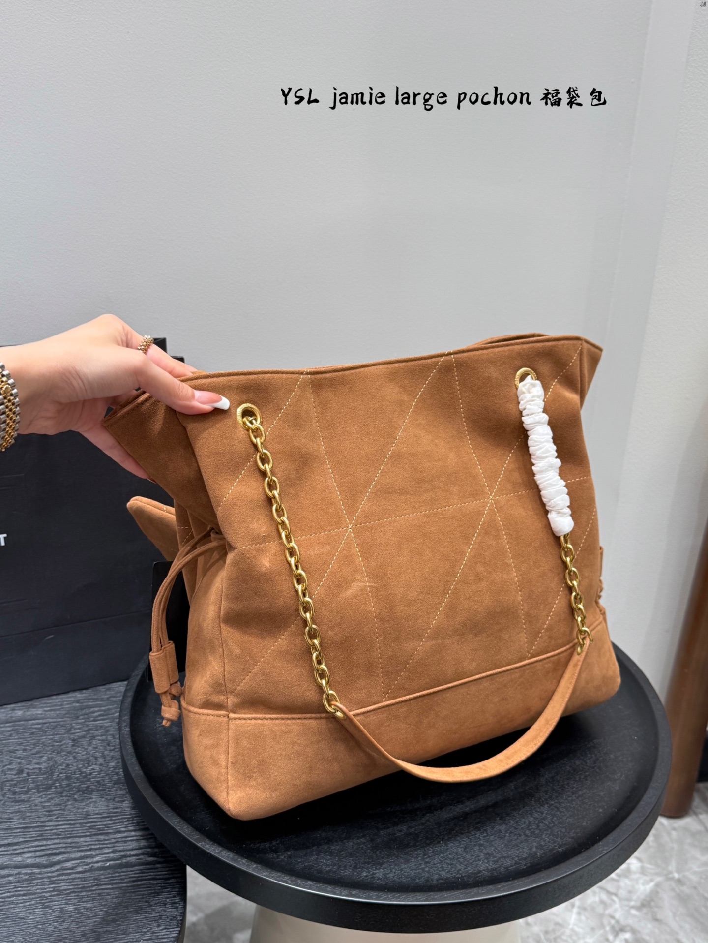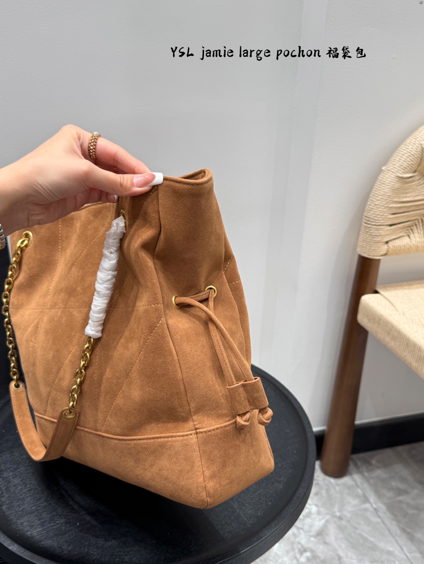 Suede and nubuck leather, size 31.33cm. YSL Jamie large pouch tote bag, also called drawstring bag. Chain tote bag with a cool style, durable material, and a high-end underarm design. Search: trash bag.