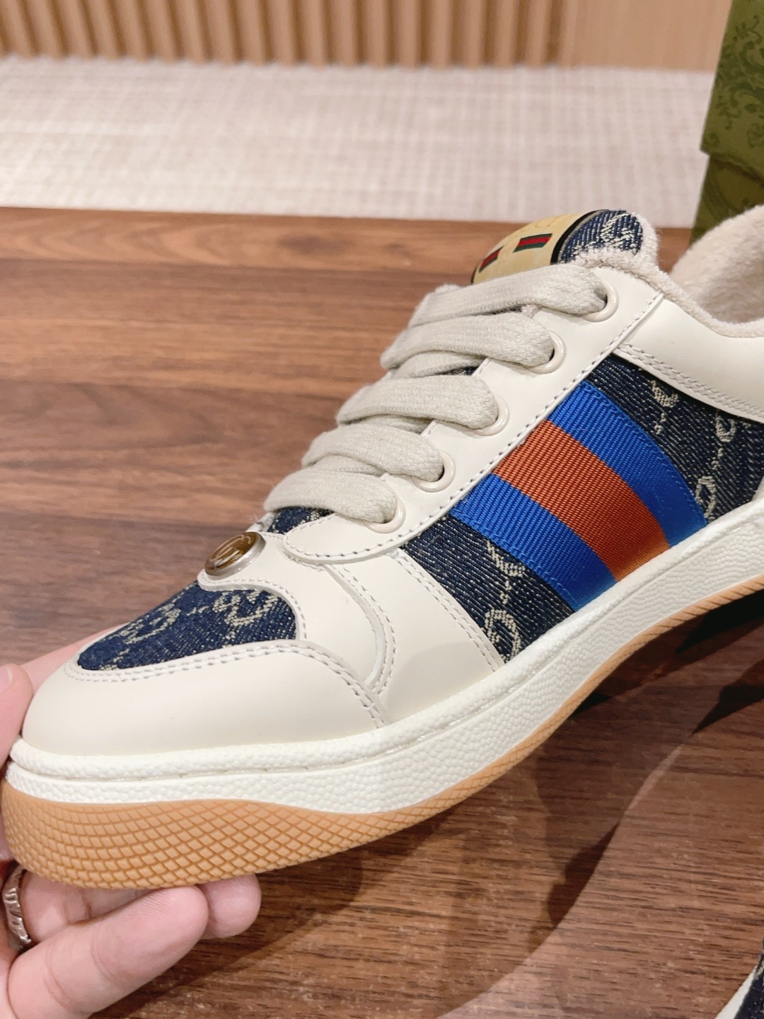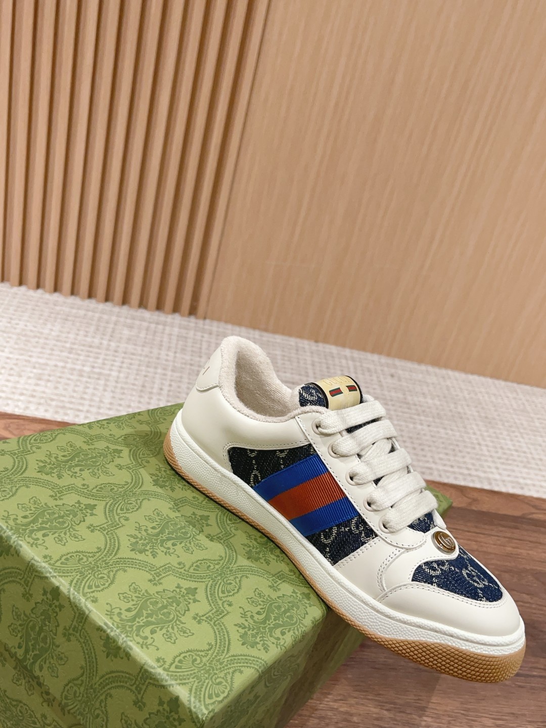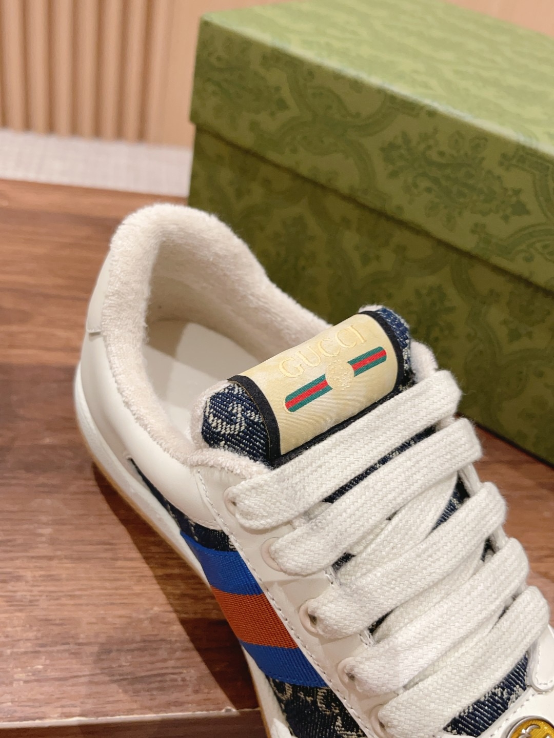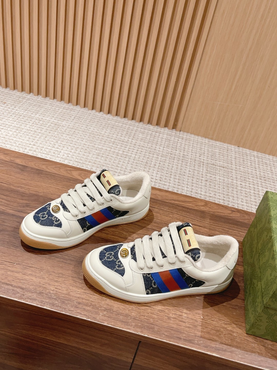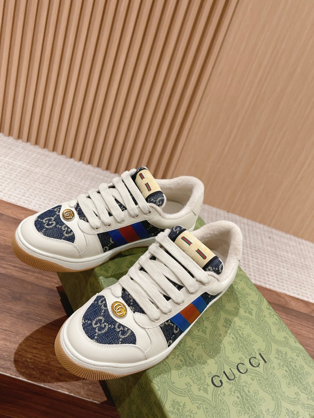 Top Gucci Screener sneakers, upgraded craftsmanship, authentic materials, aged finish, custom details, true to original. Sizes: Women 35-39, Men 39-44.