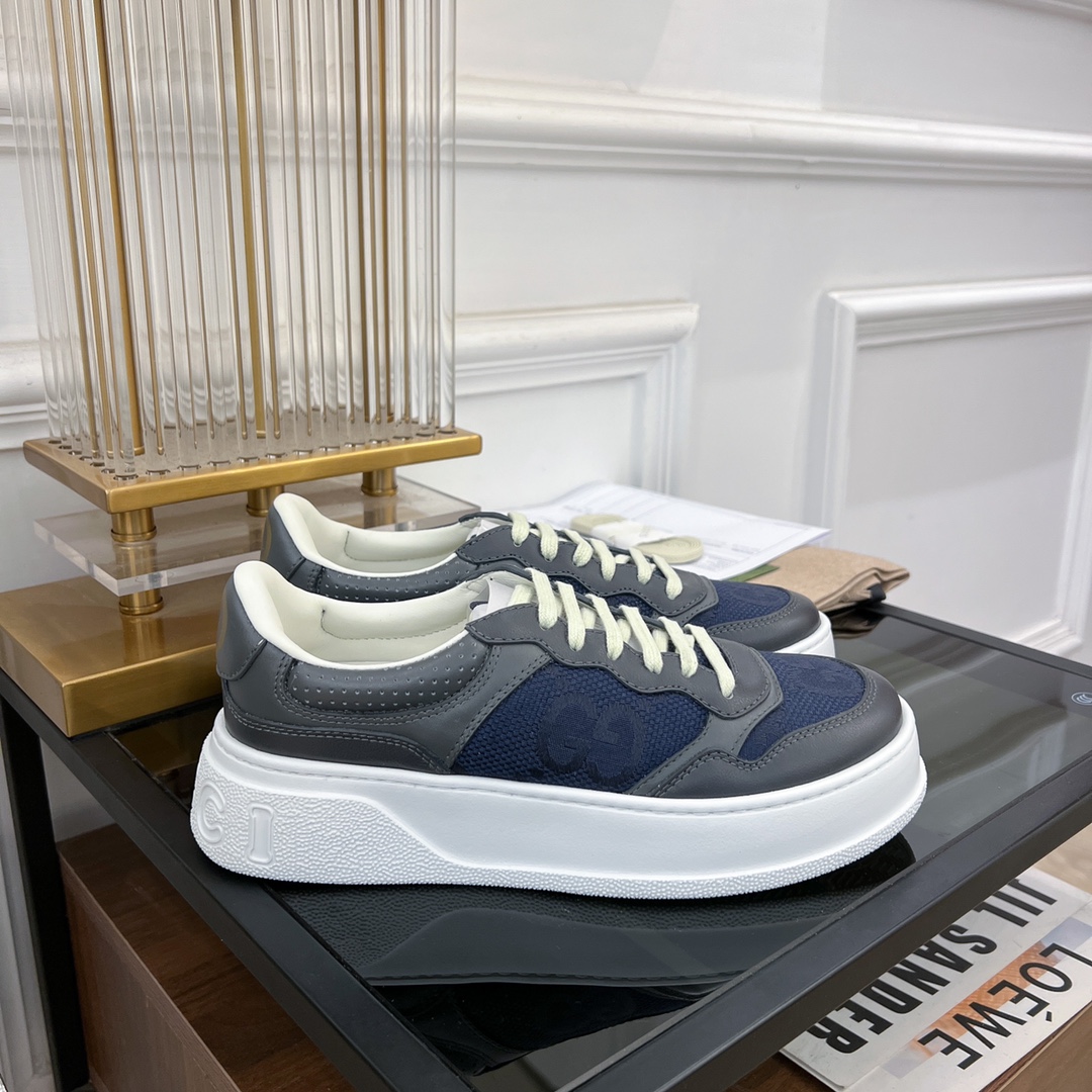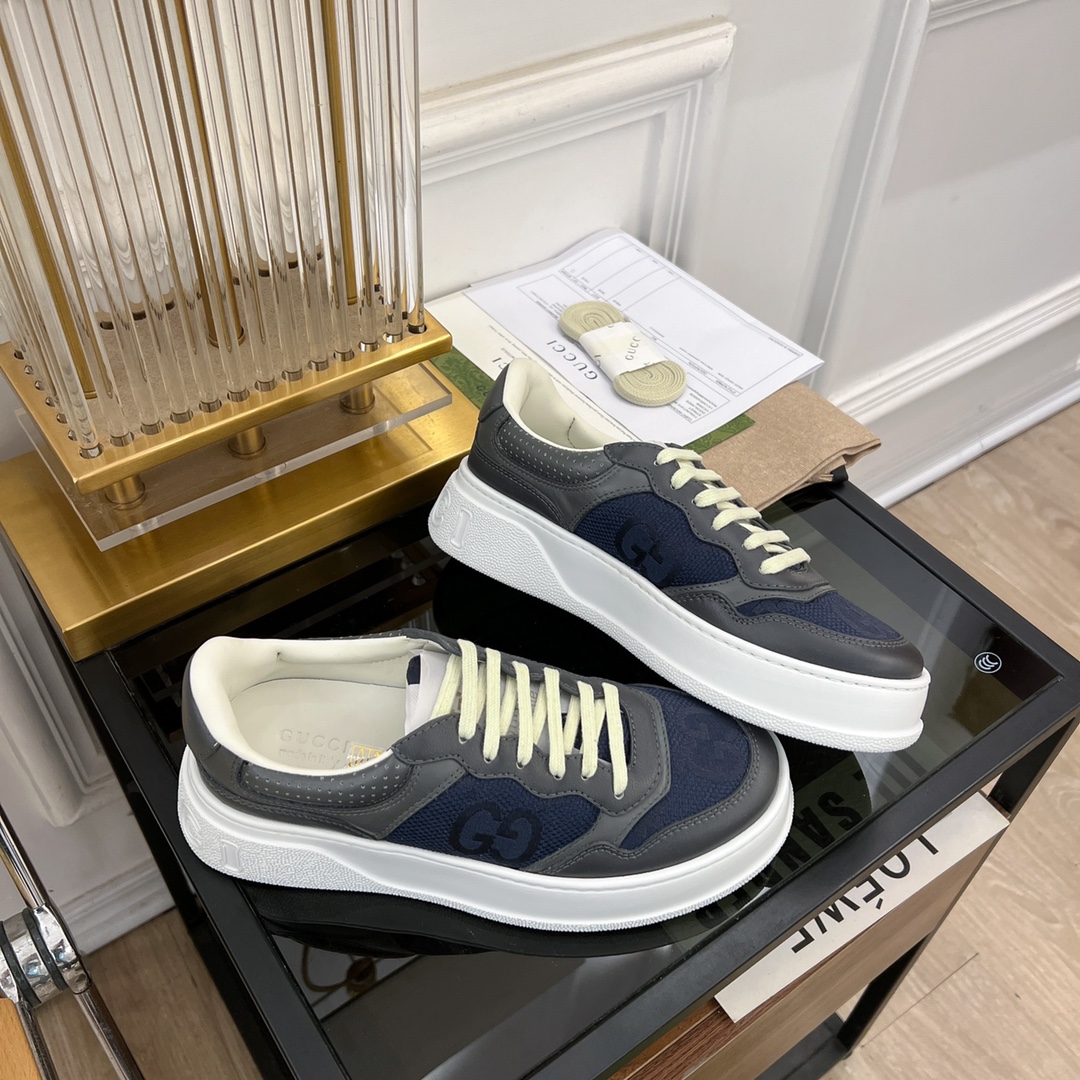 Top version GUCCI 2023 SS Chunky B sneakers for couples. Combines dad shoes, white sneakers, and dirty shoes. Features thick sole, lightweight design. Made with imported cowhide, custom lambskin lining. Full original packaging.